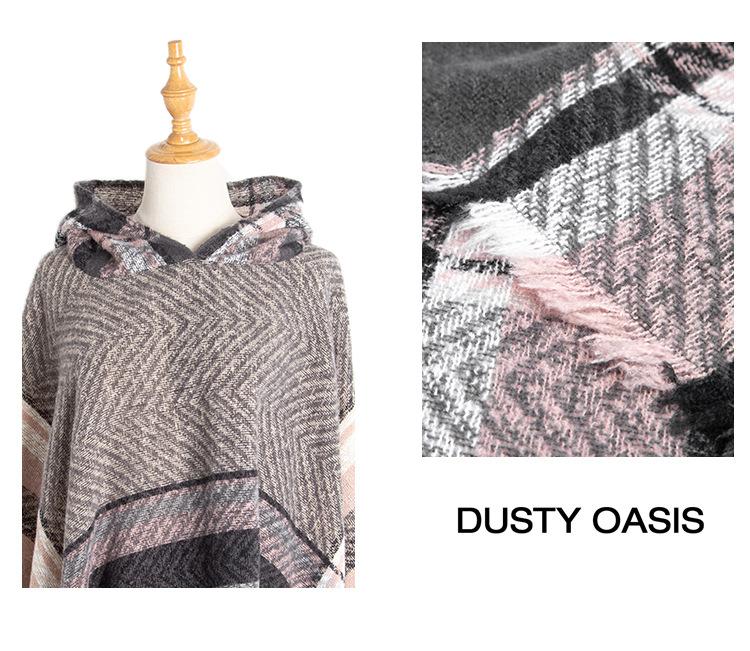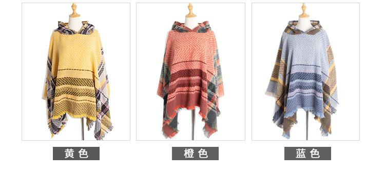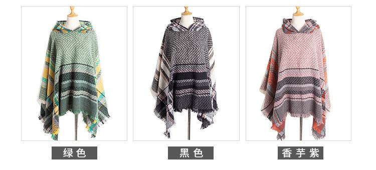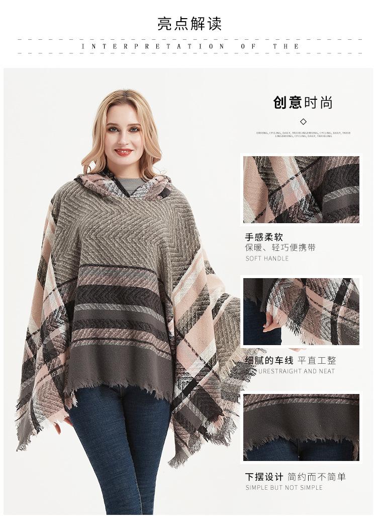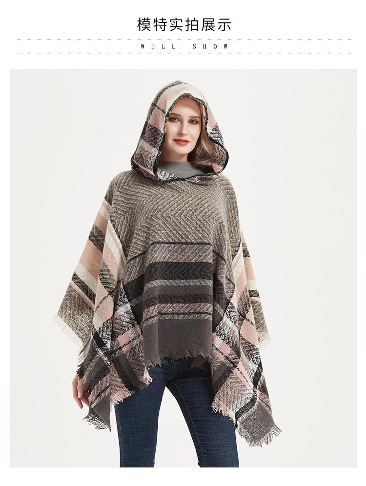 Suministro directo de fábrica al contado, Europa y América, primavera y otoño 2021, nuevo jersey de cuadros grandes para mujer, capa con capucha, chal