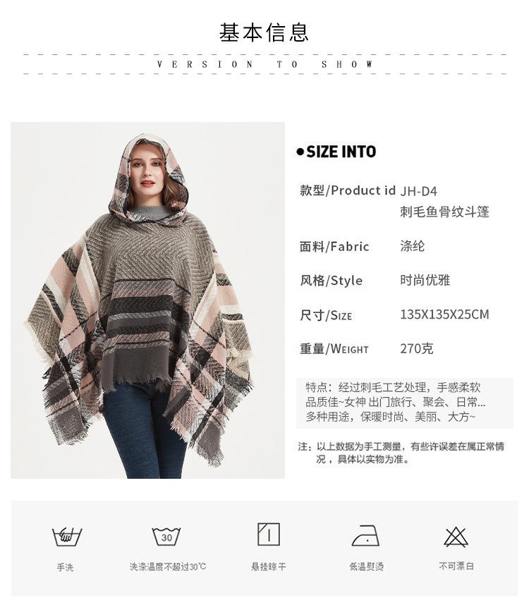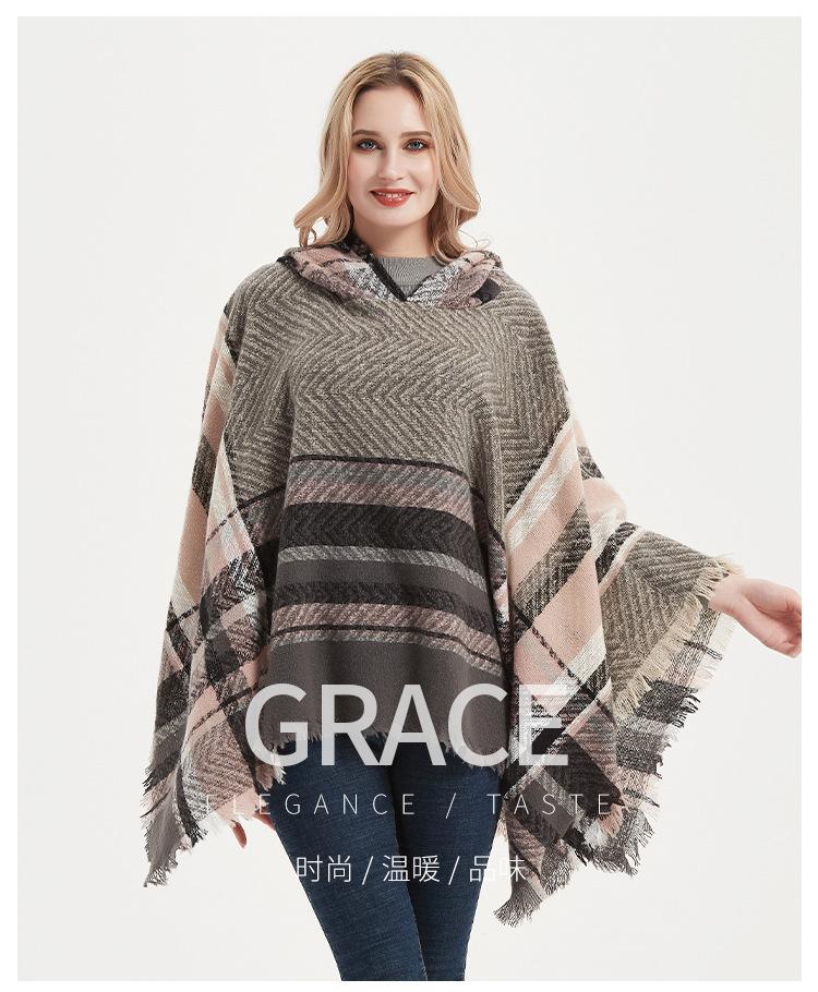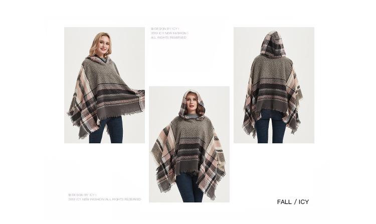 Suministro directo de fábrica de comercio exterior transfronterizo nuevo europeo y americano primavera y otoño invierno patrón de espiga señoras capucha chal suéter capa