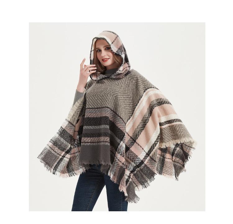 Venta directa de fábrica, comercio exterior, nueva capa, estilo europeo y americano, primavera y otoño, invierno, nuevo jersey de piel, capa con capucha a cuadros, chal