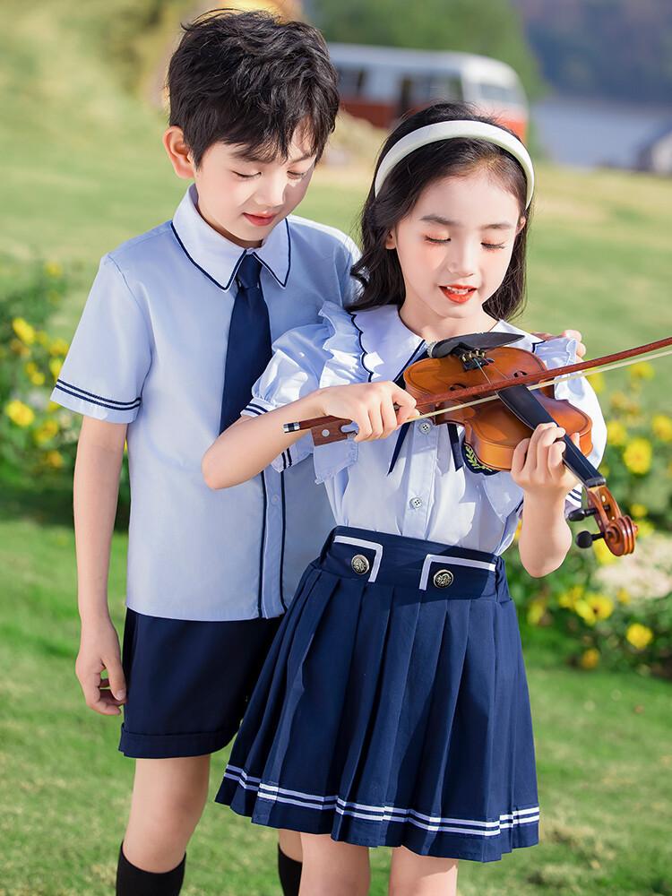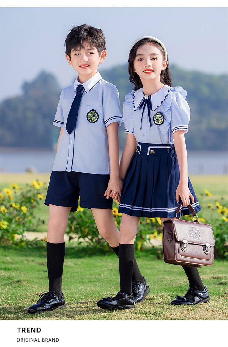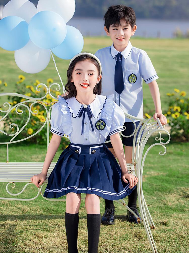Ropa de verano para jardín de infantes, estilo británico, uniforme escolar para estudiantes de primaria, traje de manga corta de verano, ropa para fotos de graduación.