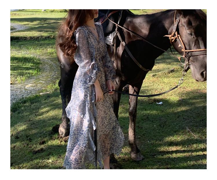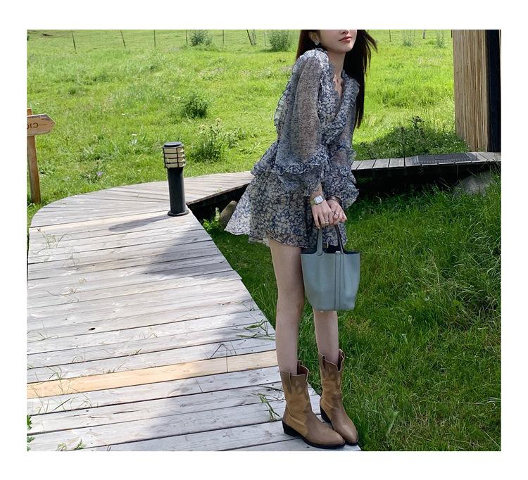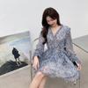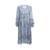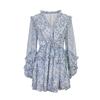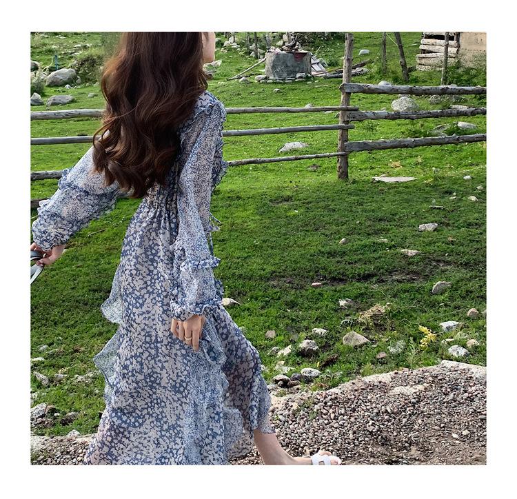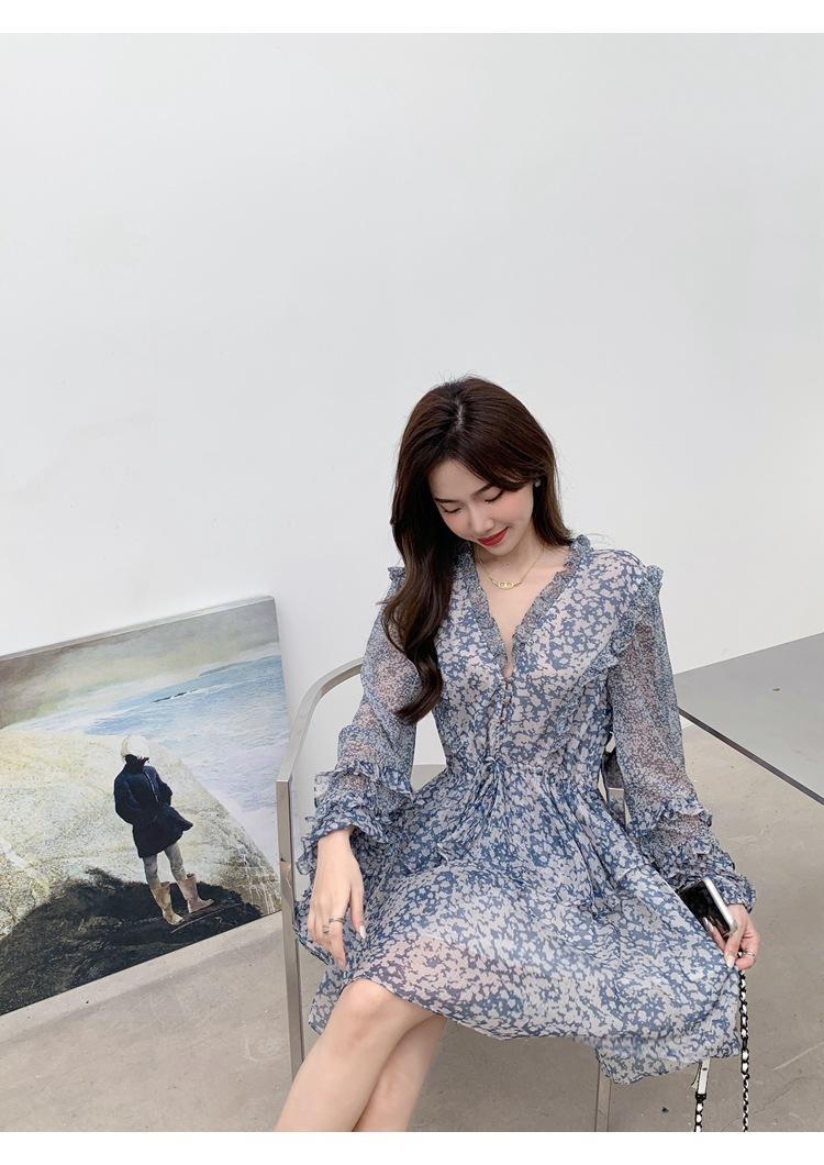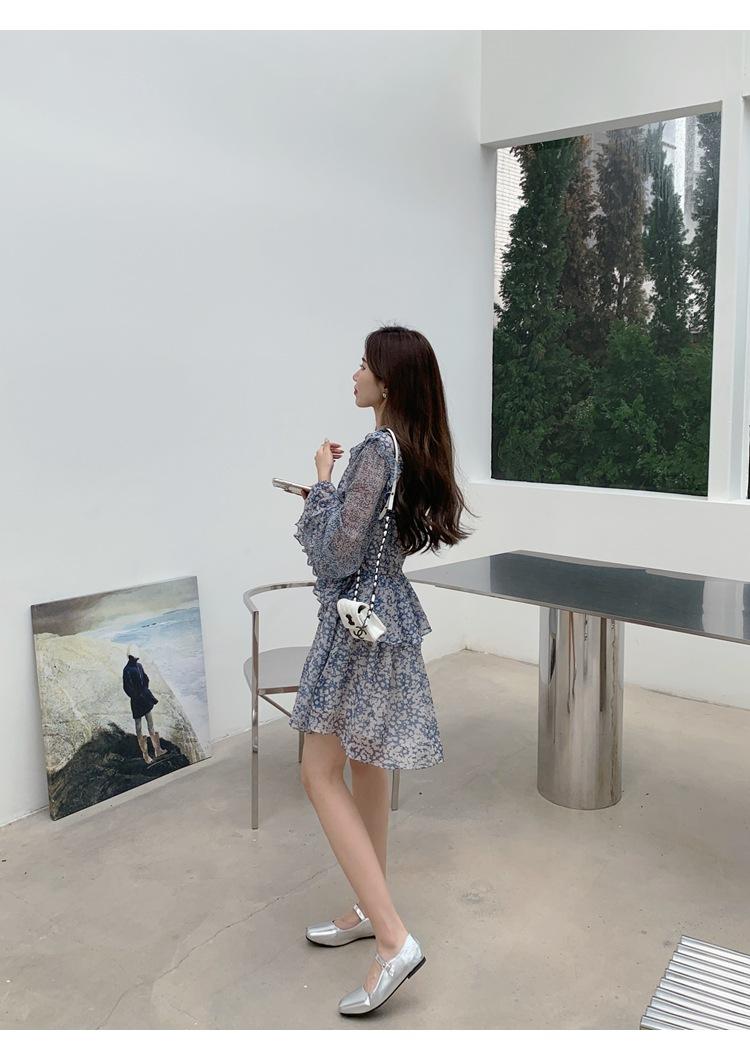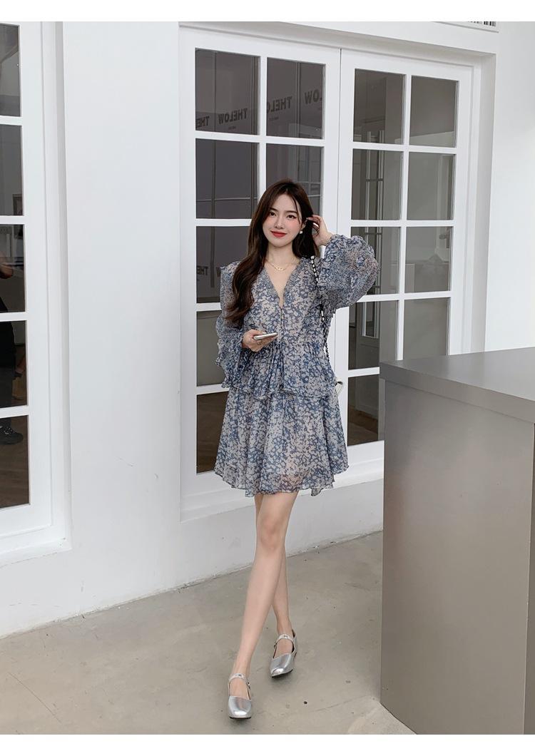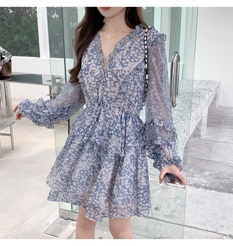 Los volantes dobles del escote se prolongan en el dobladillo y tienen un diseño de borde rizado.