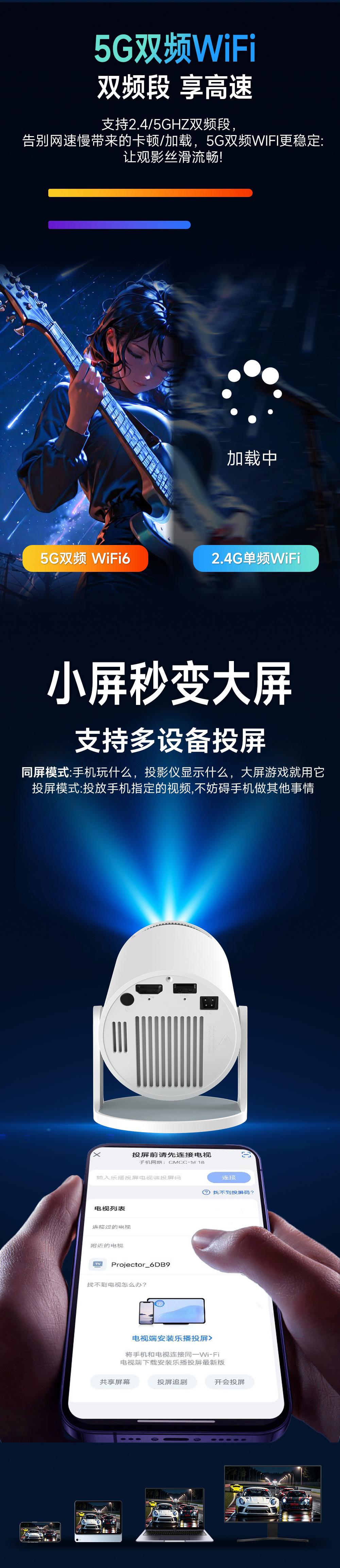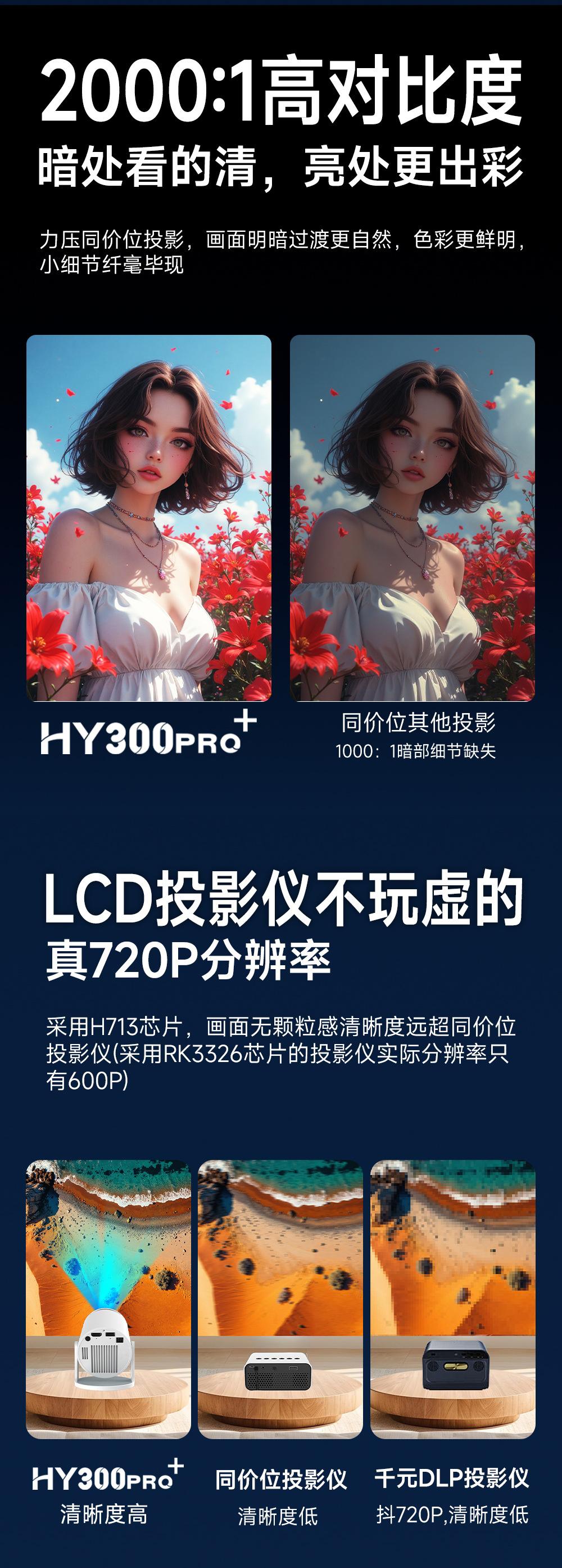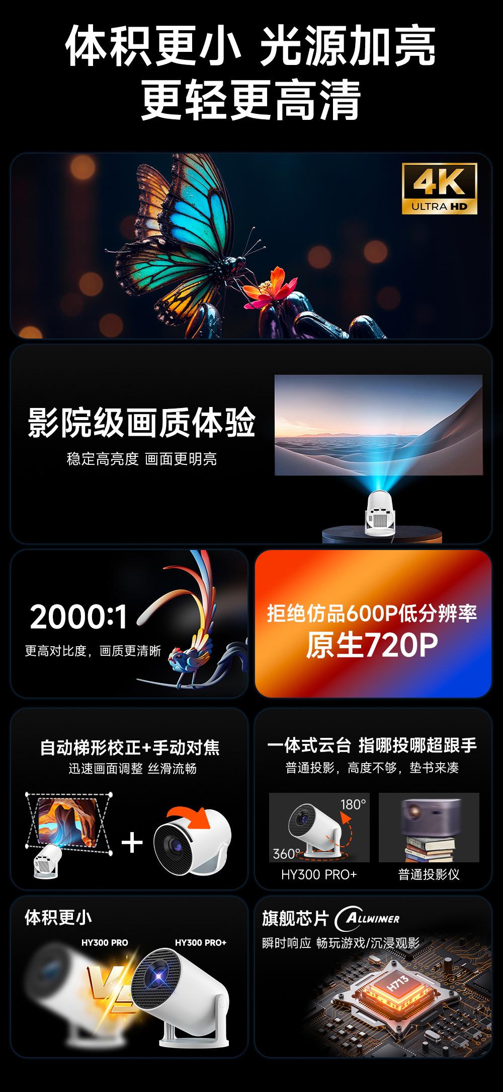 Proyector Transfronterizo Nuevo Genuino Hy300Pro para el Hogar 4K Portátil de Alta Definición Proyección en Pared para Sala de Estar Proyector para Exteriores