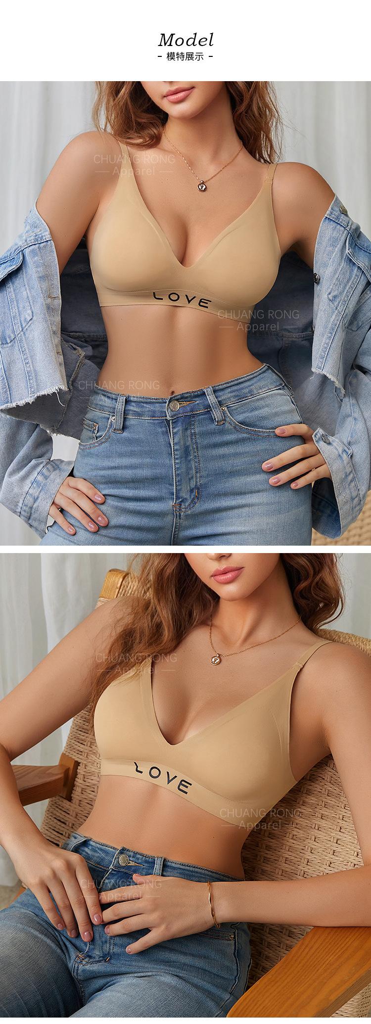 Ropa interior sexy sin costuras con pegamento de gelatina transfronterizo de talla grande para mujer, con estampado de letras, push-up para busto pequeño, sin aros, estilo chaleco