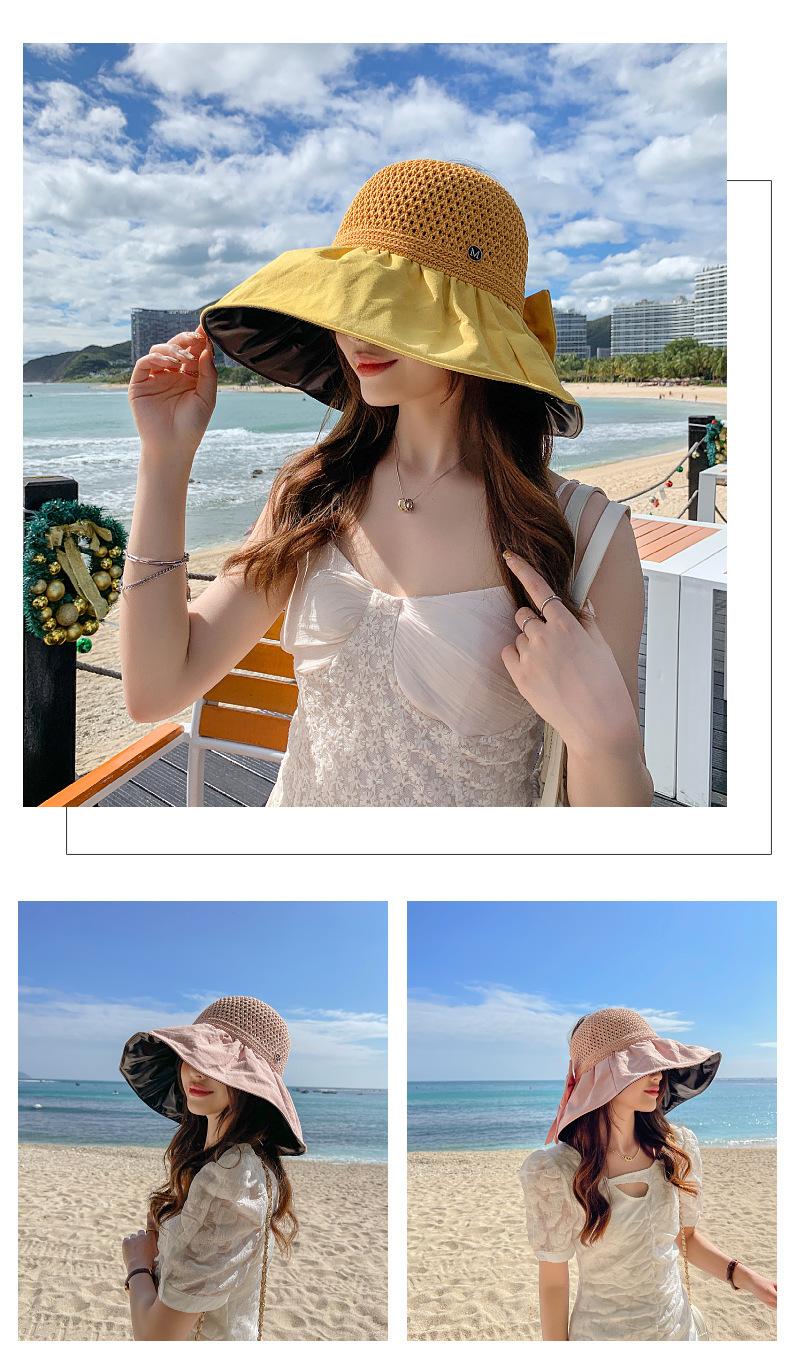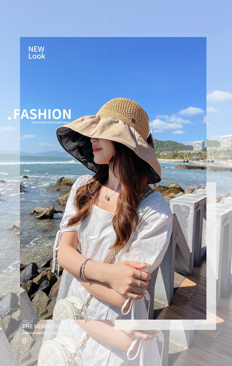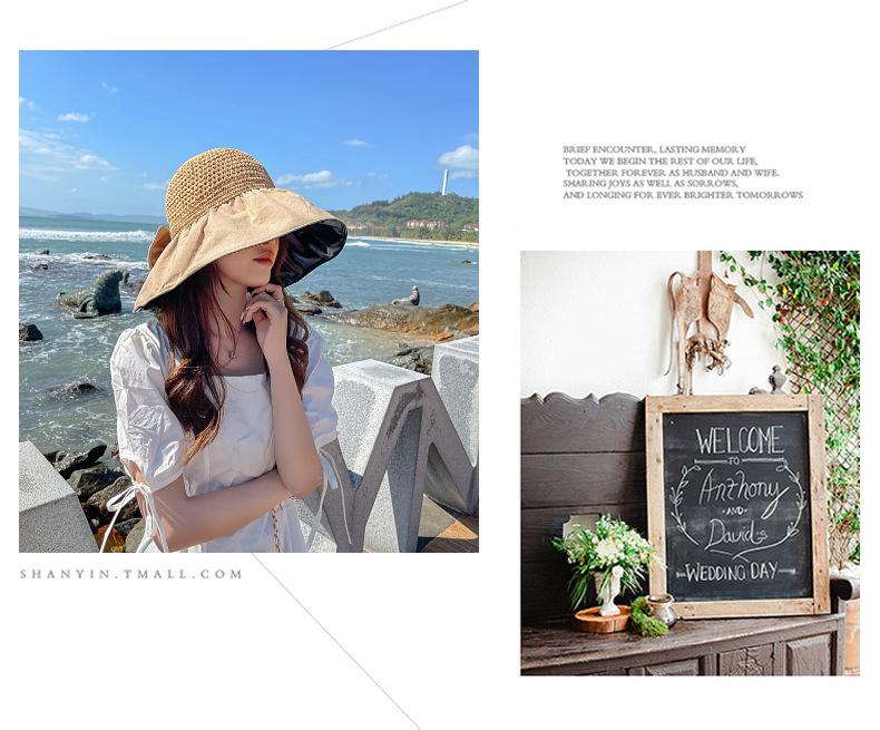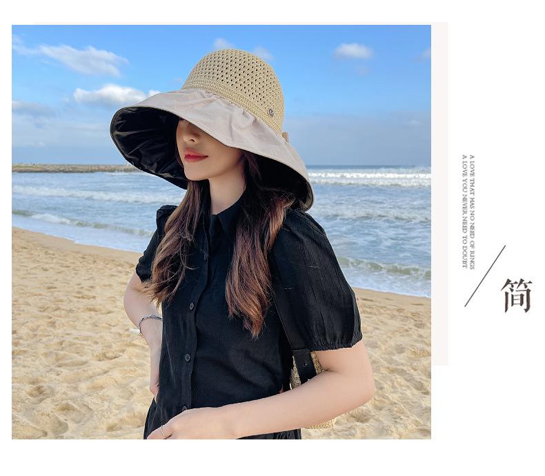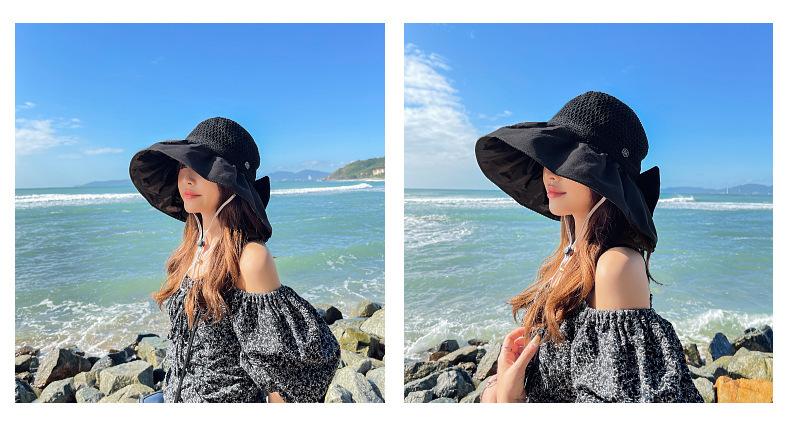 Sombrero de verano de una celebridad de Internet con lazo y pegamento negro, sombrero para el sol con parte superior vacía, protección UV para mujer, sombrero de ala grande, sombrero de playa, sombrero para el sol.