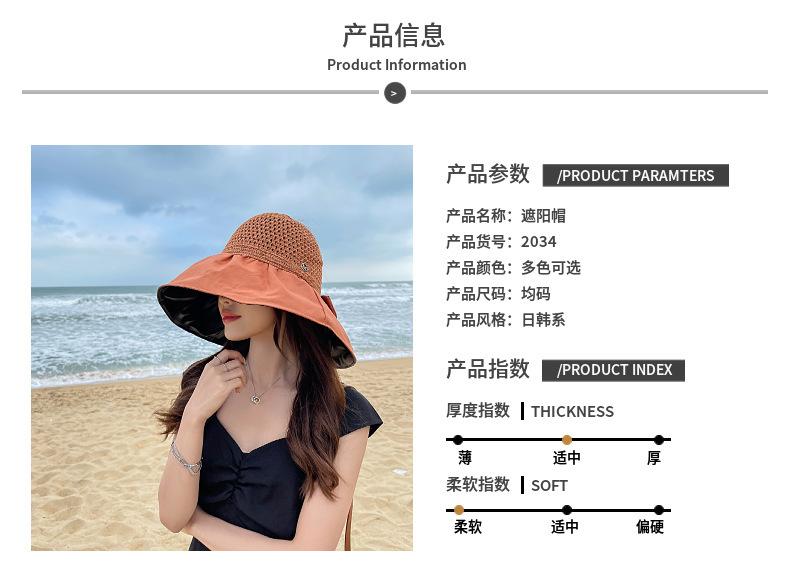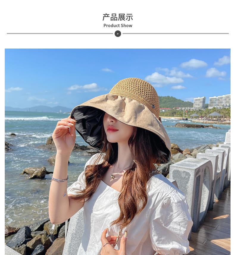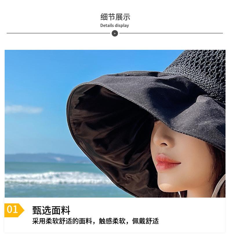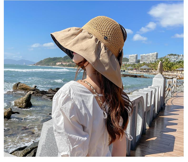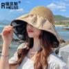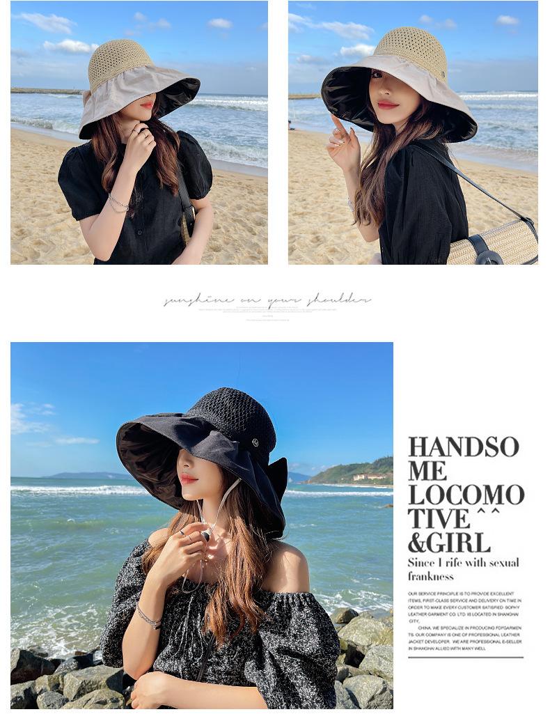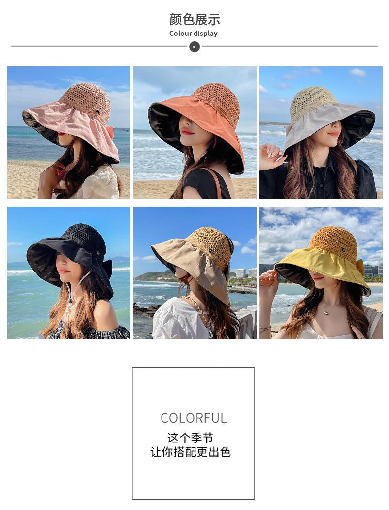 Sombrero de verano de una celebridad de Internet con lazo y pegamento negro, sombrero para el sol con parte superior vacía, protección UV para mujer, sombrero de ala grande, sombrero de playa, sombrero para el sol.