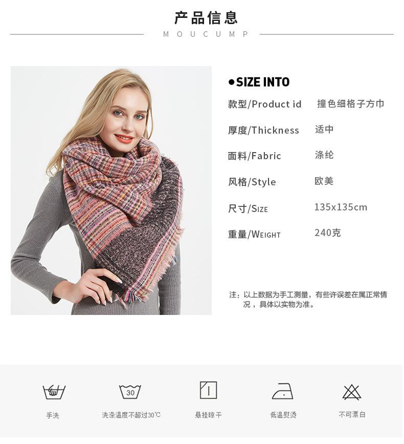 Suministro directo de fábrica Bufanda cuadrada de tartán grande de piel gruesa nueva de otoño e invierno europea y americana chal para damas