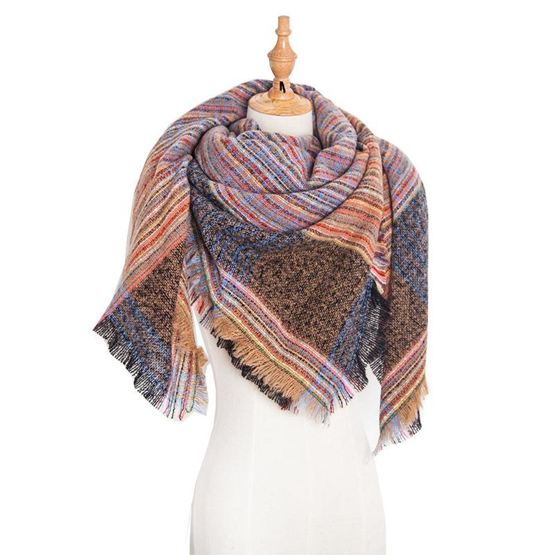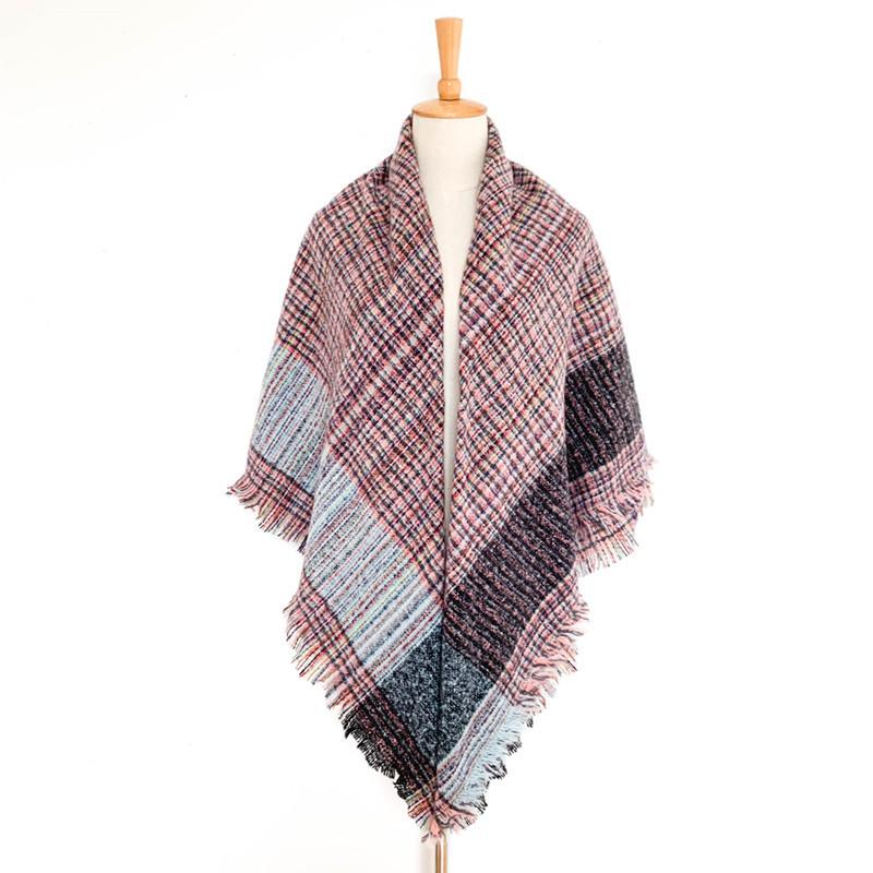 Ventas directas de fábrica Otoño e invierno europeo y americano imitación cachemira bufanda cuadrada de cuadros coloridos de doble cara ampliada chal para damas al por mayor