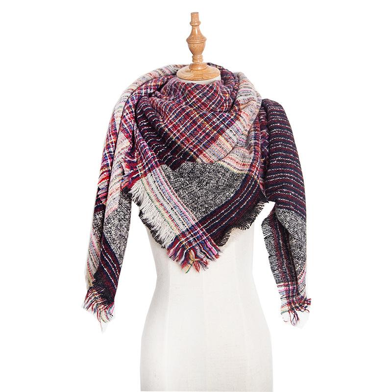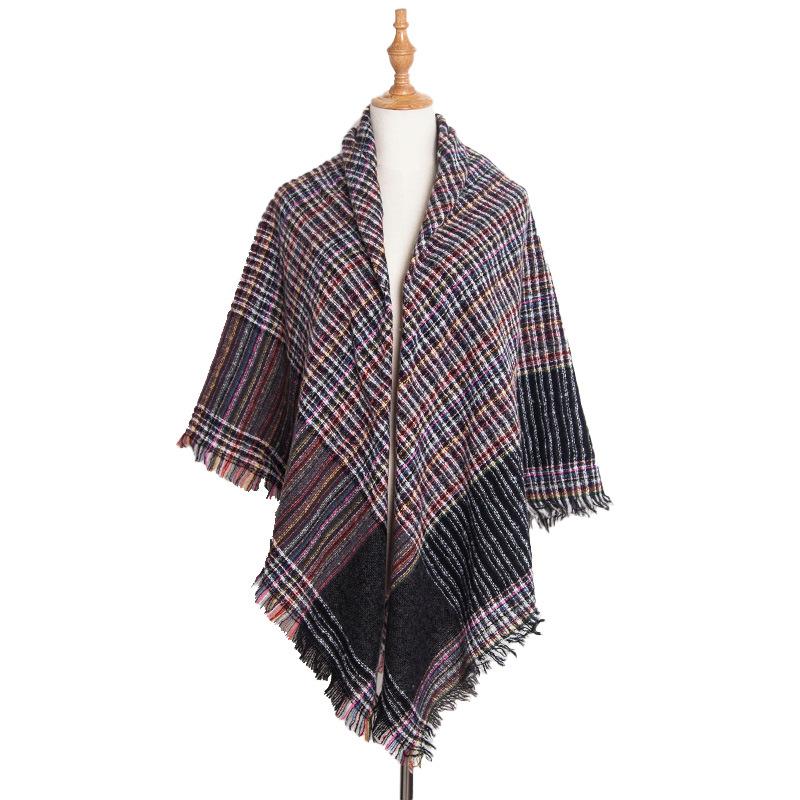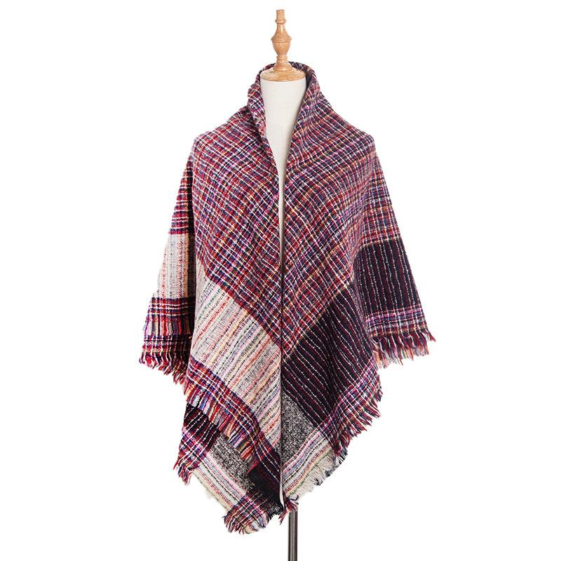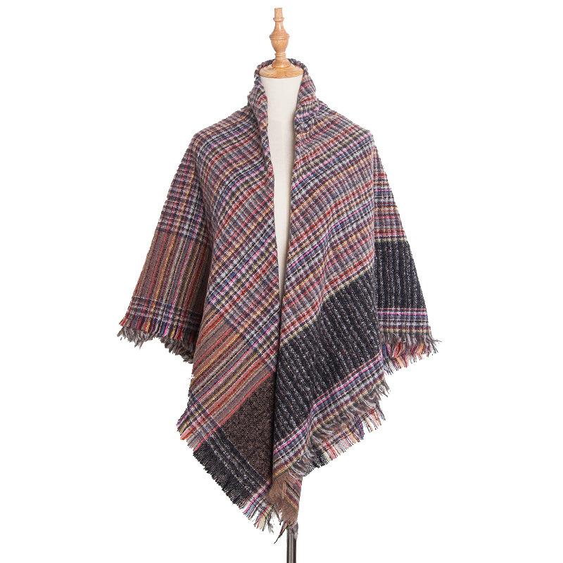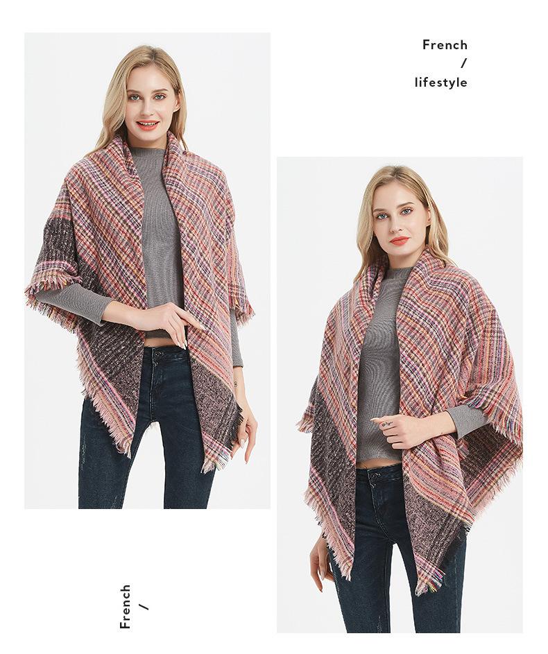 2022 Amazon venta caliente spot otoño e invierno chal europeo y americano nuevo estilo hilo circular quilling engrosado a cuadros bufanda cuadrada