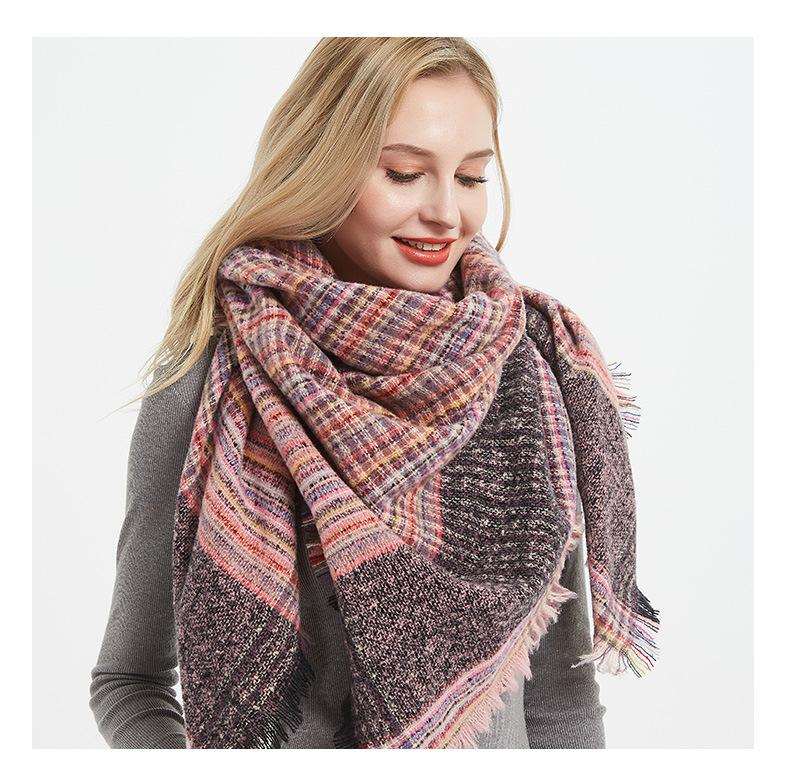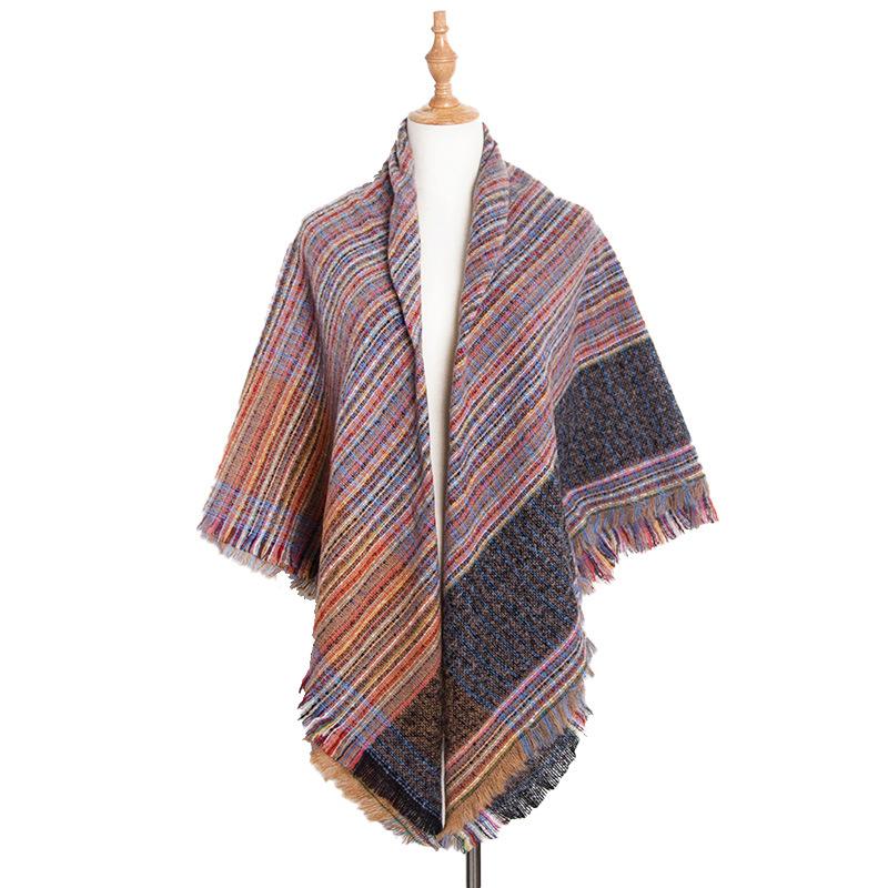 Comercio exterior otoño e invierno nuevo imitación cachemira bufanda de rayas anchas para mujer patrón geométrico bufanda cuadrada chal bufanda gruesa y cálida