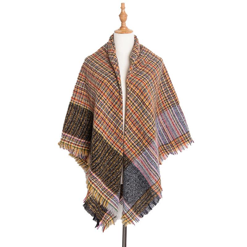 Suministro directo de fábrica 2021 comercio exterior otoño e invierno nuevo bufanda chal cálido grueso para mujer piel a cuadros bufanda cuadrada