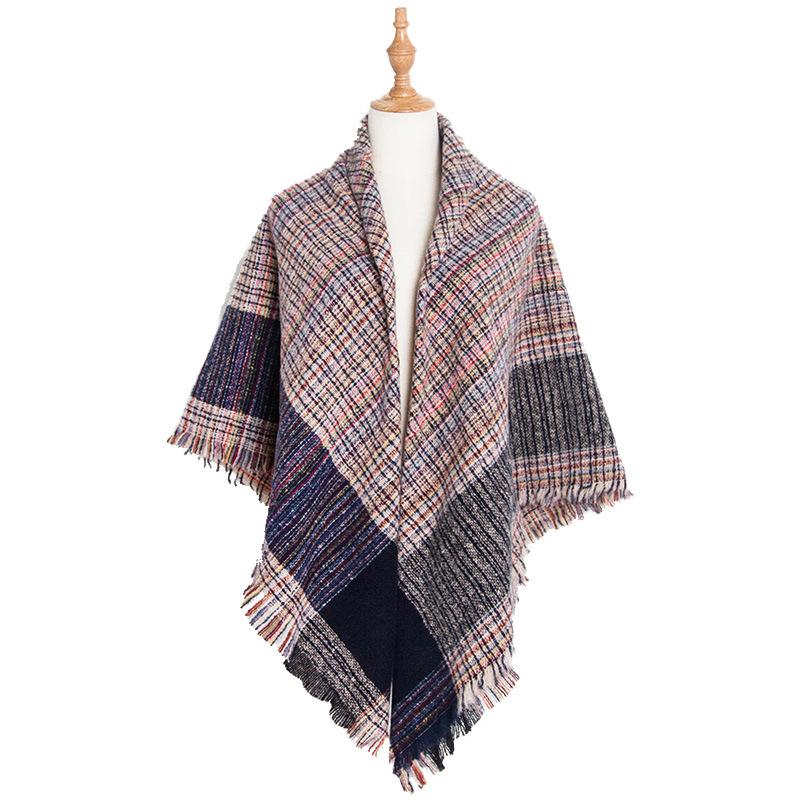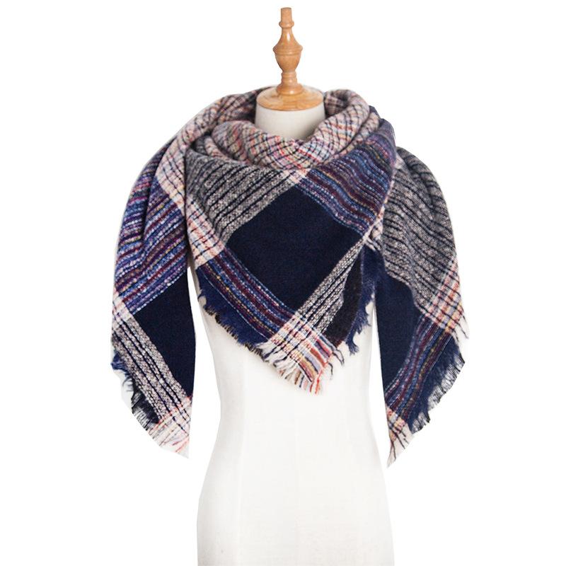 Amazon nuevo otoño e invierno chal de hilo circular europeo y americano fabricante azul acolchado a cuadros bufanda cuadrada