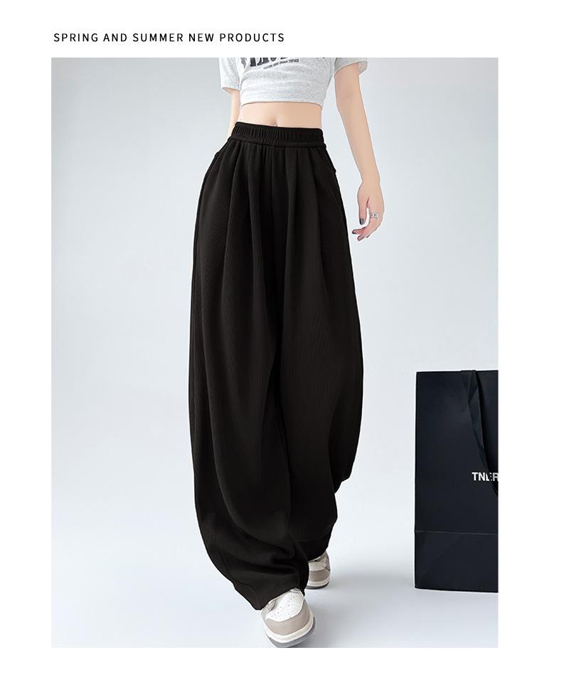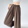 Pantalones de pierna ancha Yamamoto para mujer primavera y verano Nuevo estilo holgado drapeado casual pantalones rectos cintura alta sueltos pantalones de trapeador de punto