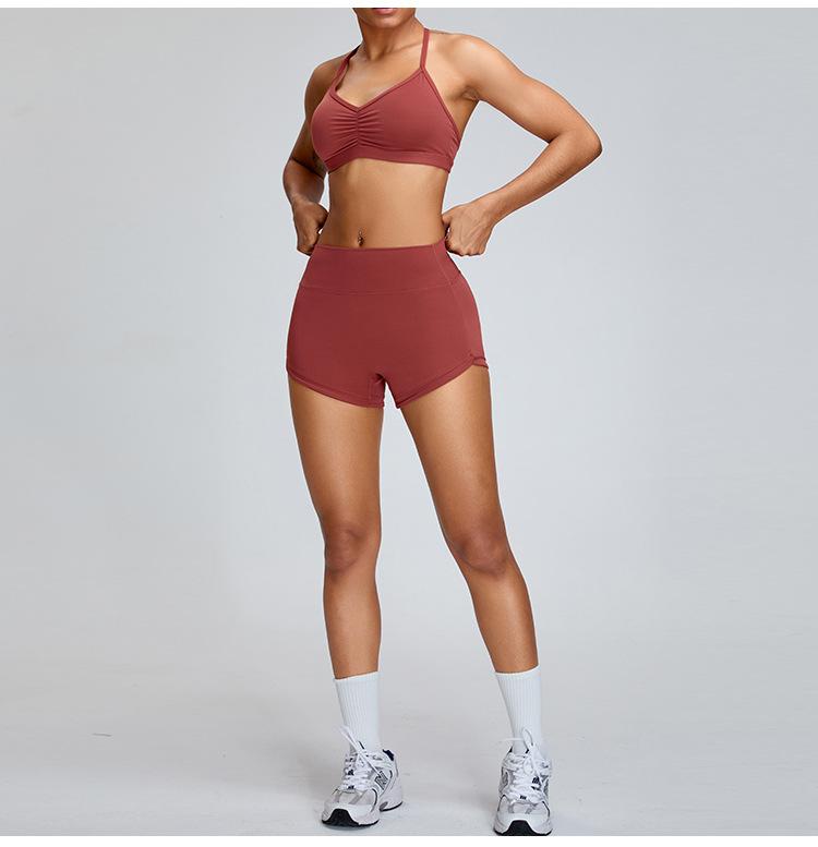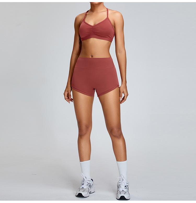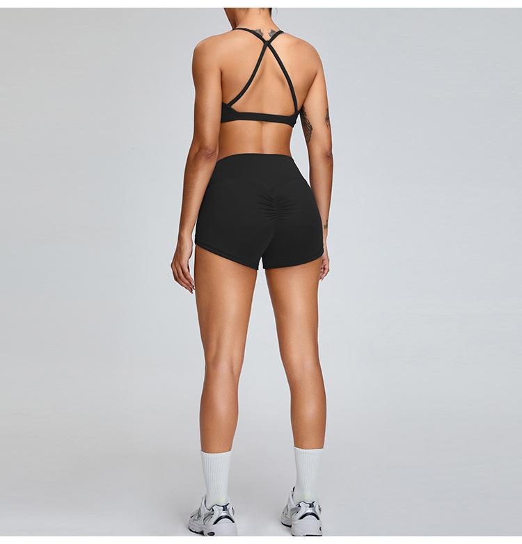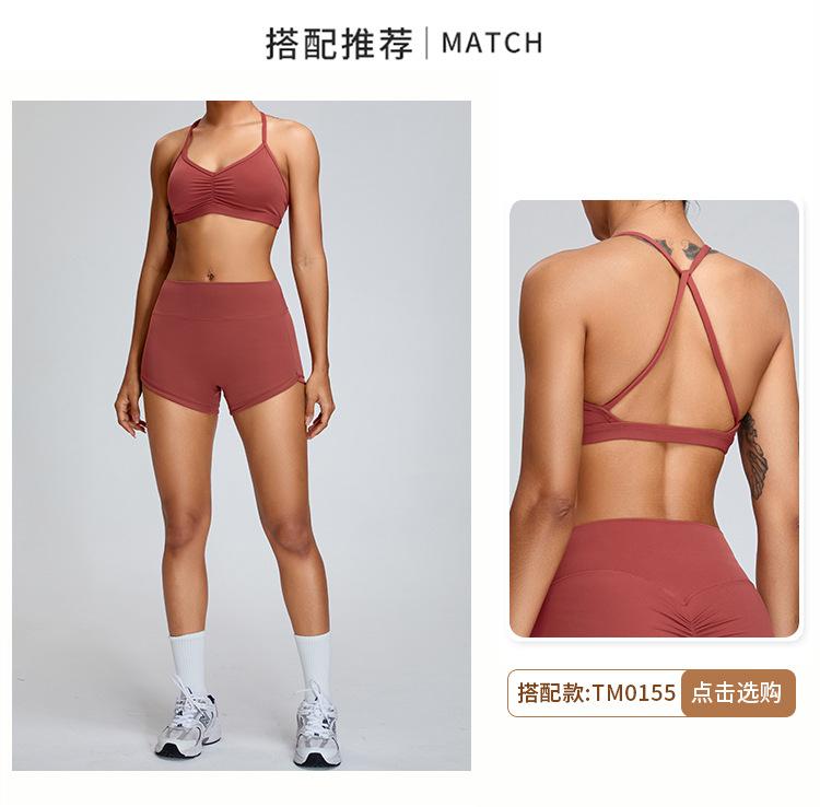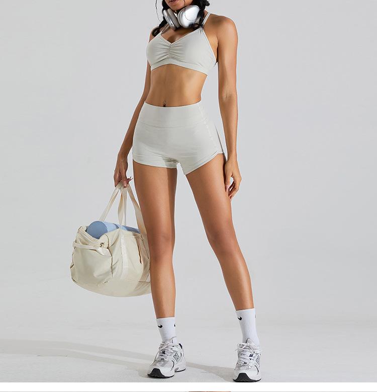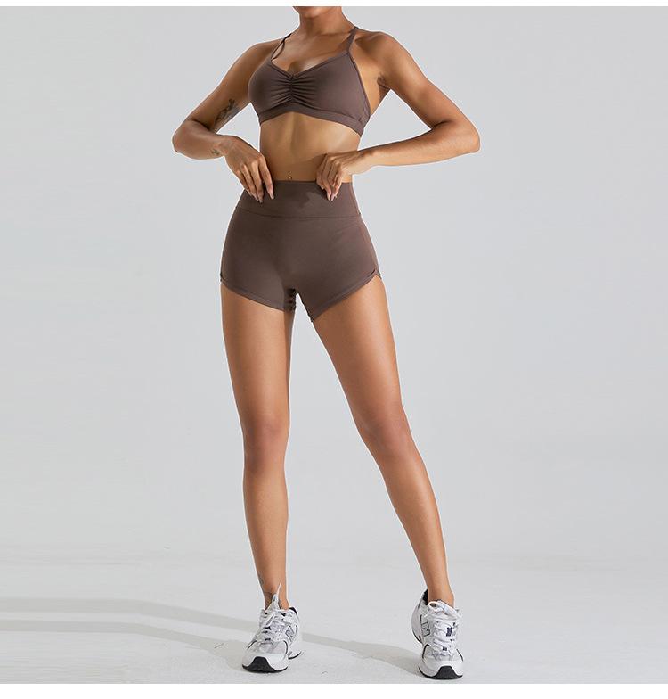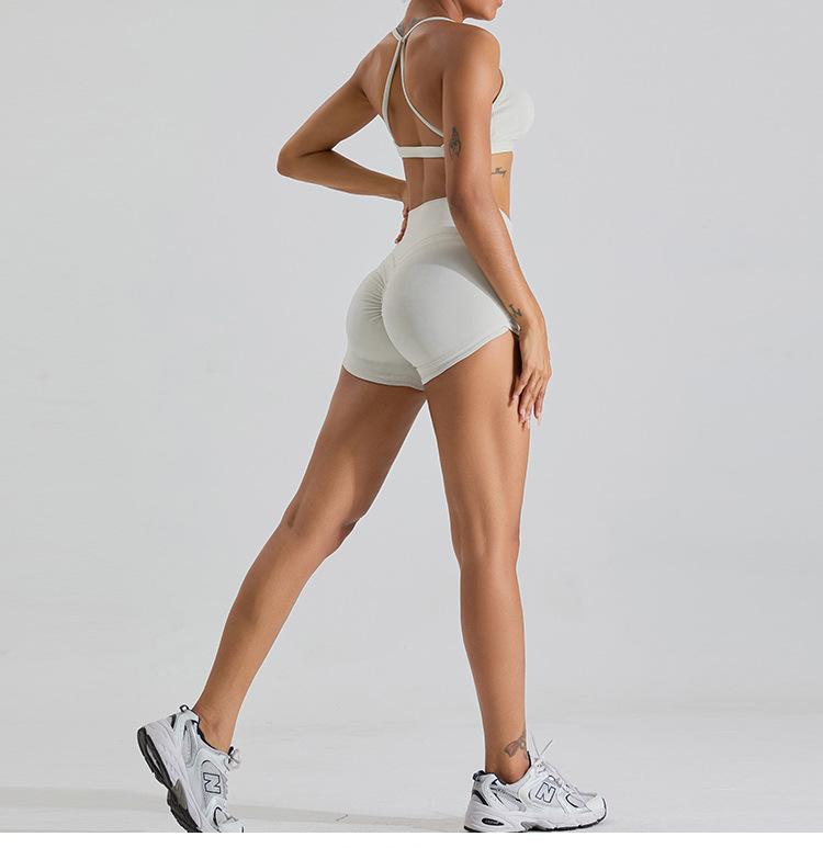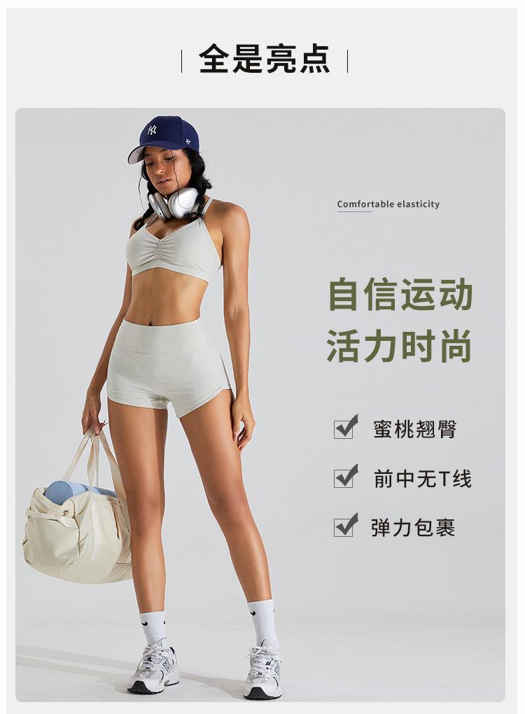 Pantalones de Yoga Europeos y Americanos Nude Melocotón Levanta Glúteos para Mujer, Shorts de Yoga Control de Abdomen, Pantalones Ajustados de Tres Puntos para Fitness, Pantalones Deportivos para Correr