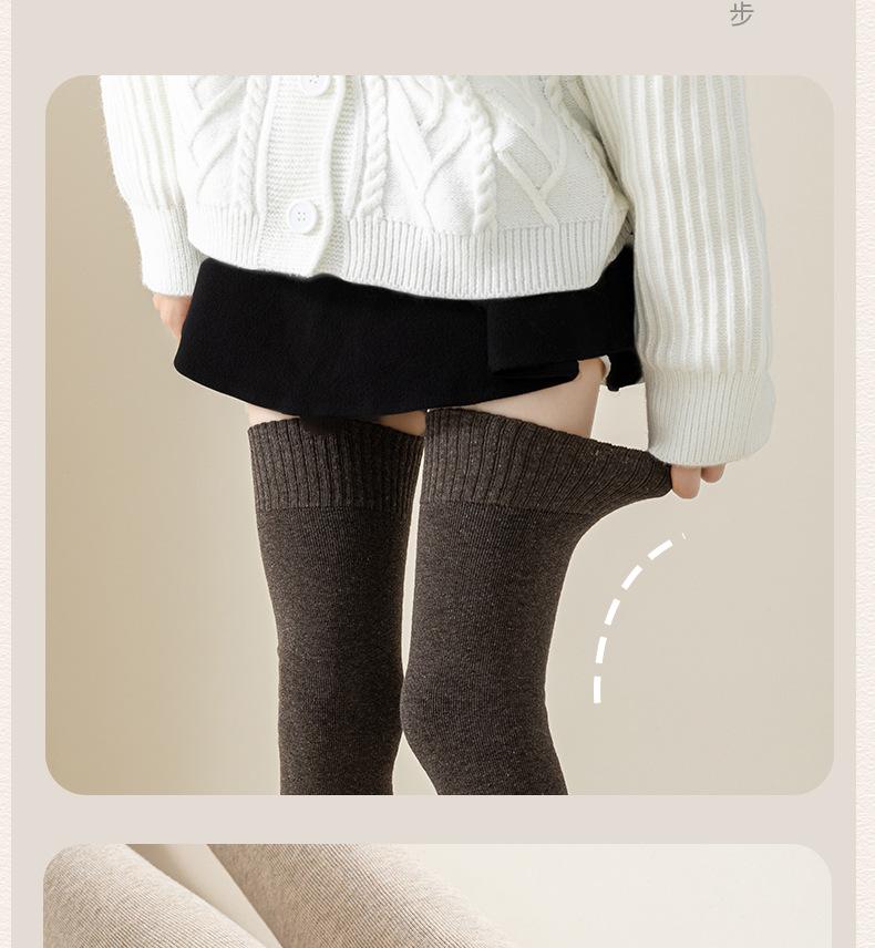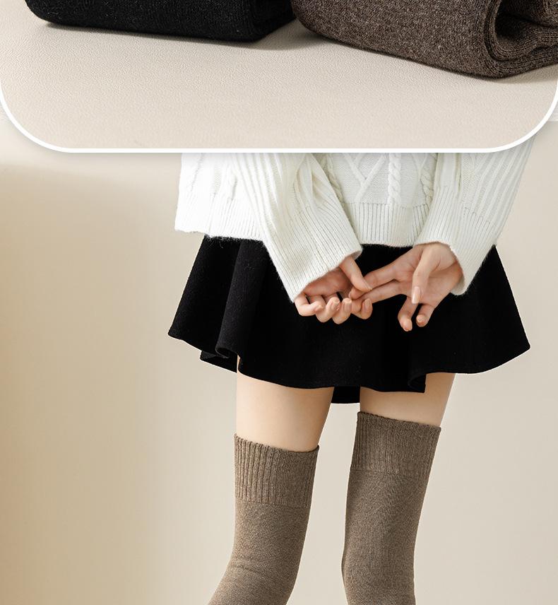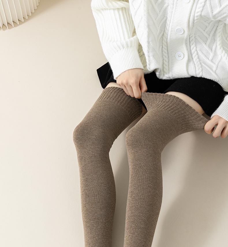 Calcetines para Mujer de Invierno Forrados con Felpa y Gruesos Calcetines hasta el Muslo Calcetines de Rizo Estilo Jk Sobre la Rodilla Calcetines Cálidos de Color Puro Calcetines de Algodón de Fondo de Caña Alta