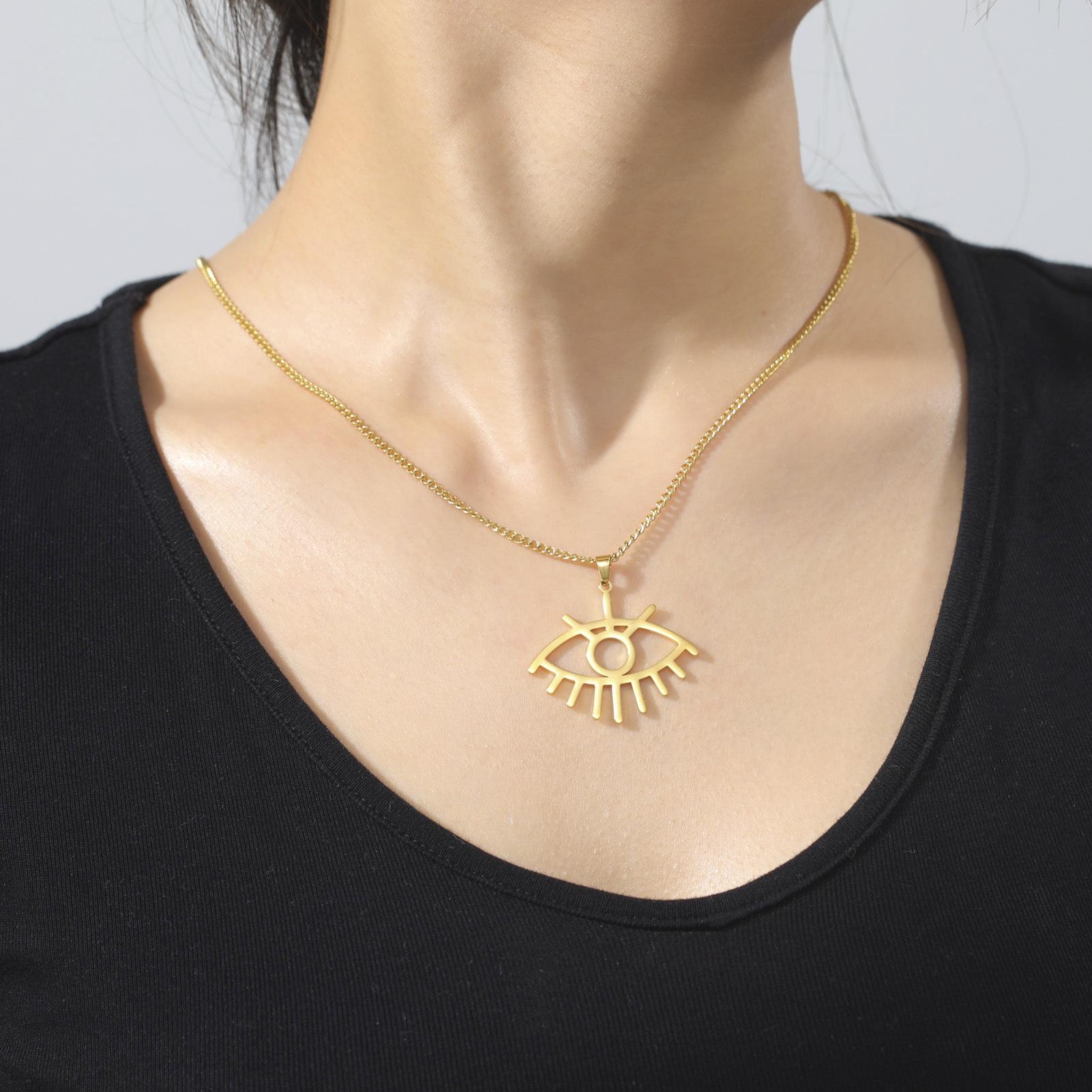 Una generación de fabricantes suministra collar de acero inoxidable con colgante de ojo hueco con personalidad exagerada de acero de titanio.