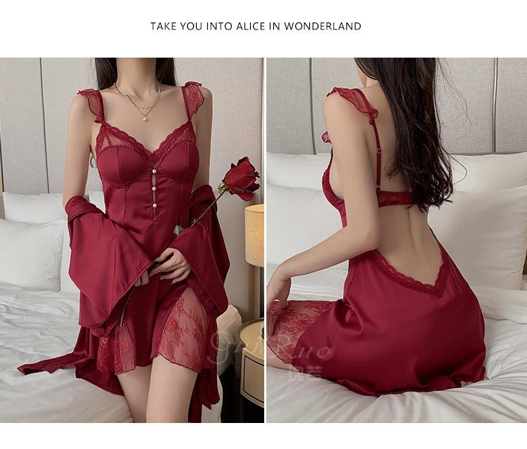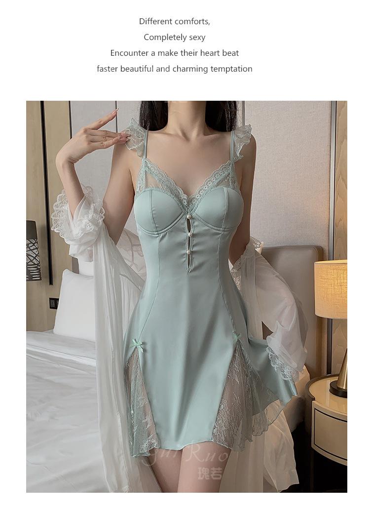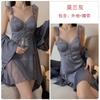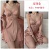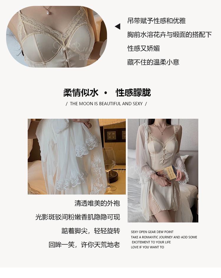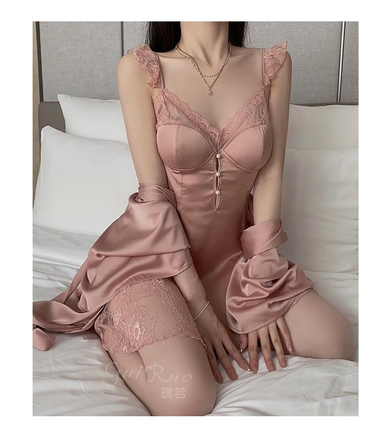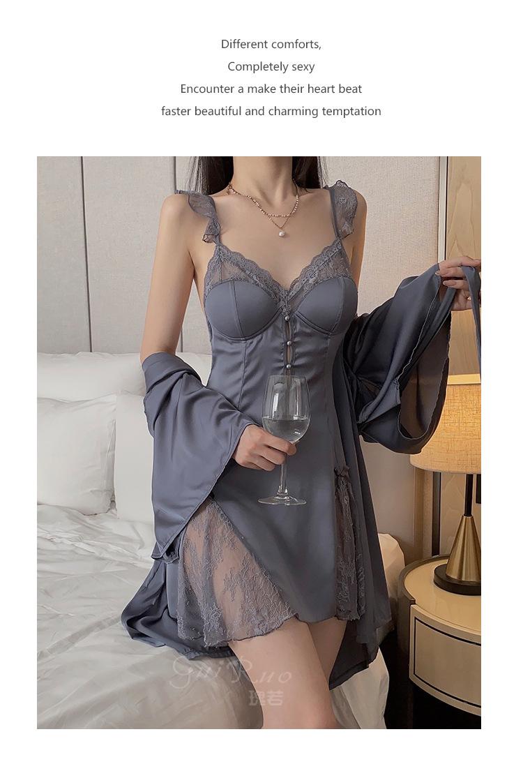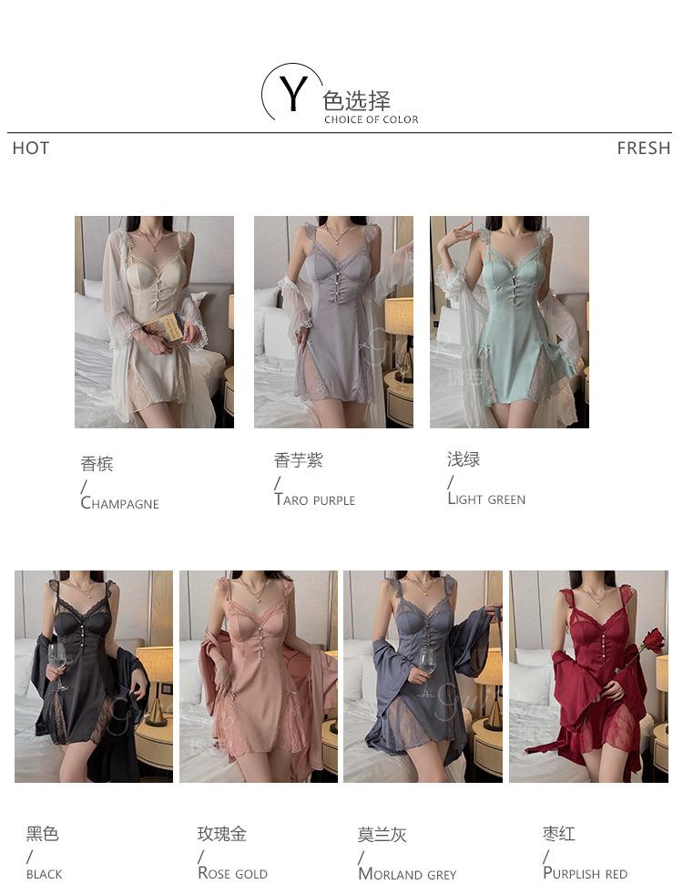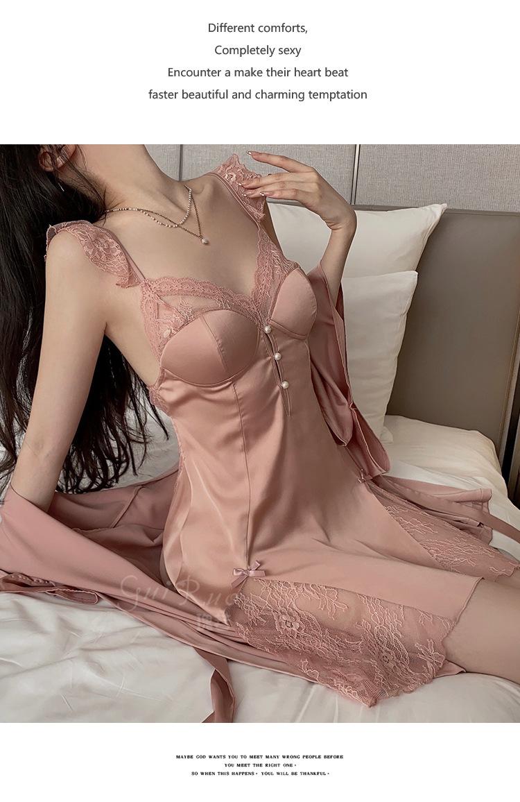 Dz Guiruo Íntimos de Satén Dulces y Suaves Sexy Talla Grande Escote Profundo en V con Almohadilla para el Busto Camisón Bata Exterior Conjunto para el Hogar J3179