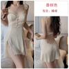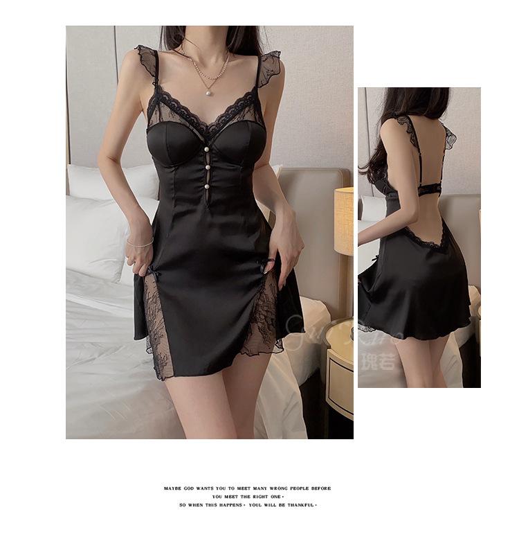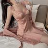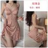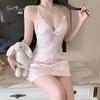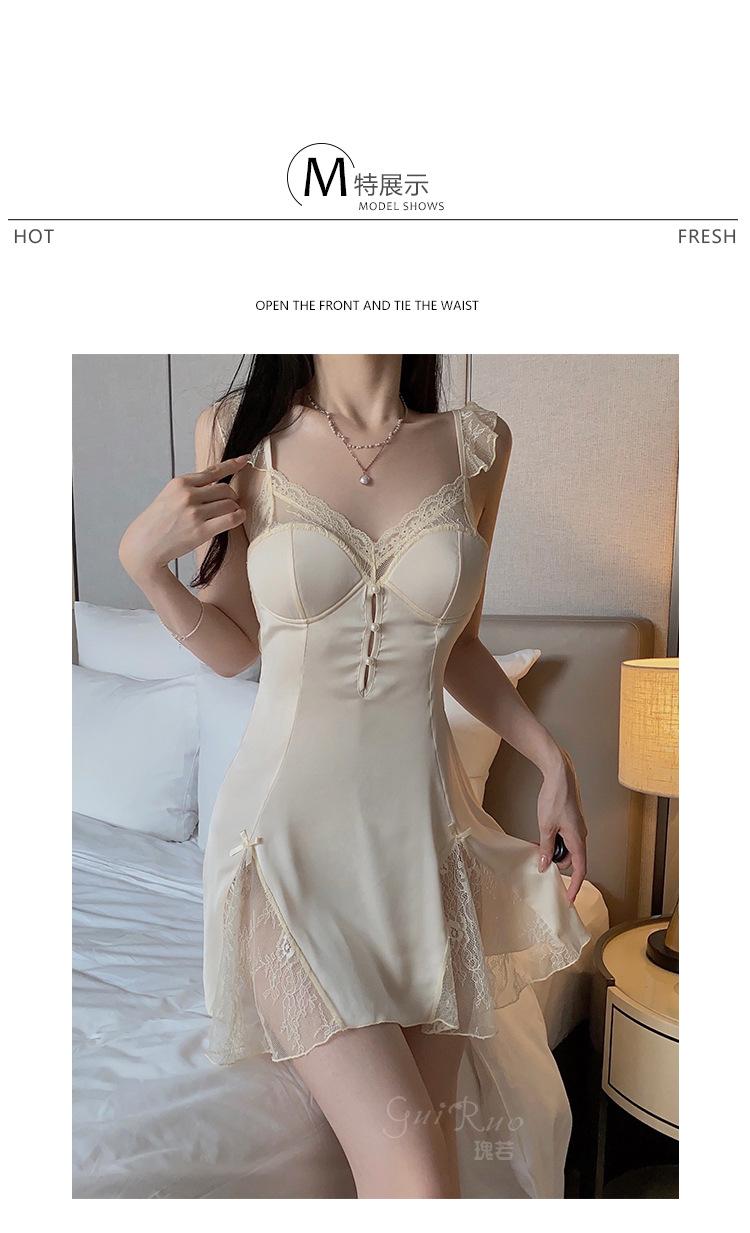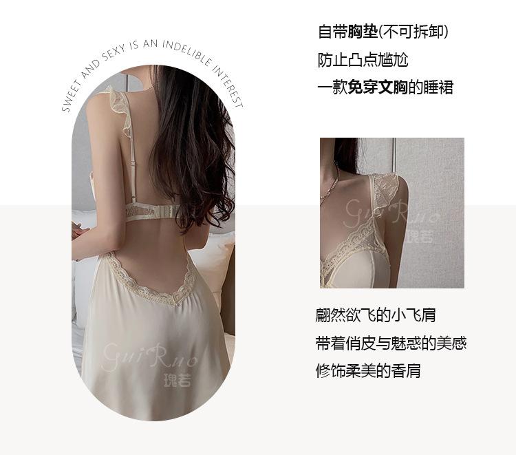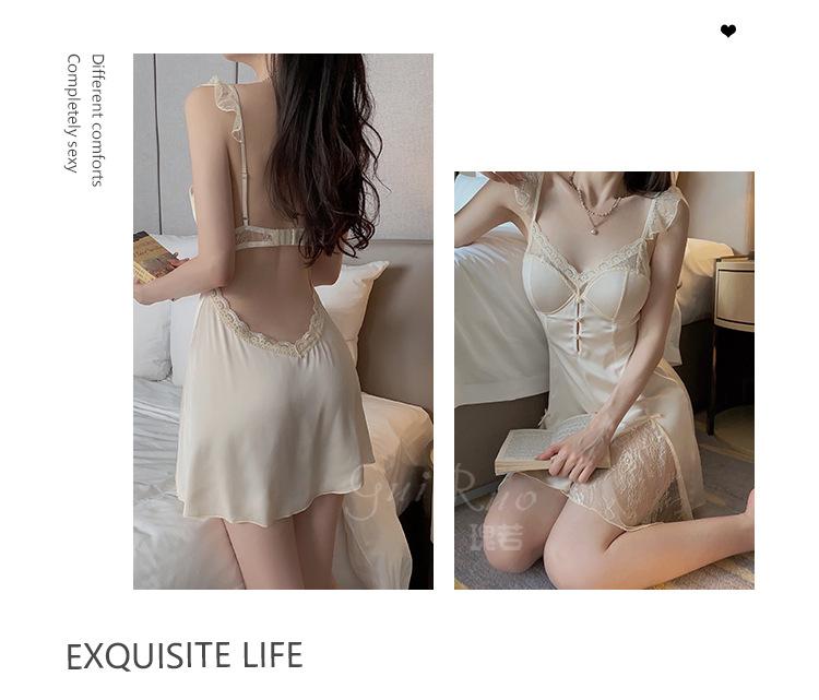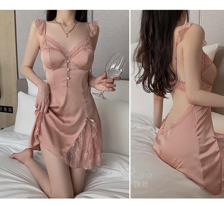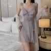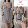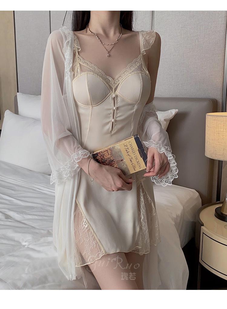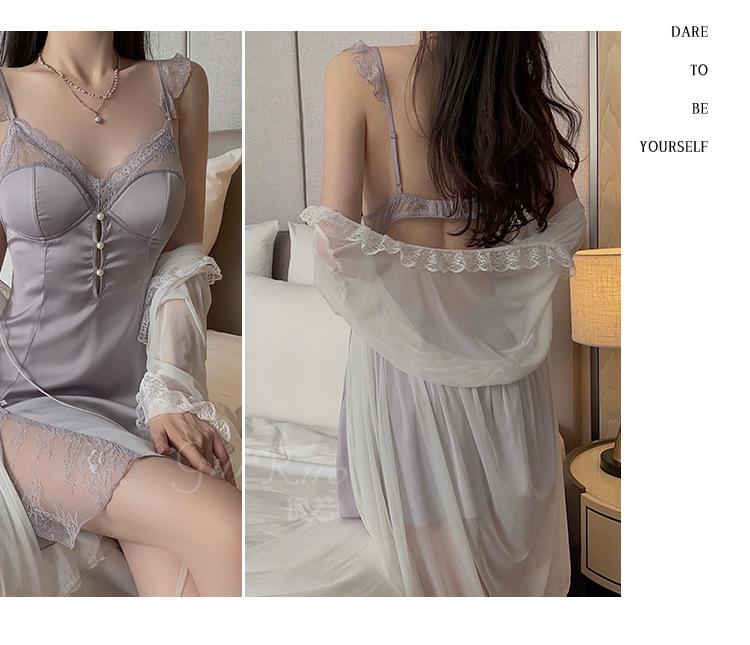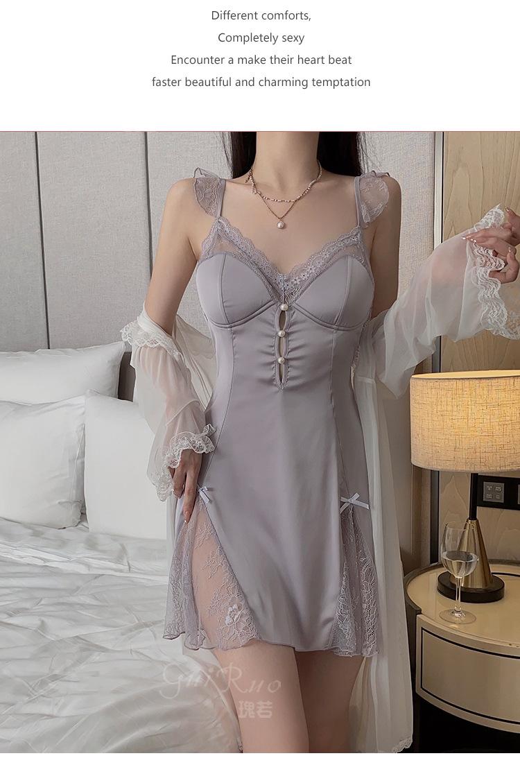 Dz Guiruo Íntimos de Satén Dulces y Suaves Sexy Talla Grande Escote Profundo en V con Almohadilla para el Busto Camisón Bata Exterior Conjunto para el Hogar J3179