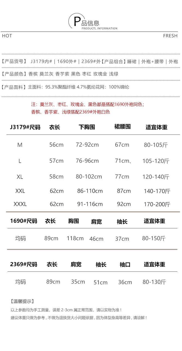 J3179 champagne color (nightgown), 2369 white robe, J3179 moran gray (nightgown), 1690 moran gray (robe + belt...