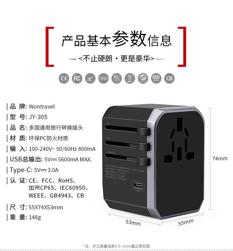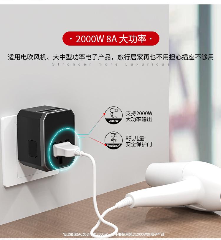 Enchufe de Conversión para Comercio Electrónico Transfronterizo, Enchufe Múltiple, Enchufe Universal Global, Carga Rápida USB, Viaje, Portátil, Convertidor de Energía
