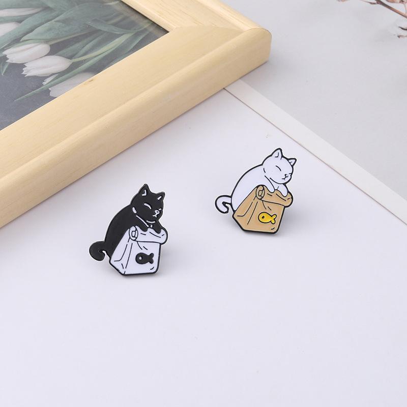 Lindo Pin de Animal Gato Blanco y Negro Personalizado Simple de Dibujos Animados Forma de Comida para Gato Aleación Accesorios Broche Venta al por Mayor