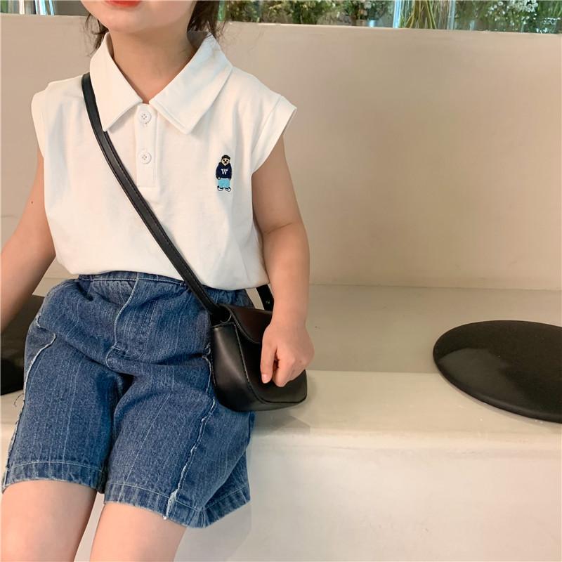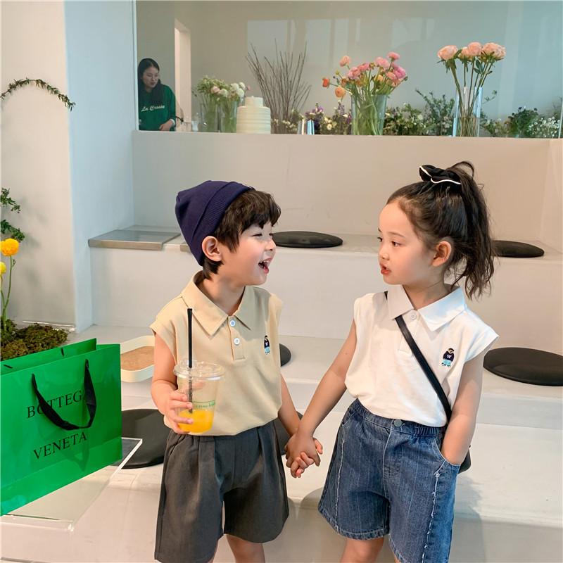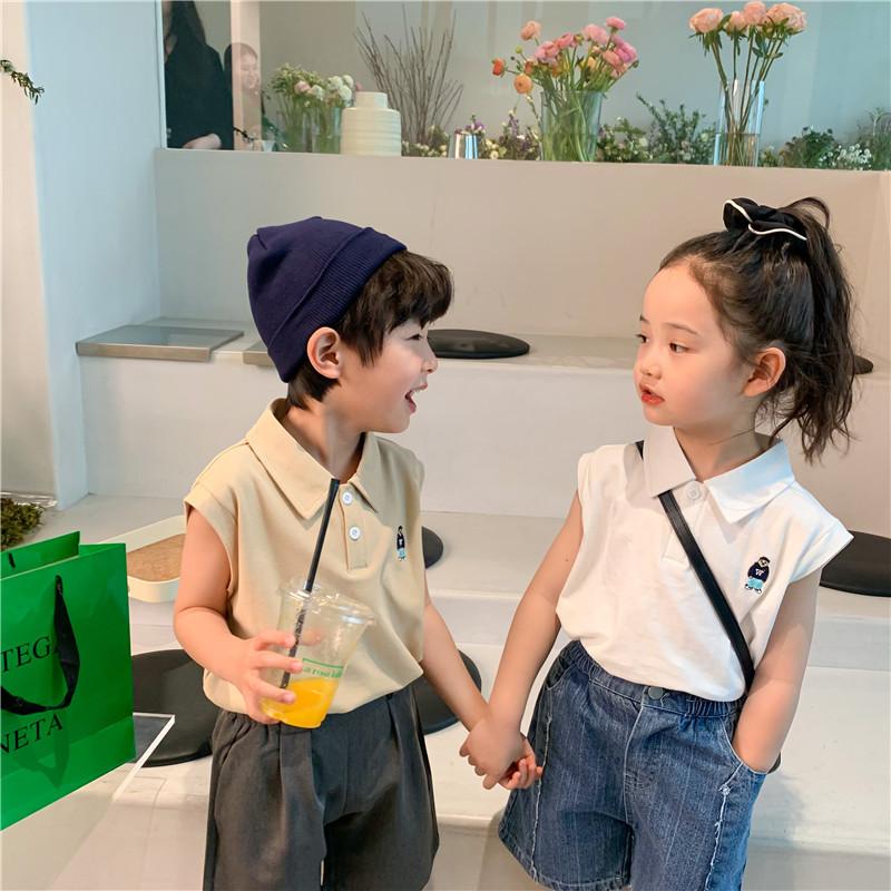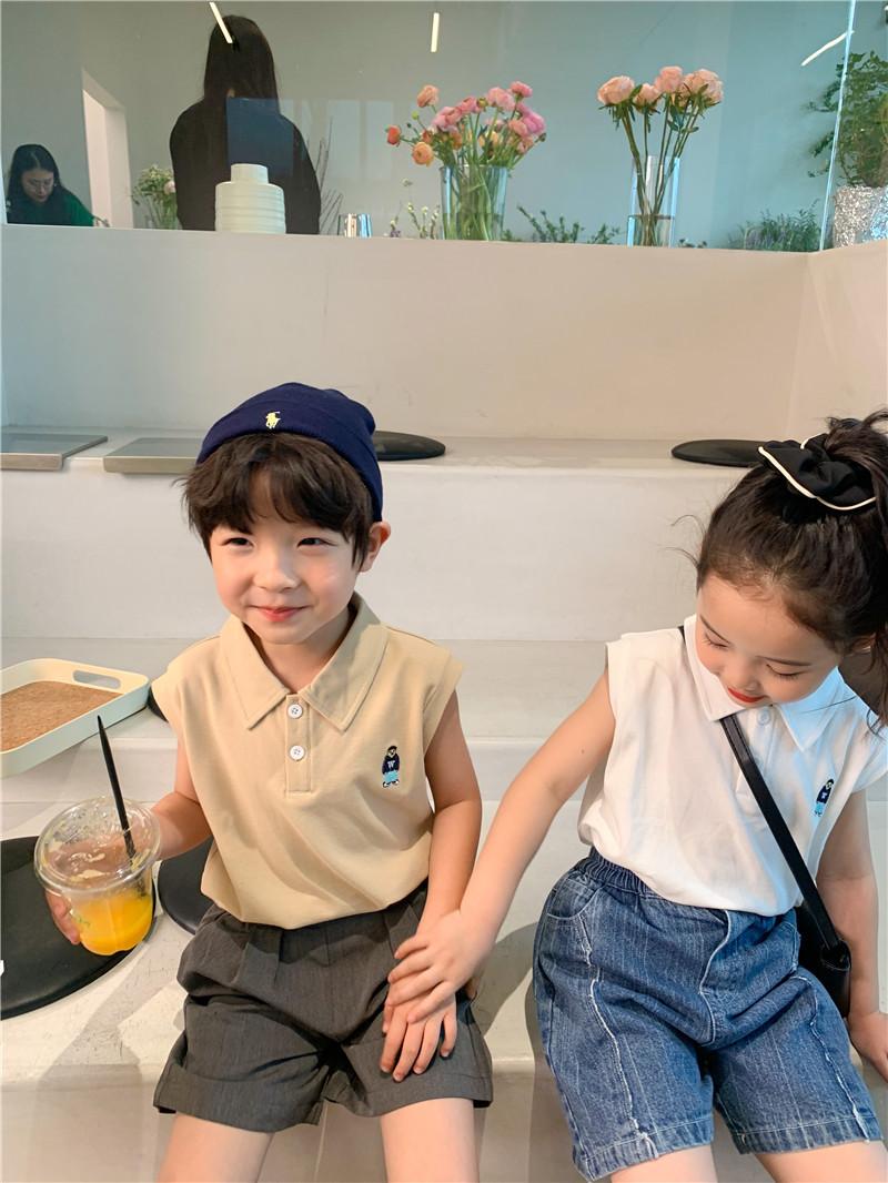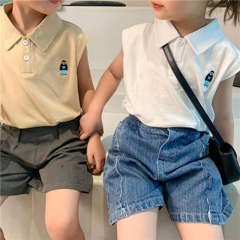 XDJ2023 Verano Nueva Llegada Estilo Coreano Chaleco Bordado de Oso para Niños y Niñas Sin Mangas Lar Estilo Trendy
