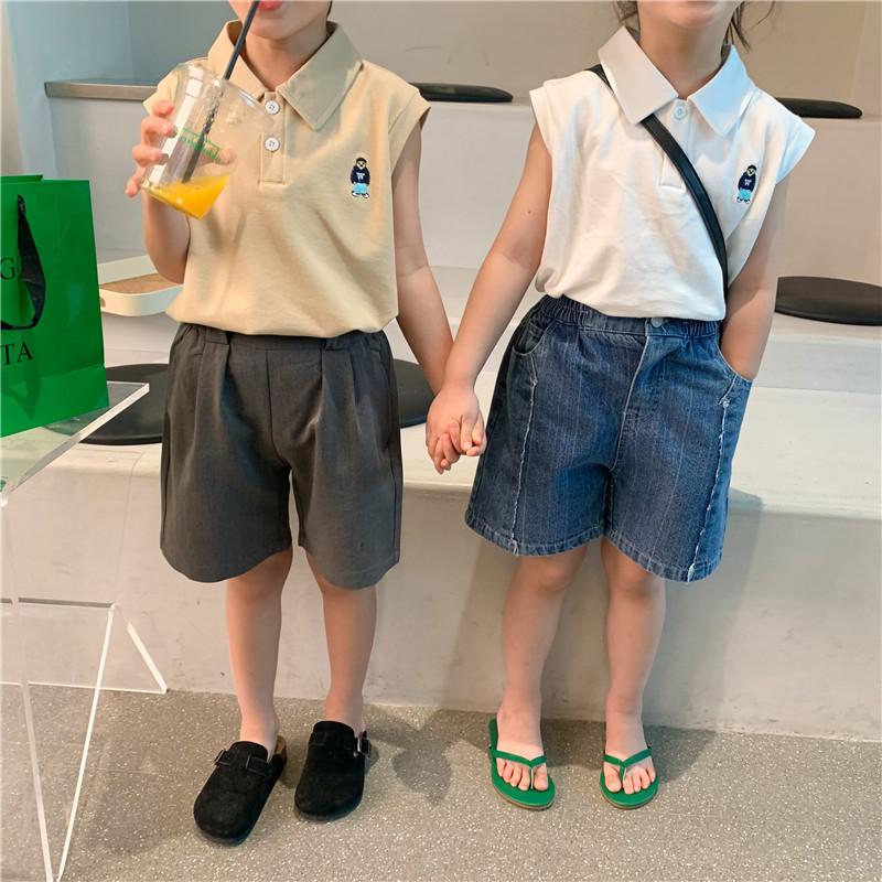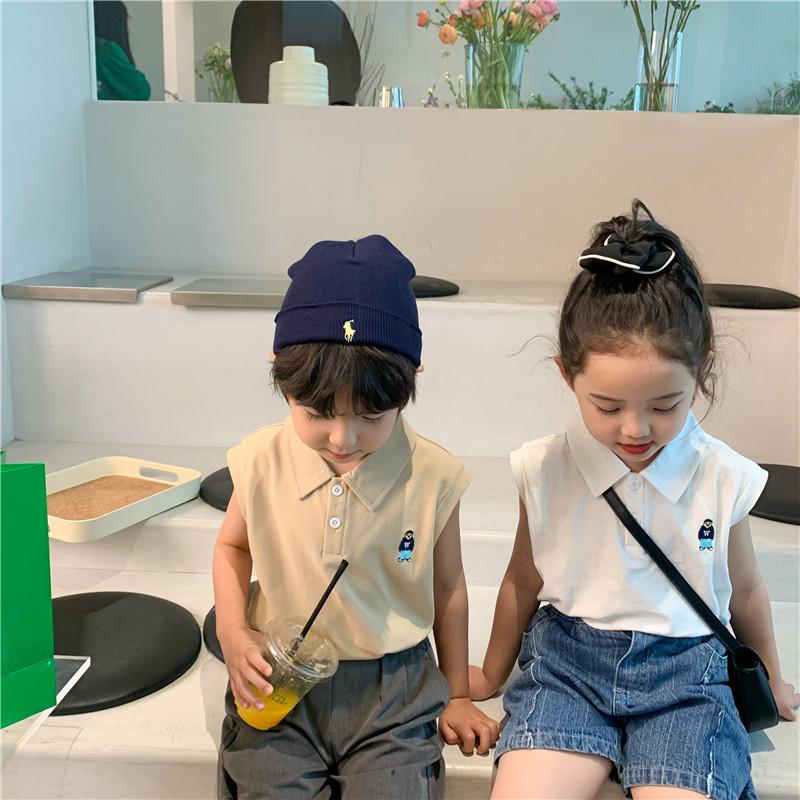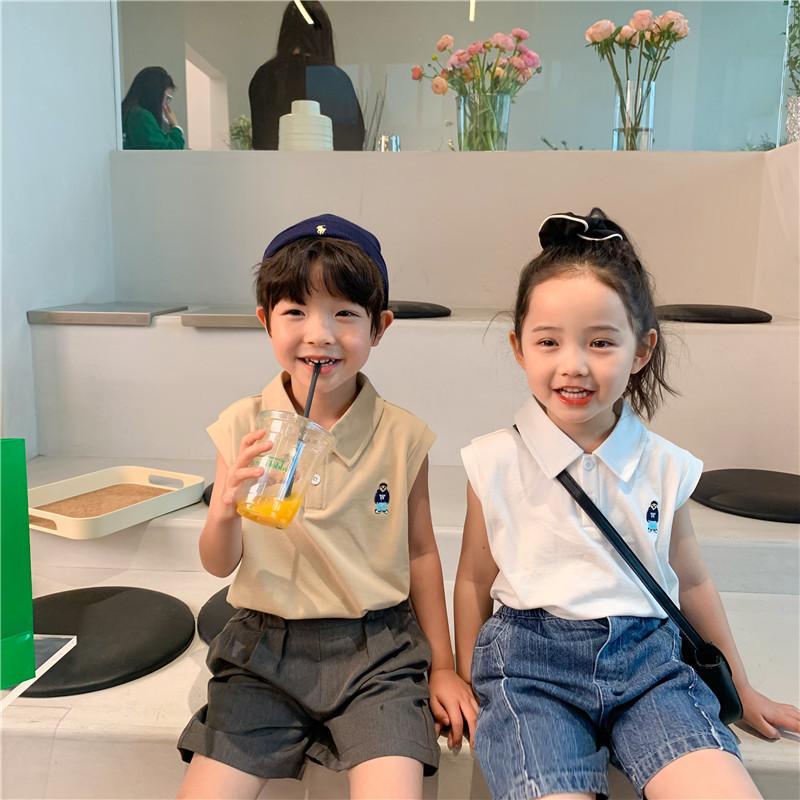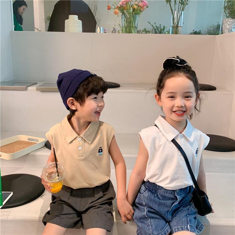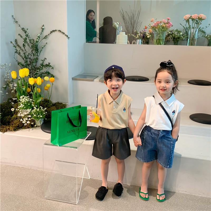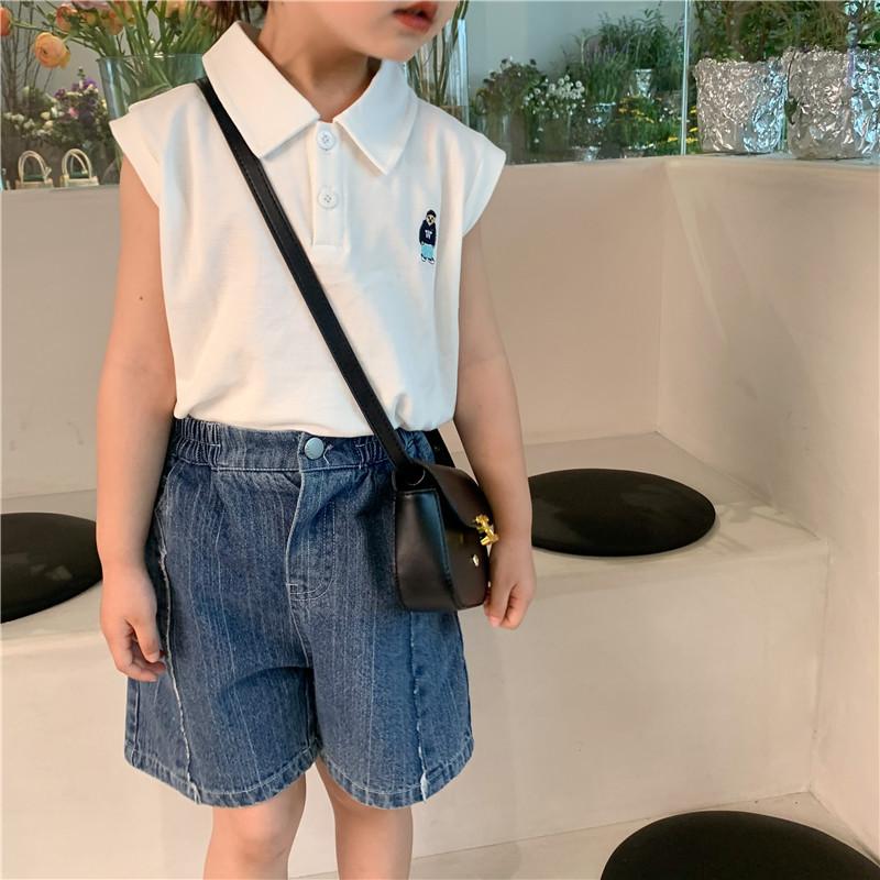 XDJ2023 Verano Nueva Llegada Estilo Coreano Chaleco Bordado de Oso para Niños y Niñas Sin Mangas Lar Estilo Trendy