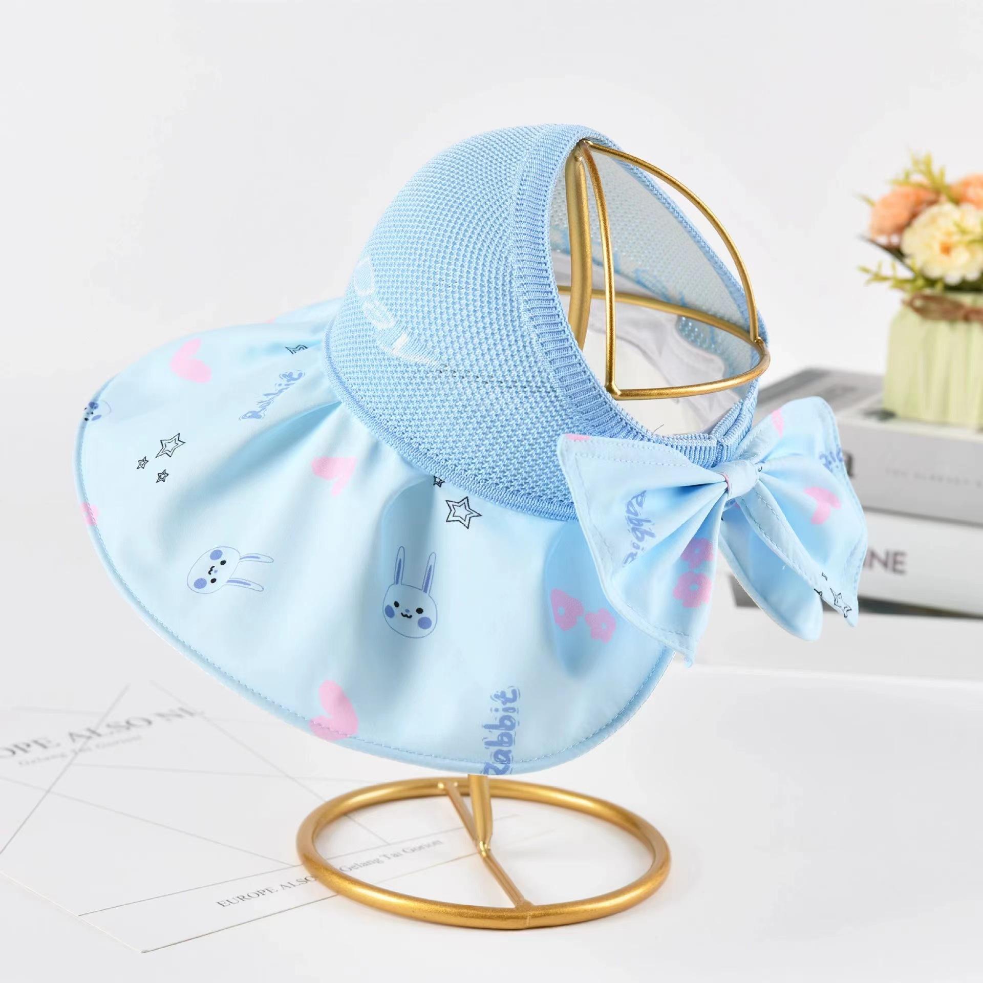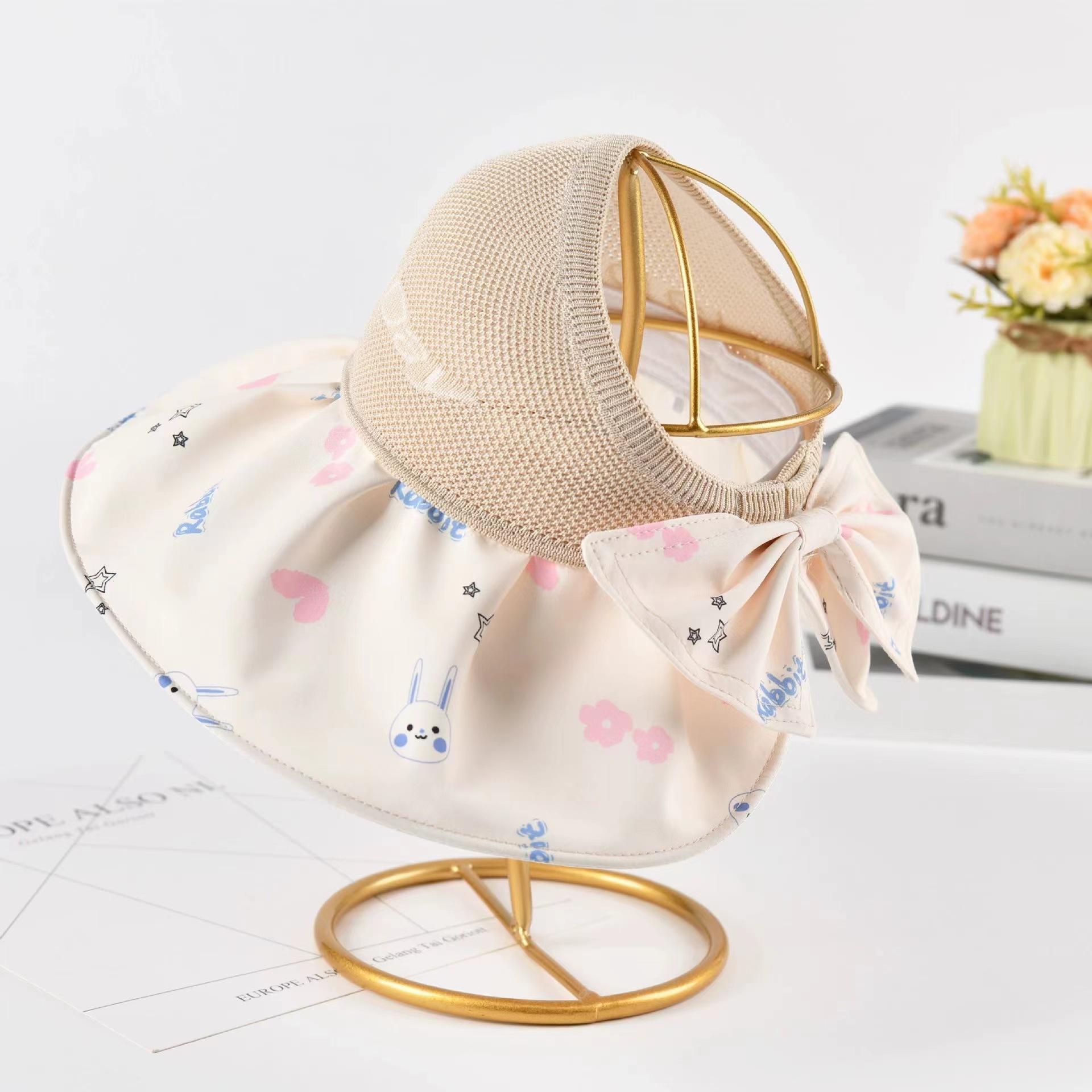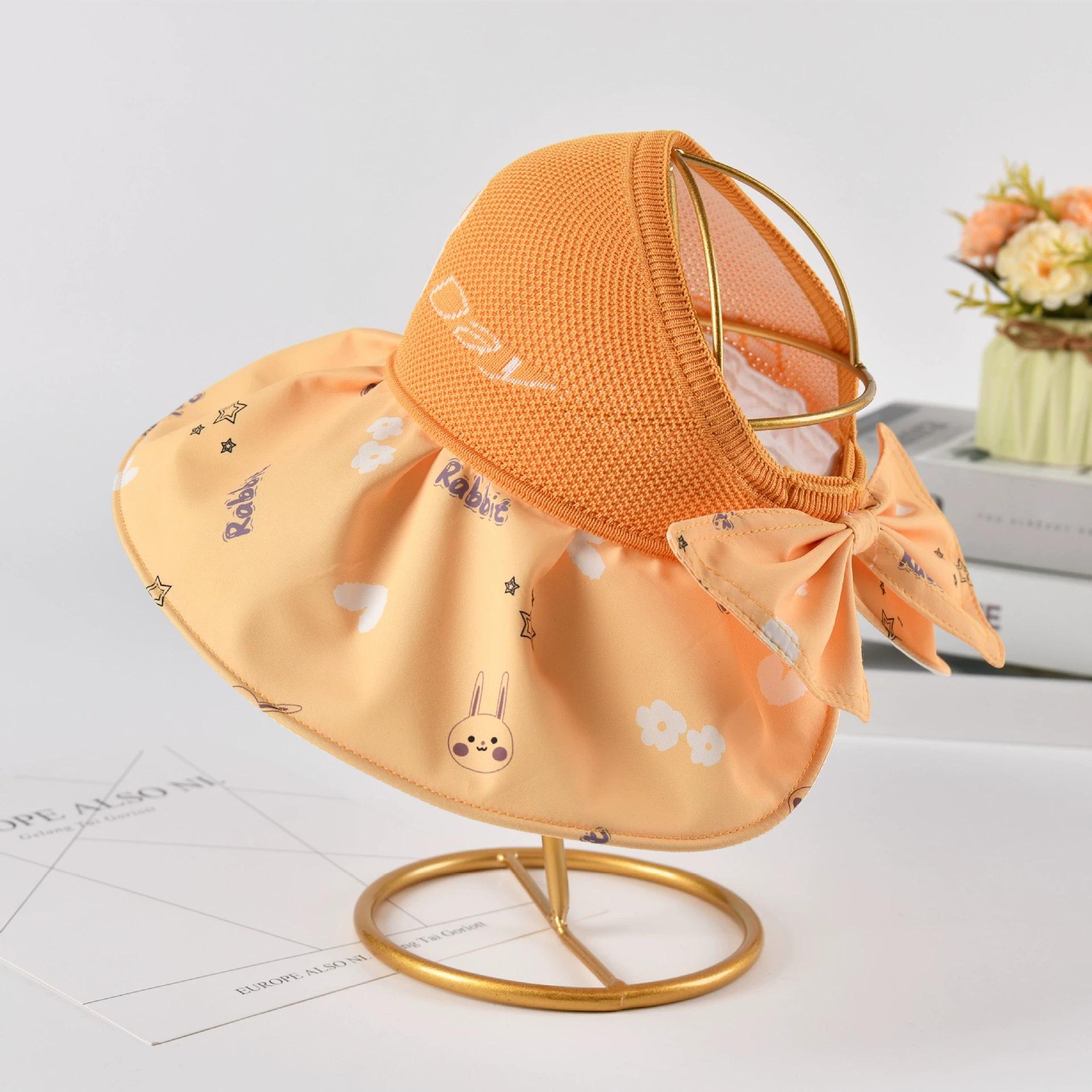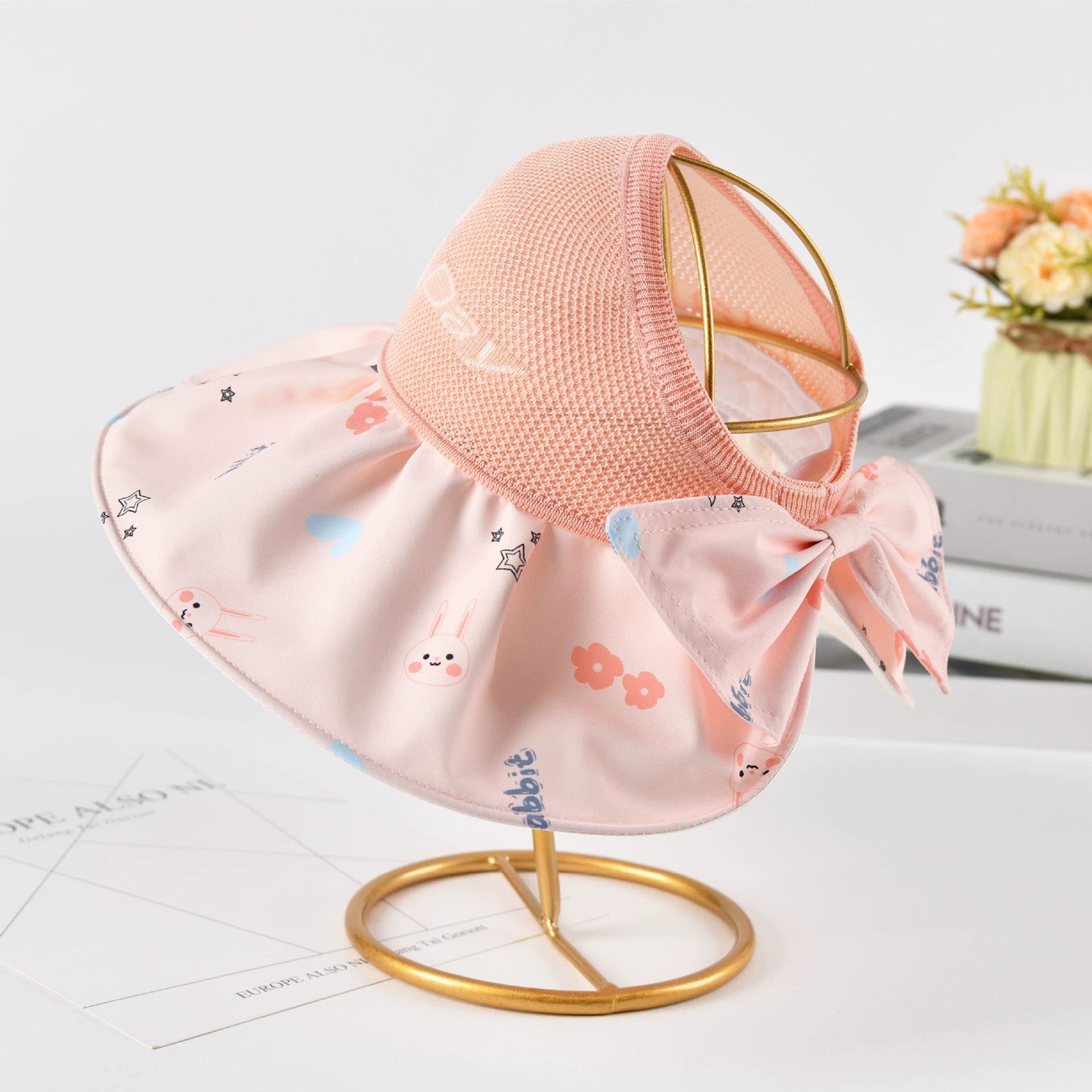 Sombrero de sol para niños, novedad de 2024, sombrero de verano con protección solar, sombrero de punto con costuras vacías, lindo sombrero de conejo a la moda.