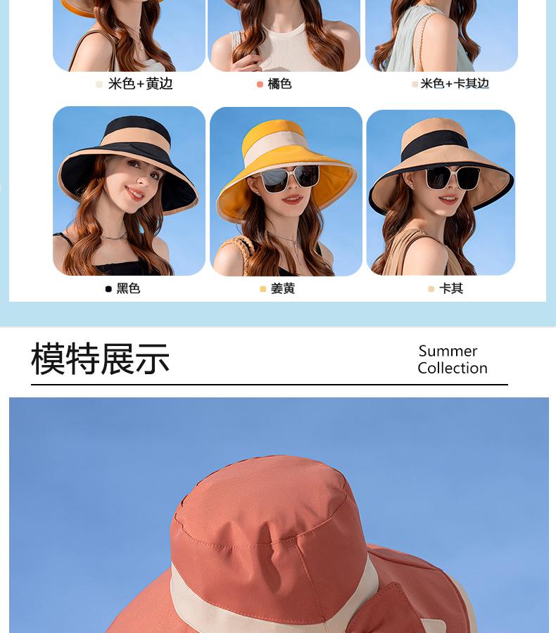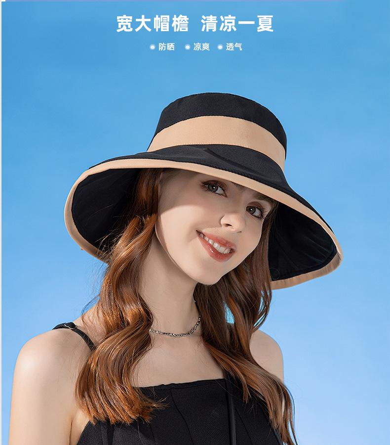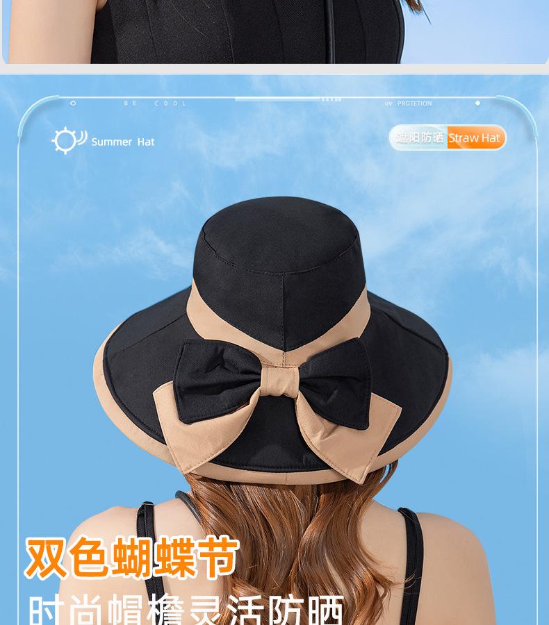8226 Sombrero de Pescador Europeo y Americano de Ala Ancha Sombrero de Sol de Verano Moda Femenina Lazo Protección Solar para Playa Sombrero de Sol Transfronterizo