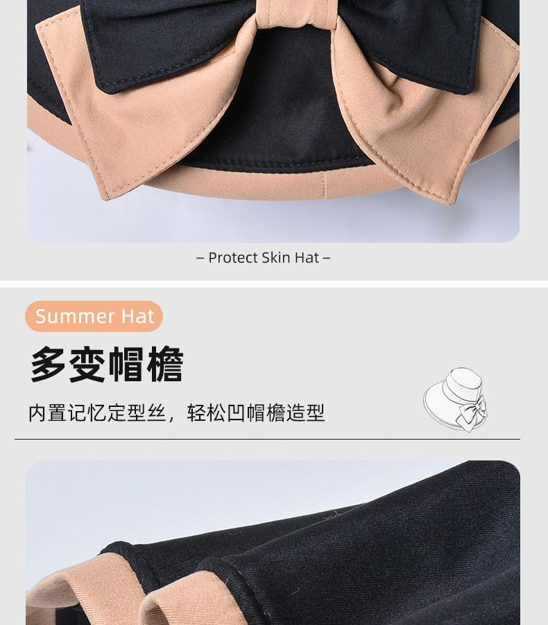 Two-color bow bucket hat, All-match, Elegant, Leisure wind, Movement Wind, Fashion OL, Europe and America, Lig...