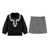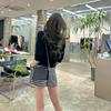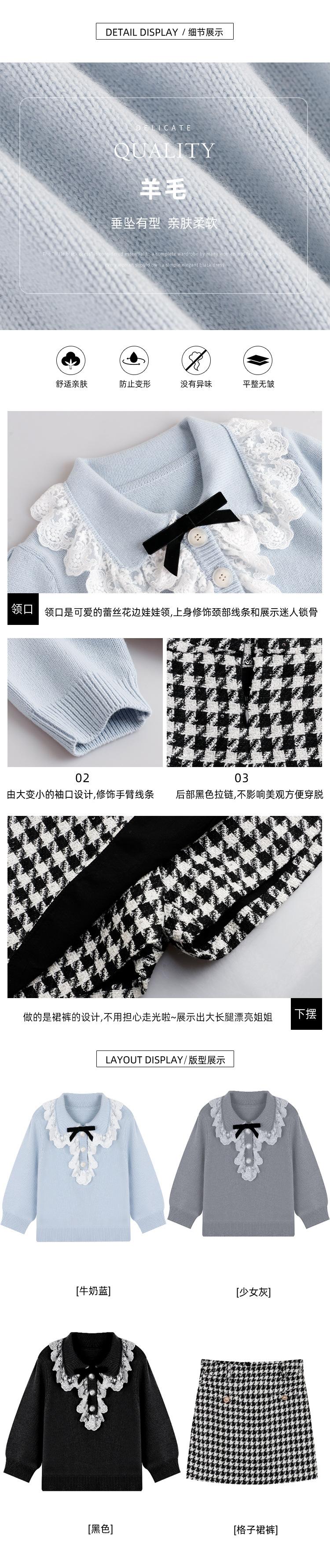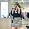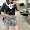 Tejido de Punto de Cuello de Muñeca de Encaje Miu Girl Hecho con Ligereza, Shorts Falda de Cuadros de Cintura Alta a la Moda