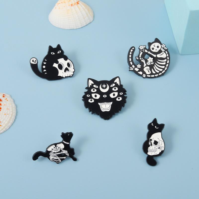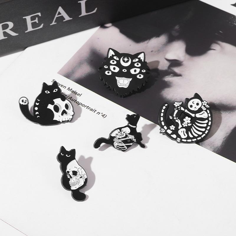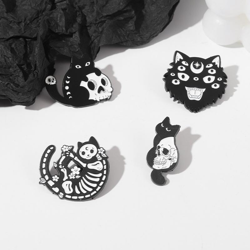 Broche Gato Fantasma Negro Europeo y Americano Amazon Nieve Insignia de Metal Pintado Venta al por Mayor Gato Calavera Horror Oscuro Pin