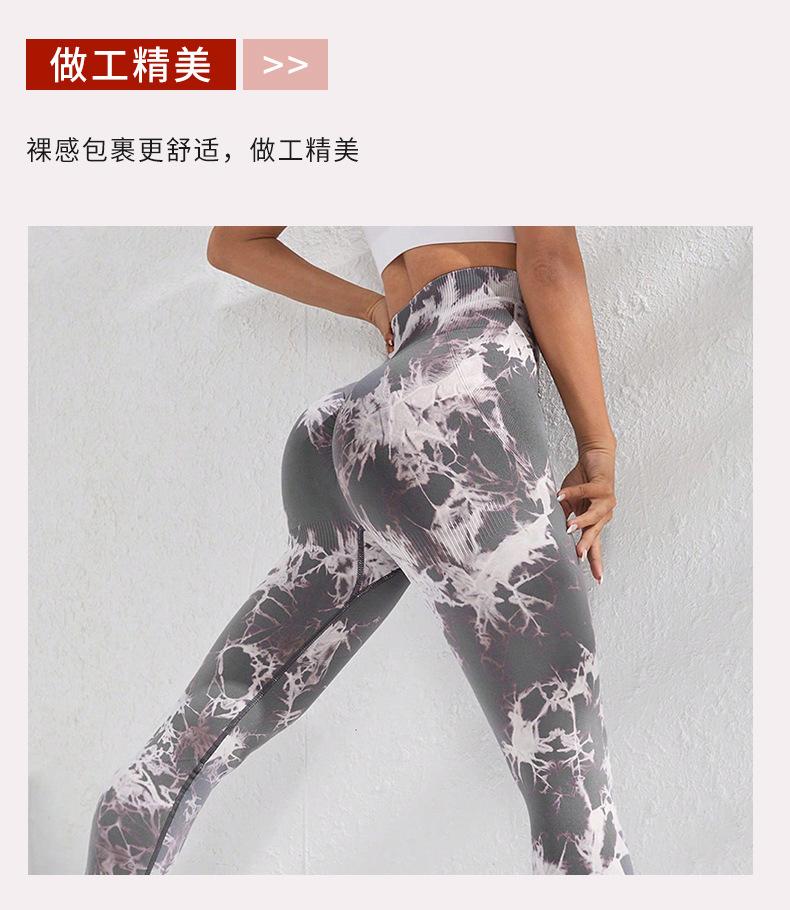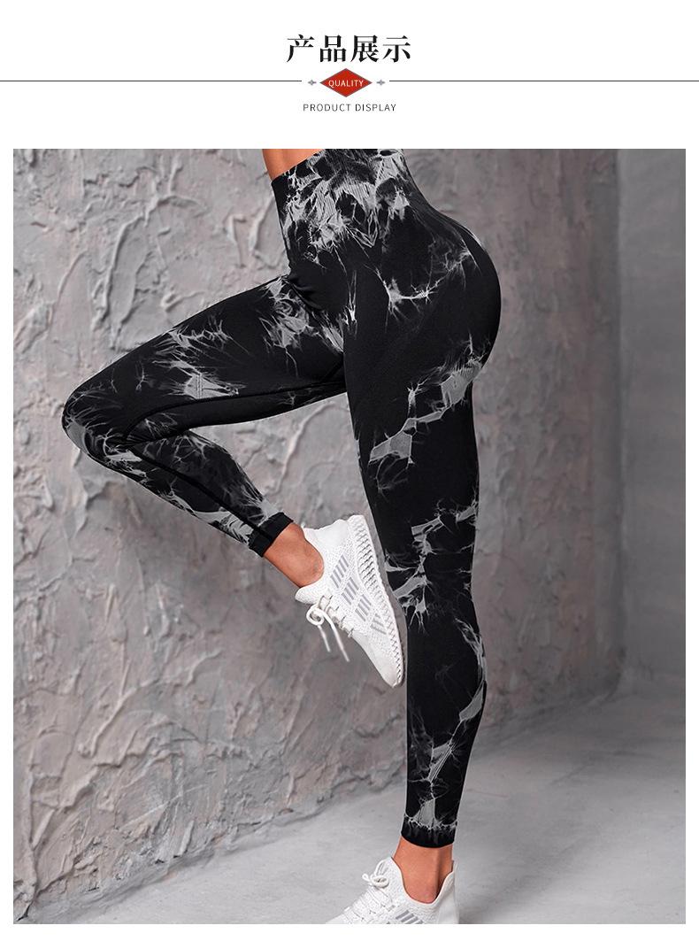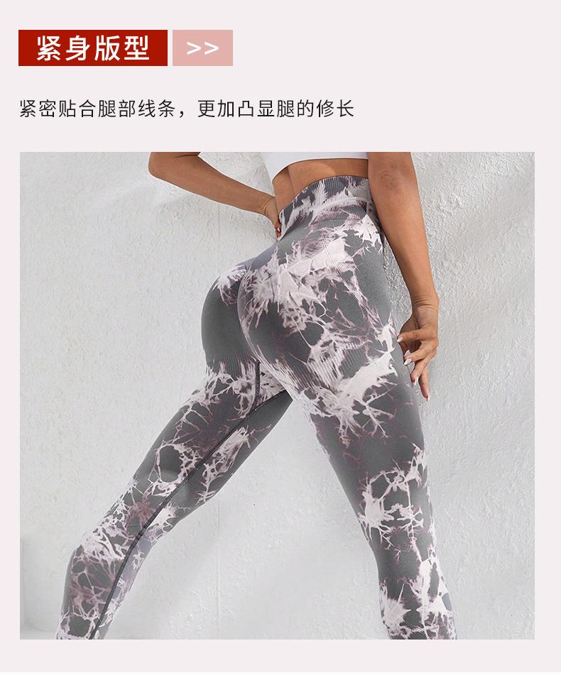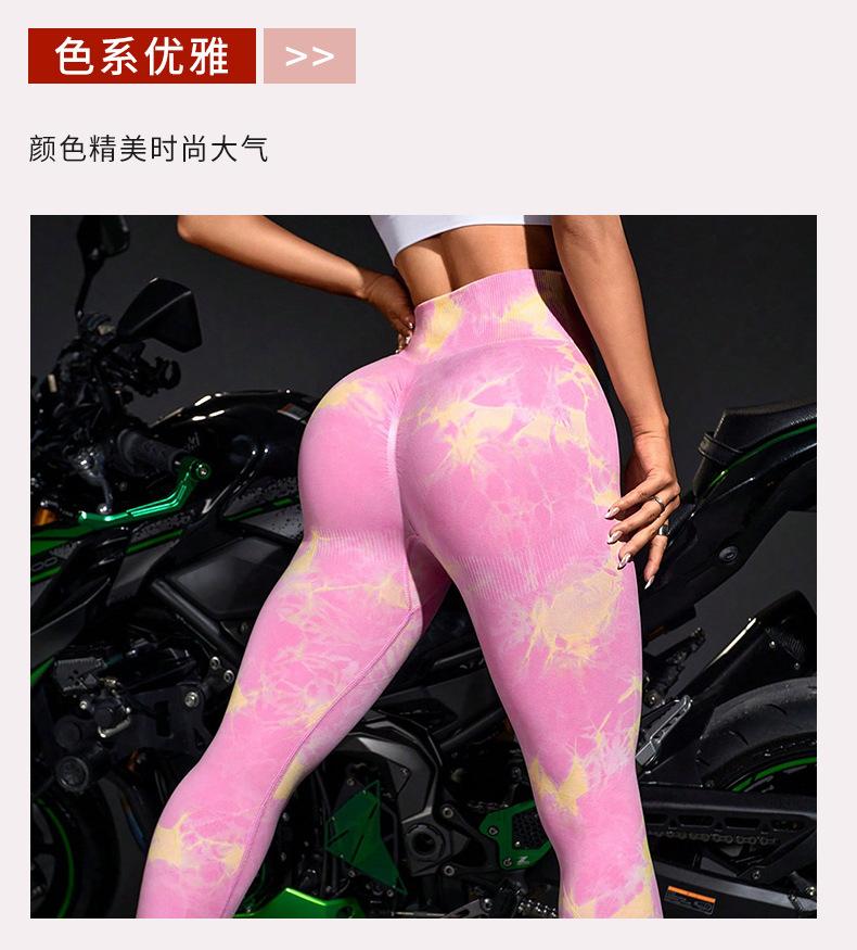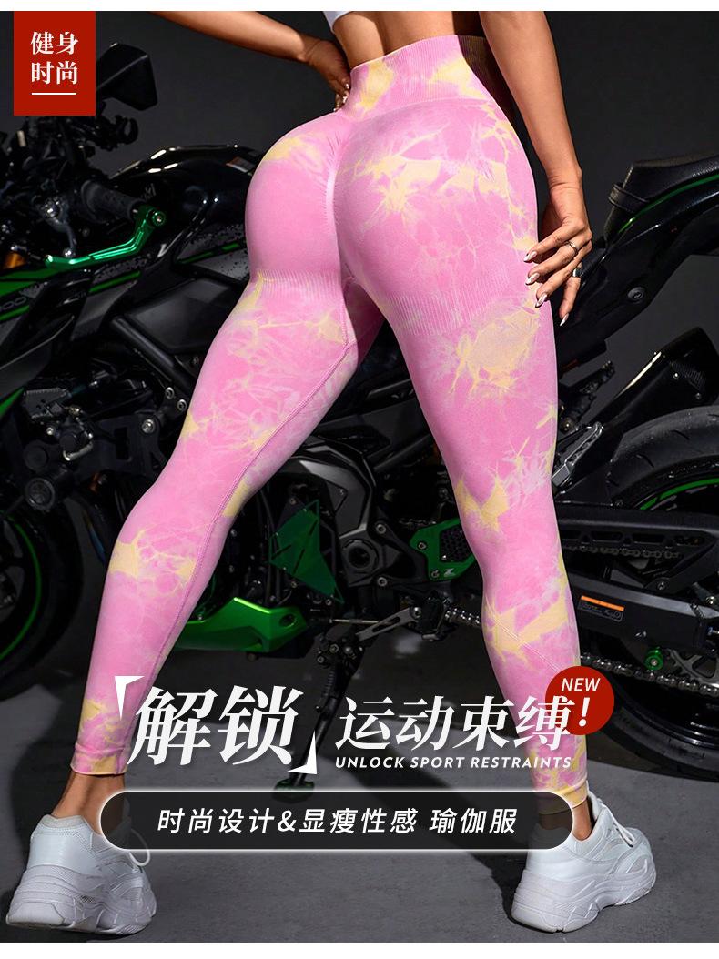 Nuevos pantalones deportivos ajustados sin costuras de cintura alta para levantar cadera, europeos y americanos, teñidos anudados de dos colores, de secado rápido, pantalones capri de yoga para mujer