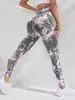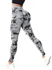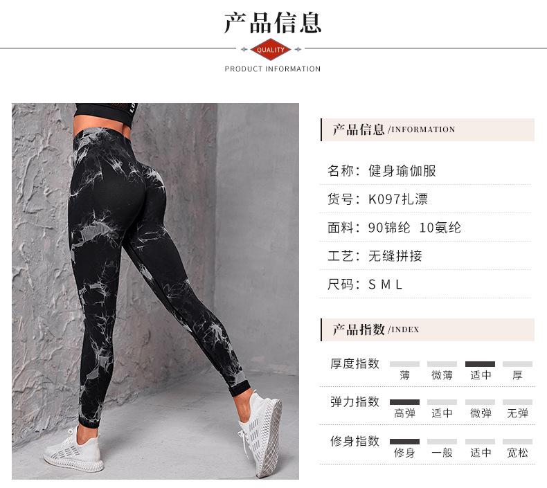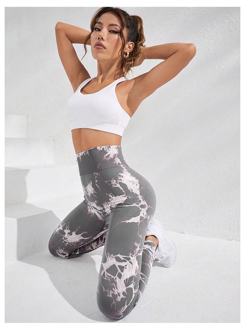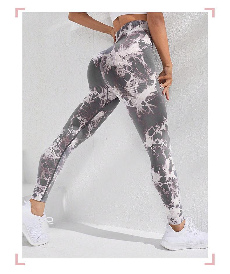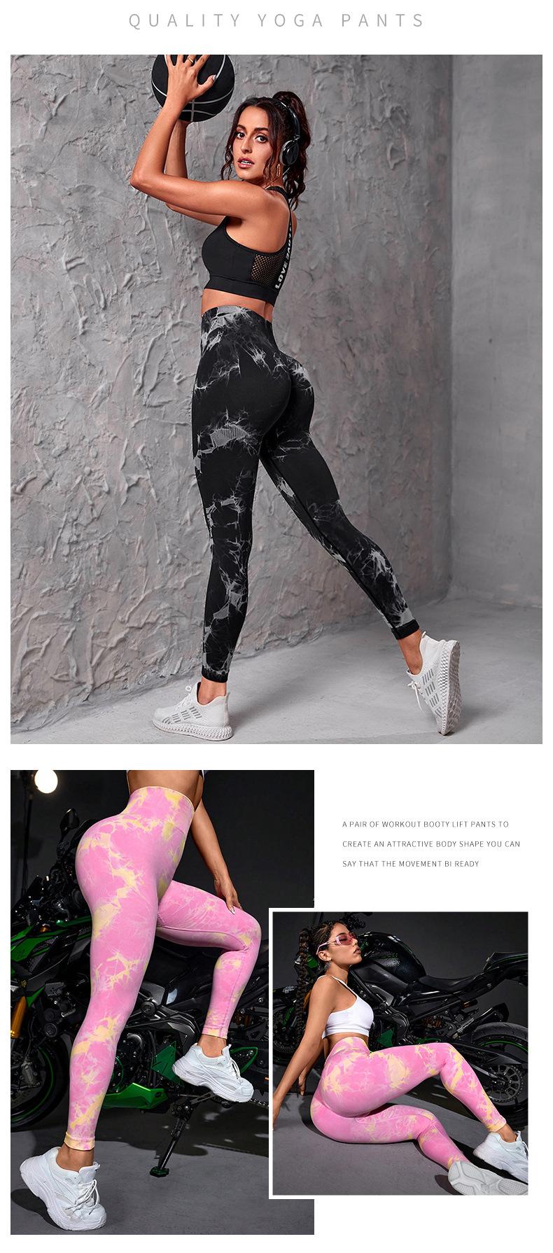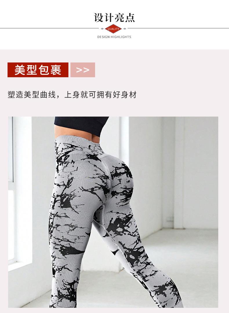 Nuevos pantalones deportivos ajustados sin costuras de cintura alta para levantar cadera, europeos y americanos, teñidos anudados de dos colores, de secado rápido, pantalones capri de yoga para mujer