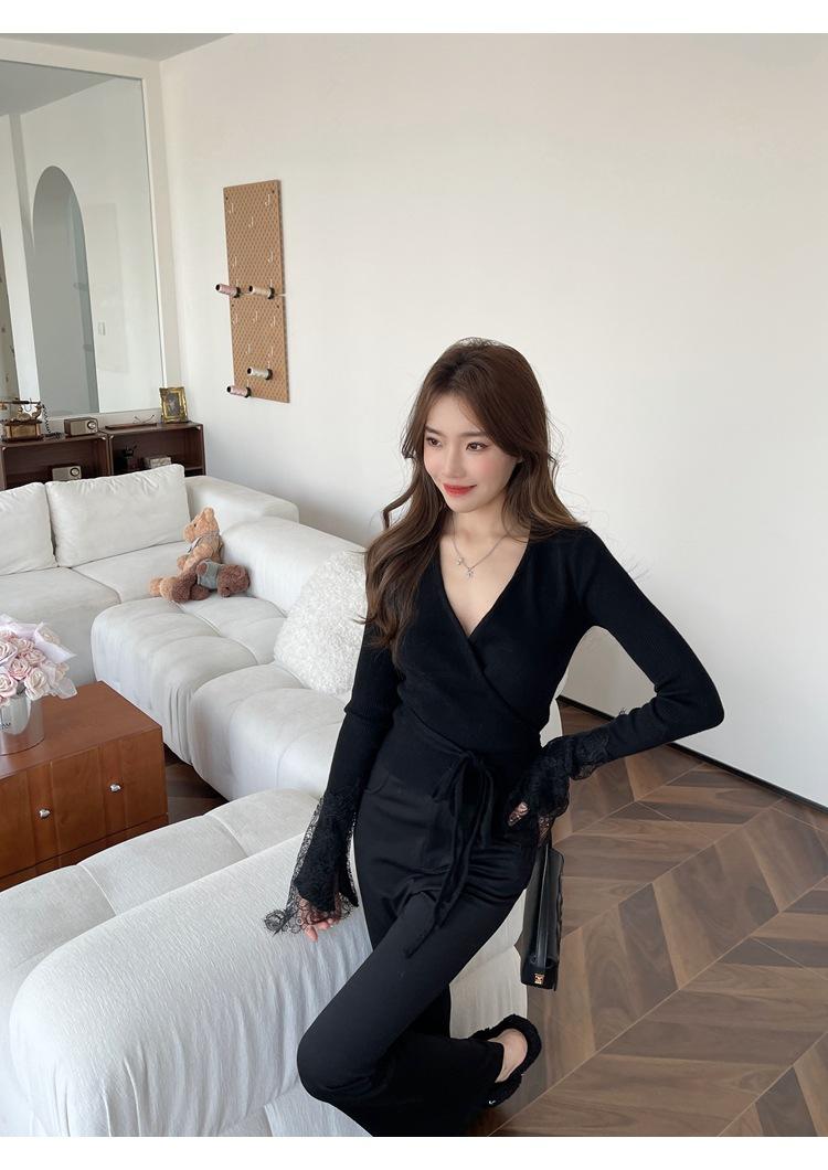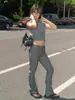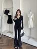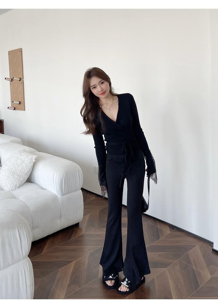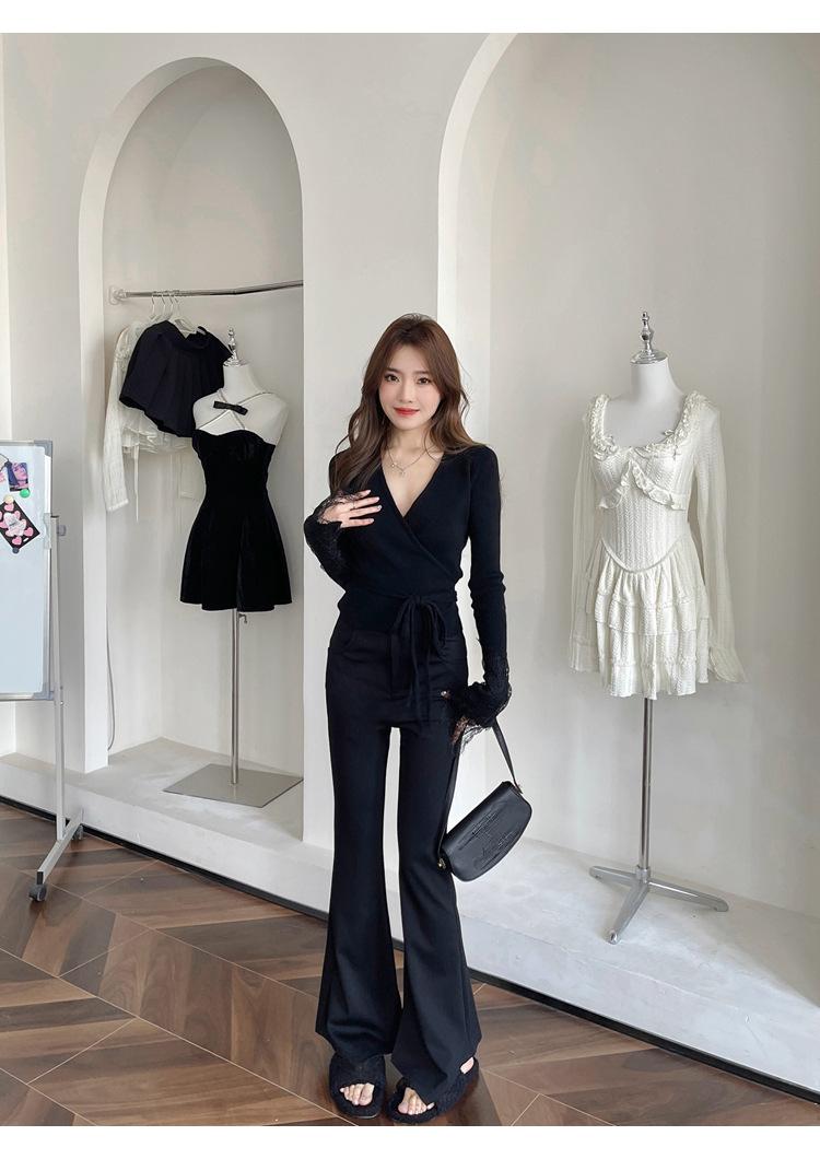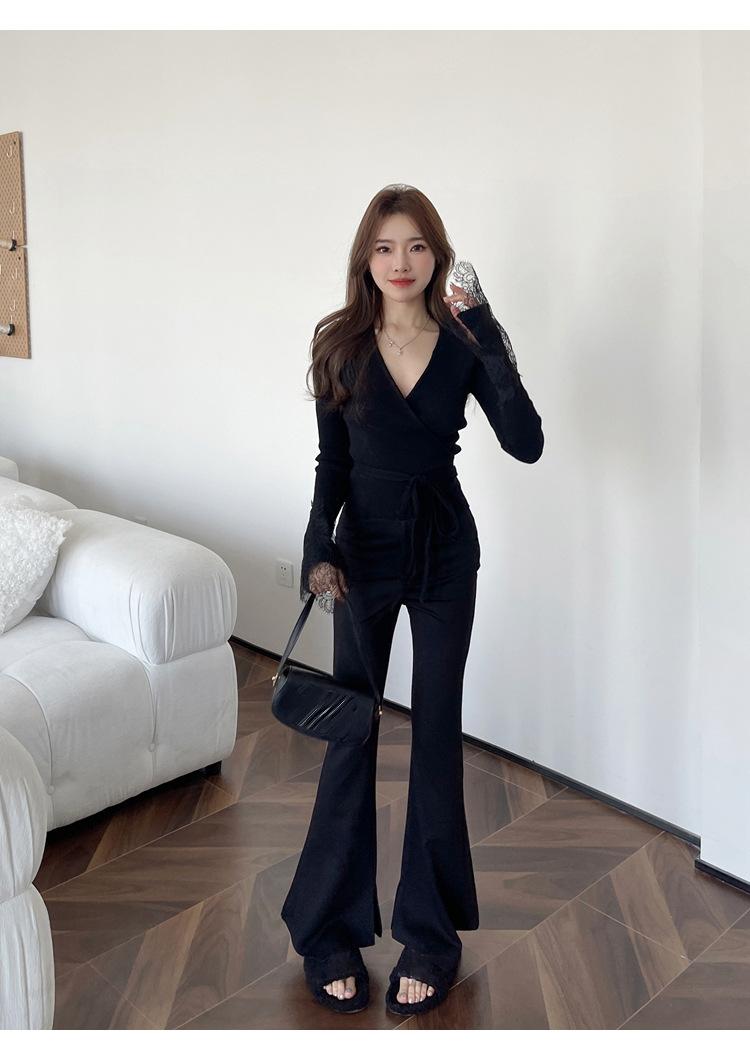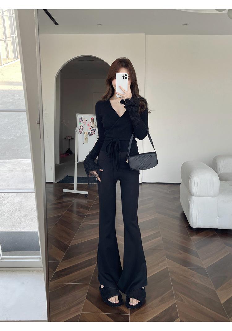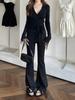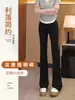 Pantalones acampanados con abertura en forma de V, pantalones casuales ajustados para mujer, nuevos