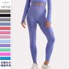 Pantalones de yoga deportivos elásticos de cintura alta sin costuras para mujer, mallas ajustadas de secado rápido con cintura elástica y color melocotón.