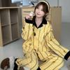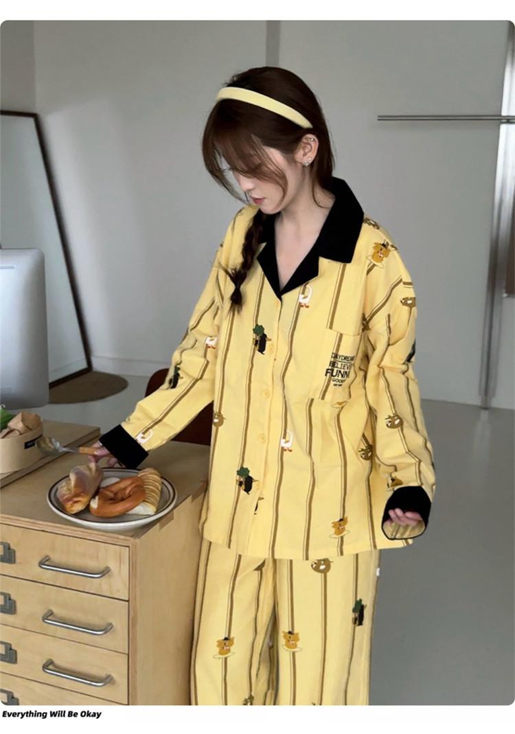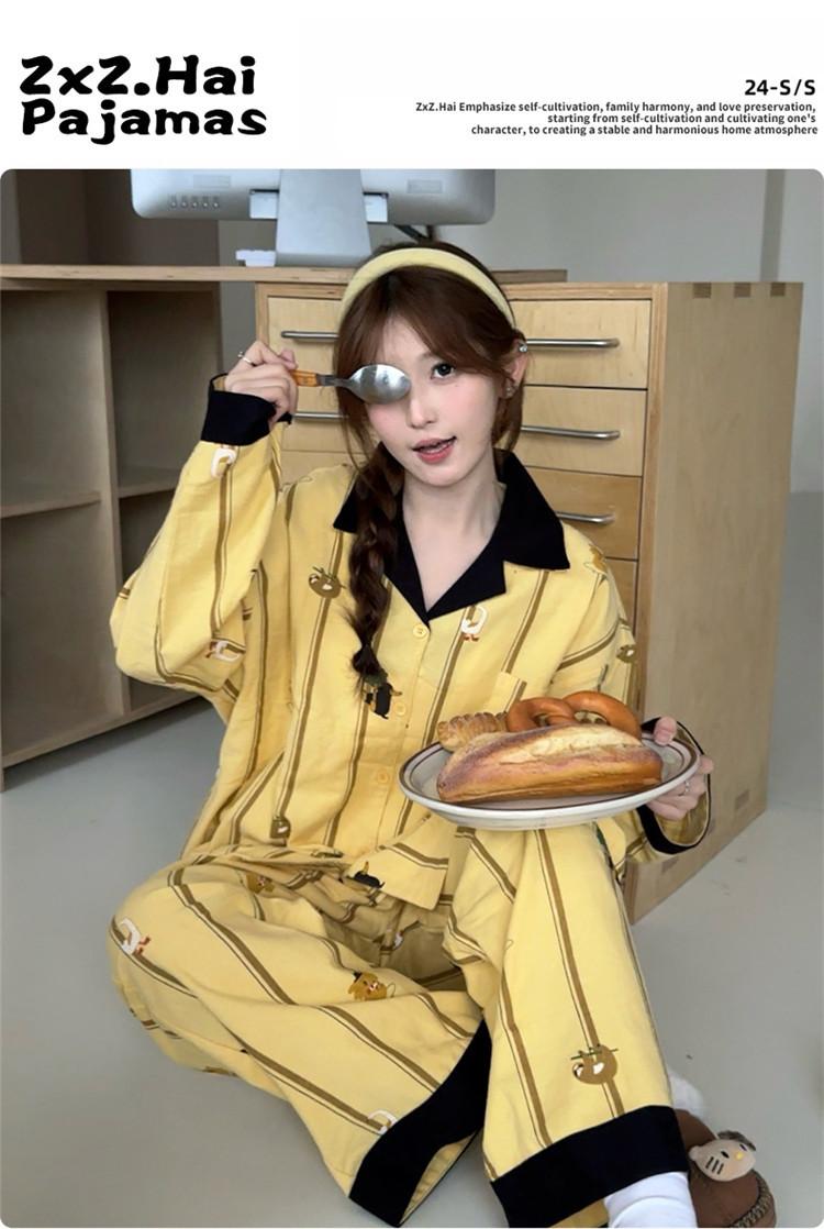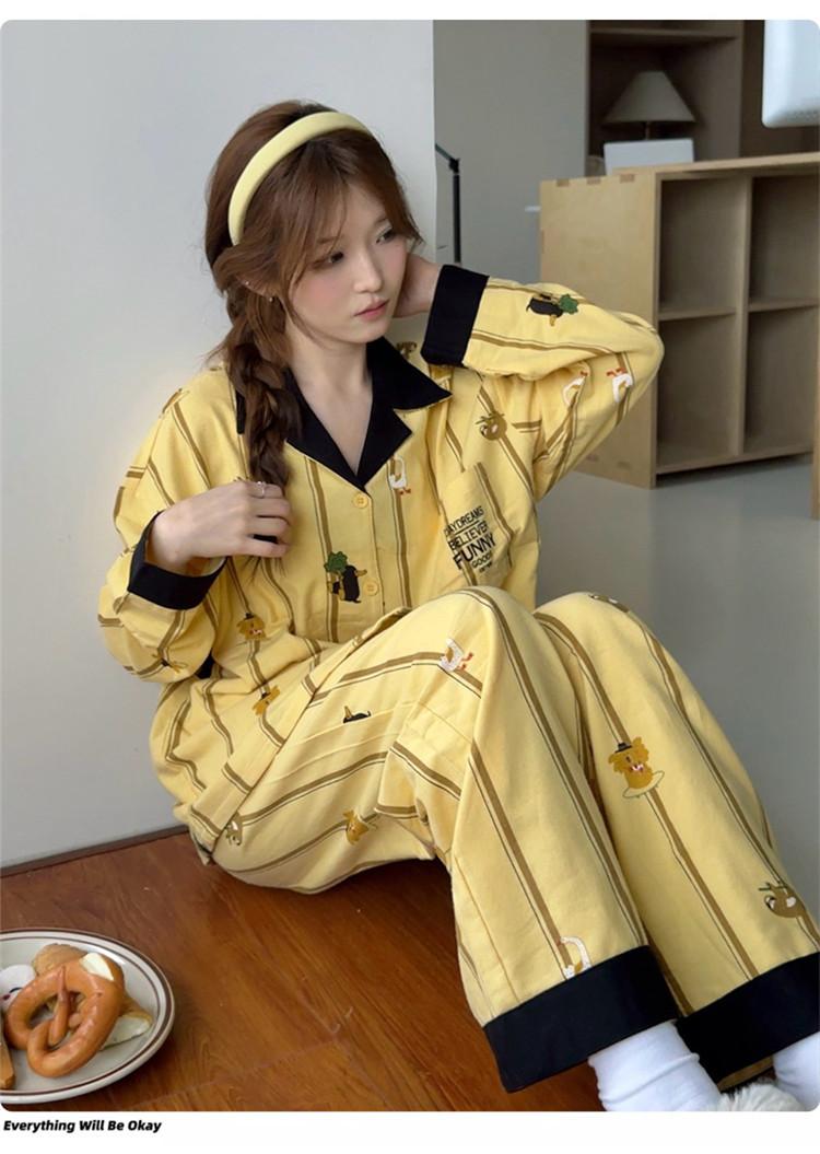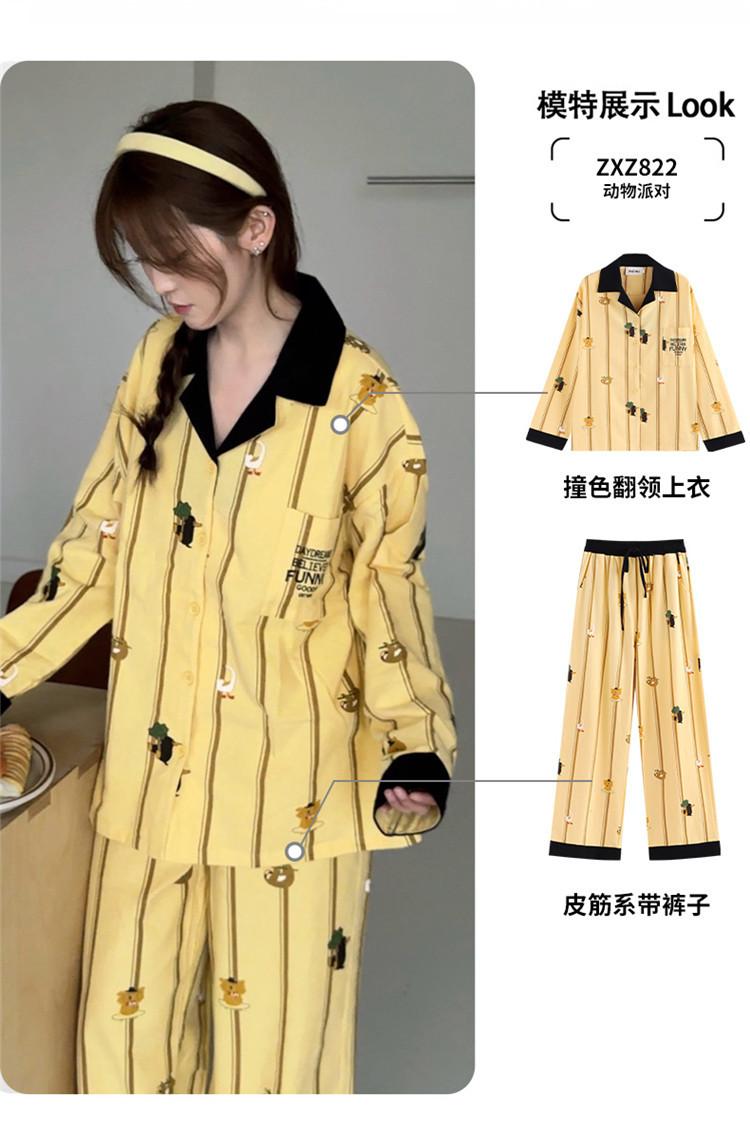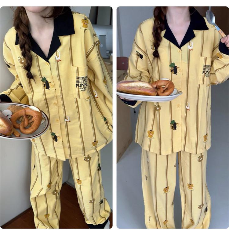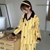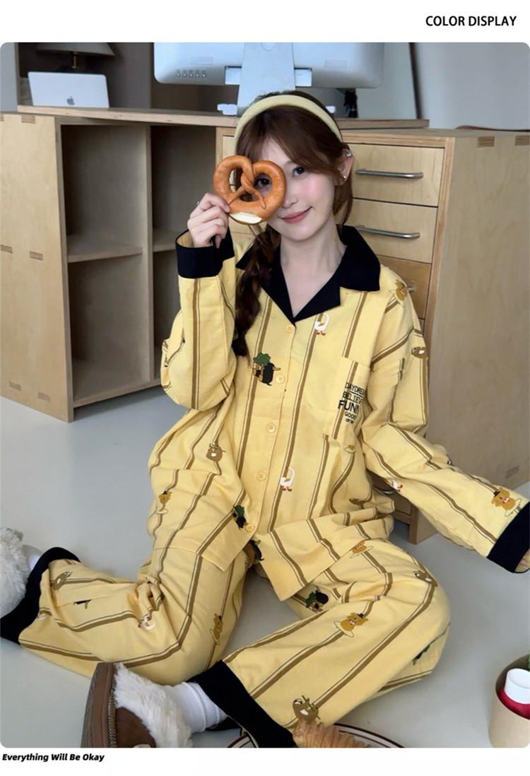 Pijama de algodón con solapa para fiesta de otoño e invierno con diseño de animales, bonito pijama de dibujos animados de manga larga, ropa cálida para el hogar
