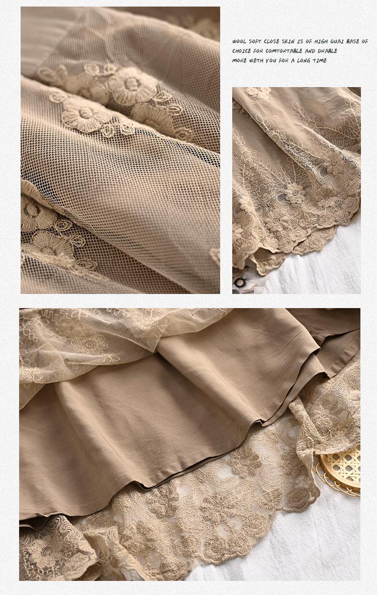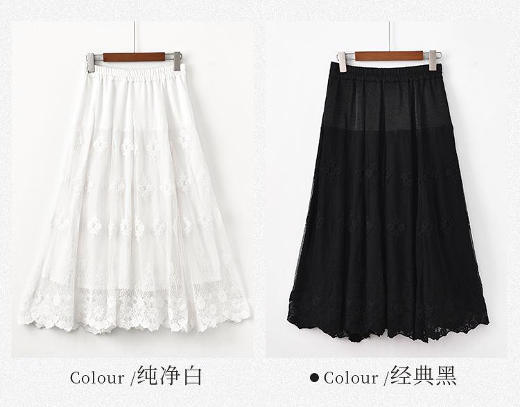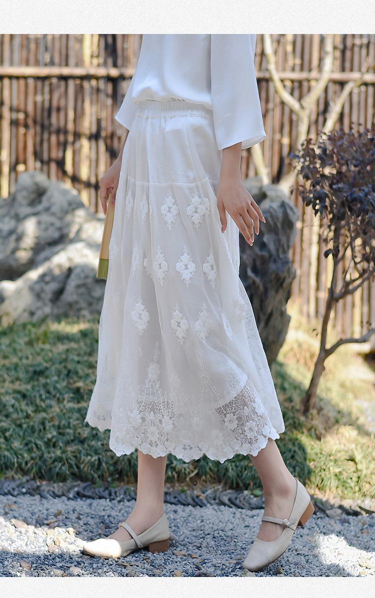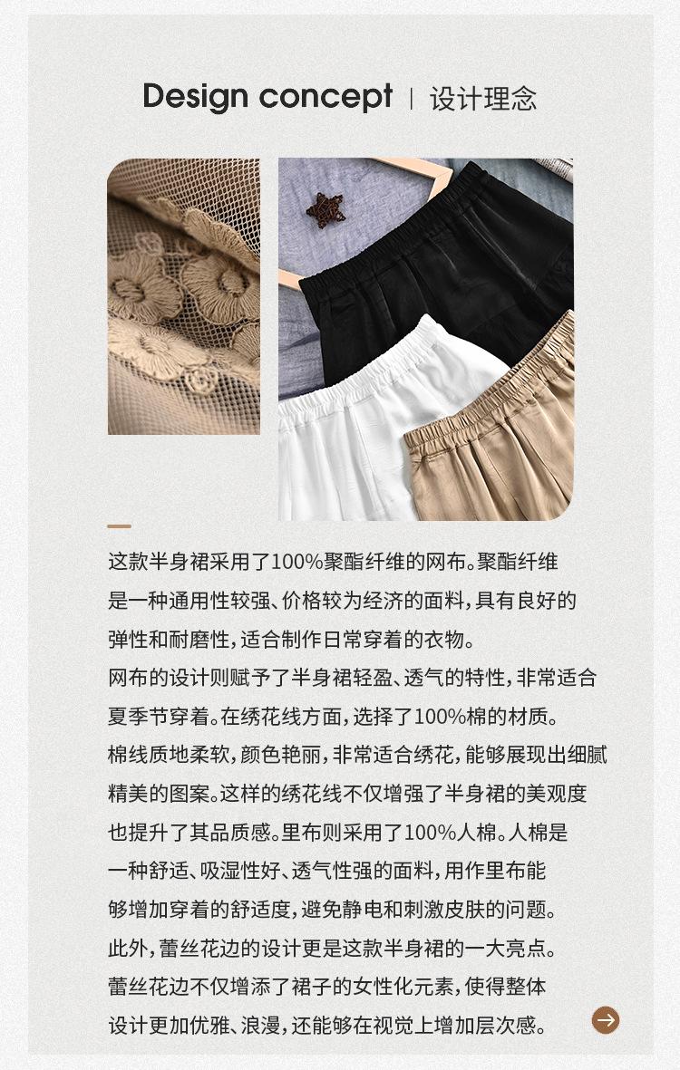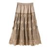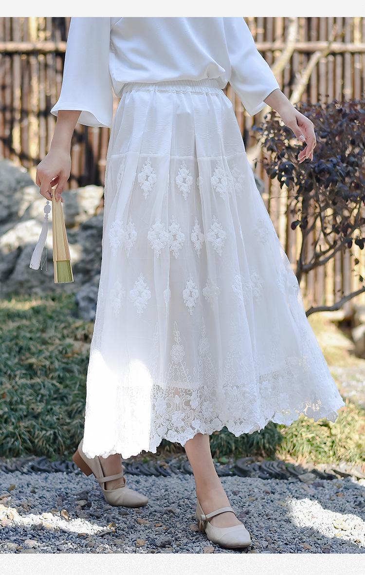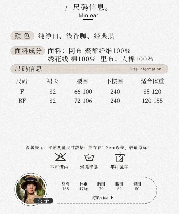 Falda nueva retro para mujer primavera y verano falda de línea A bordada de malla de alta gama falda ajustada de cintura alta venta al por mayor
