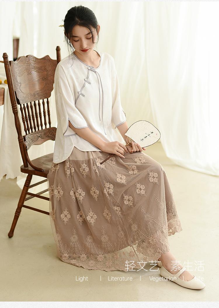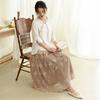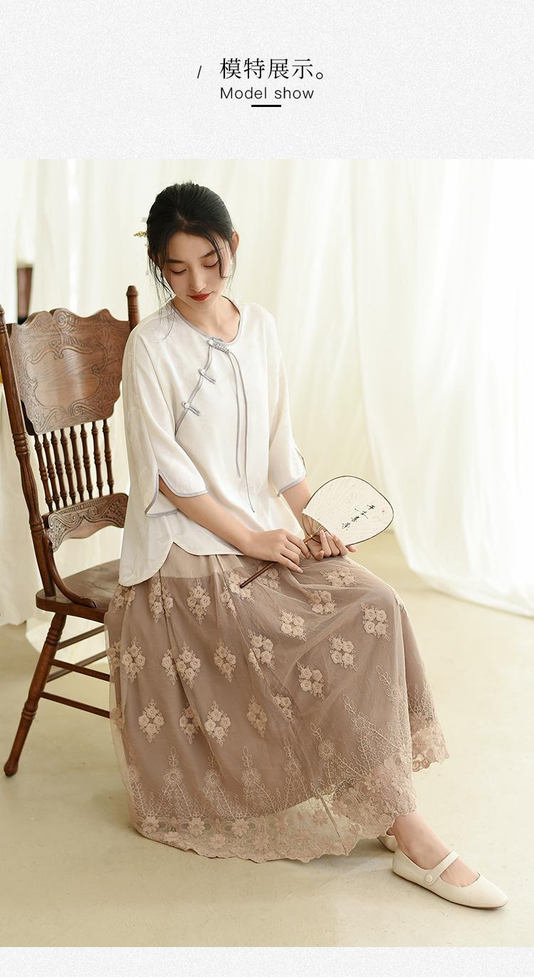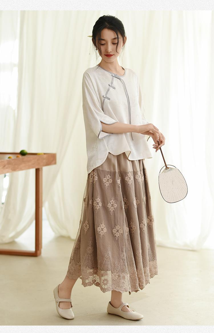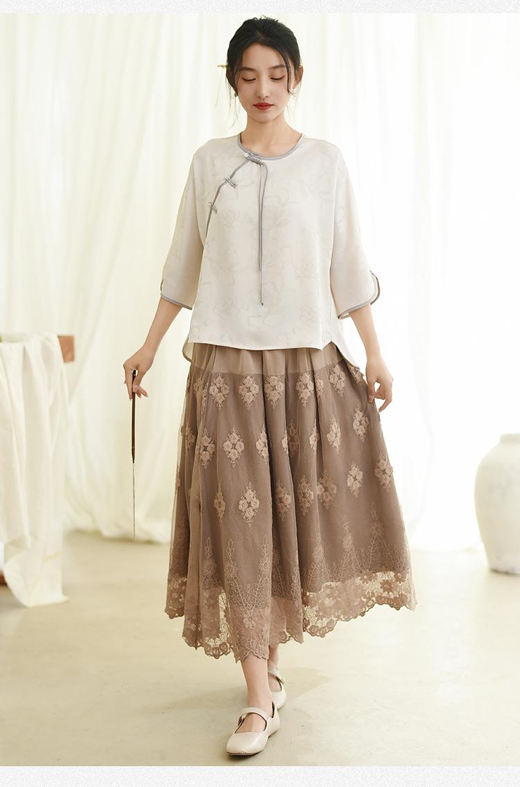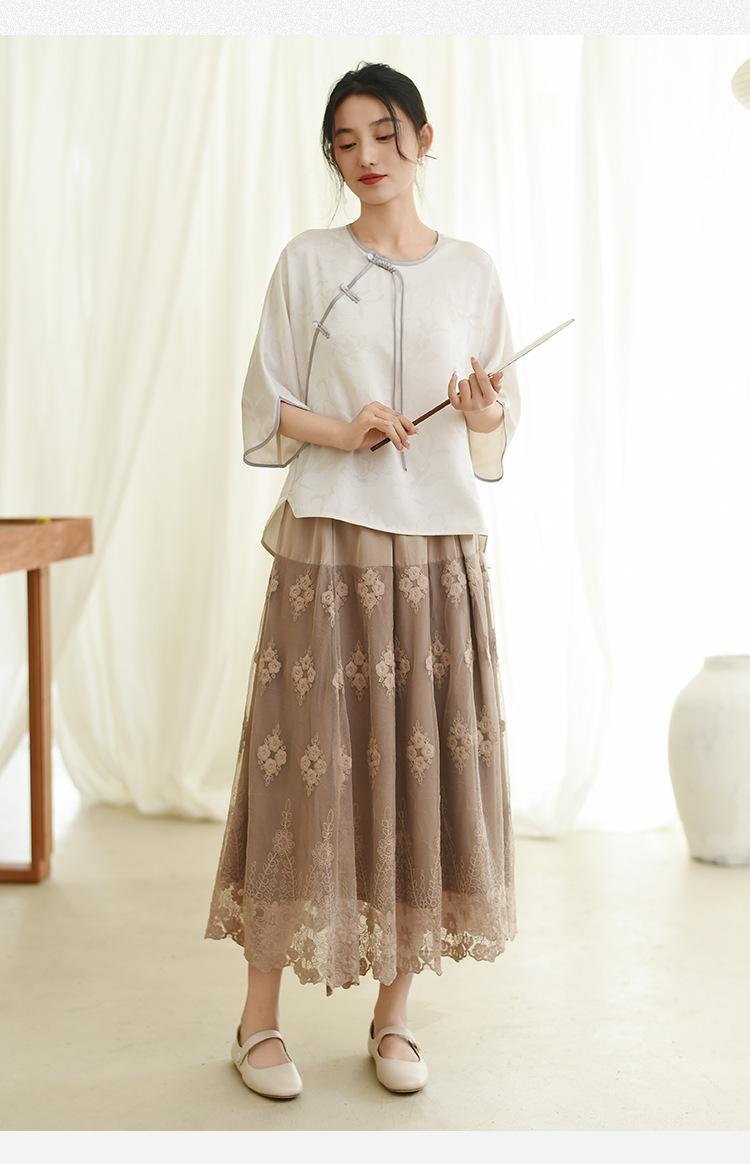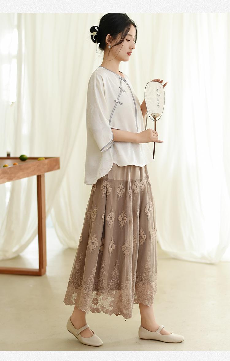 Falda nueva retro para mujer primavera y verano falda de línea A bordada de malla de alta gama falda ajustada de cintura alta venta al por mayor