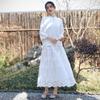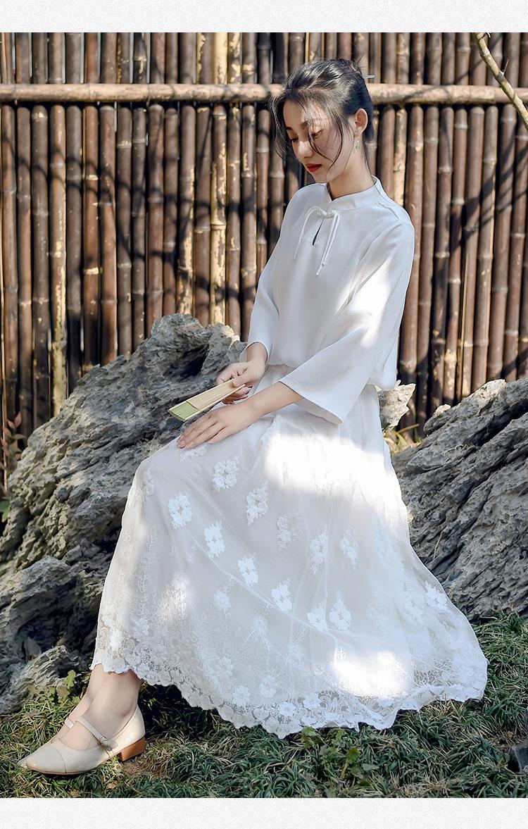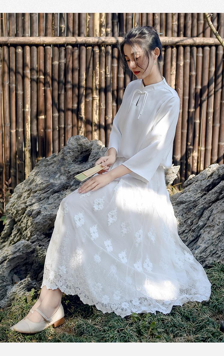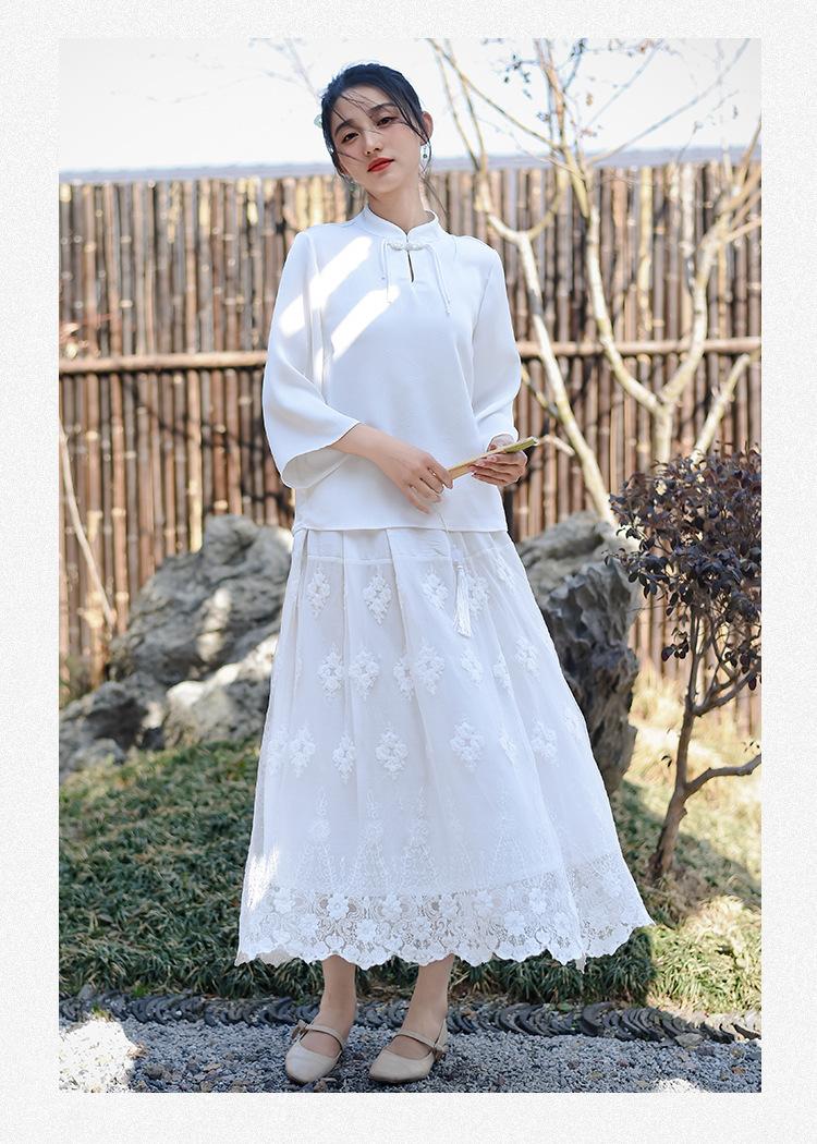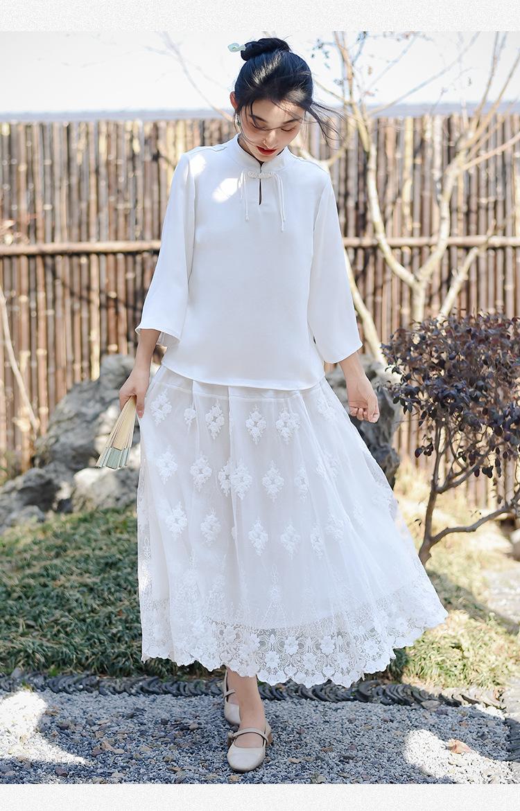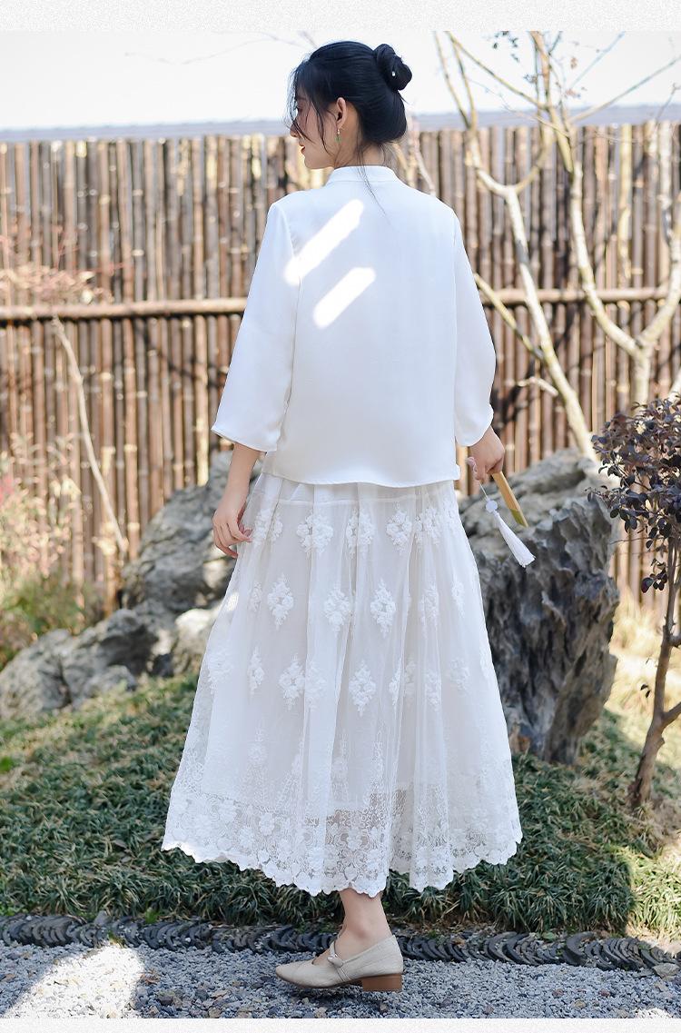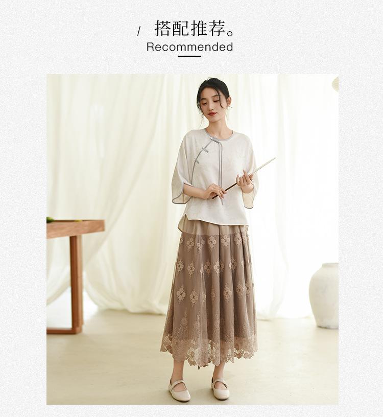 Falda nueva retro para mujer primavera y verano falda de línea A bordada de malla de alta gama falda ajustada de cintura alta venta al por mayor