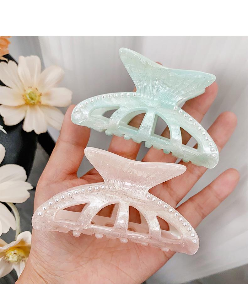 Pinza para el Cabello de Océano Perla Cola de Pez Distintiva Acrílica Lujo Ligero Elegante Moda Pinza de Tiburón Accesorios para el Cabello Hermosa