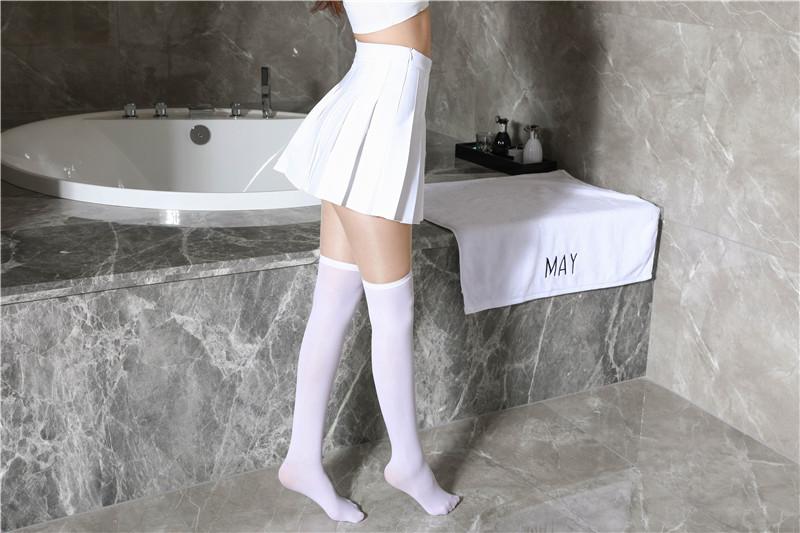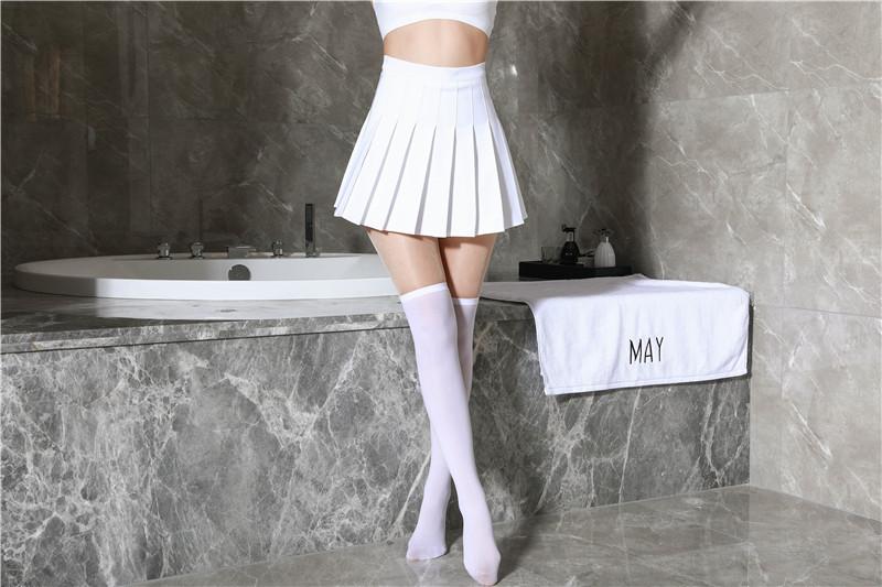 Calcetines japoneses antideslizantes por encima de la rodilla Medias blancas y negras Medias de estudiante Medias de media altura Forradas de terciopelo
