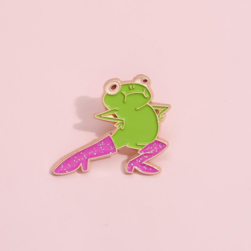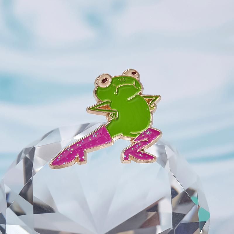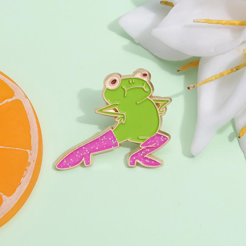 Rana con Botas Rosas Broche Divertido Animal Divertido Insignia de Metal Pintura Regalo Pin de Solapa