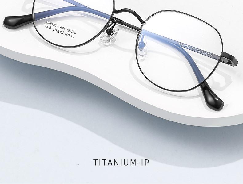 Lentes con montura negra Montura de gafas de titanio ultraligero Danyang Montura sencilla para miopía Rostro pequeño 981837 Retro Casual Mujer Venta al por mayor