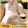 Pijamas de mujer para primavera y otoño, ropa de casa de algodón puro, nuevo color sólido, algodón puro, de alto nivel, cómodos, casuales, de manga larga.