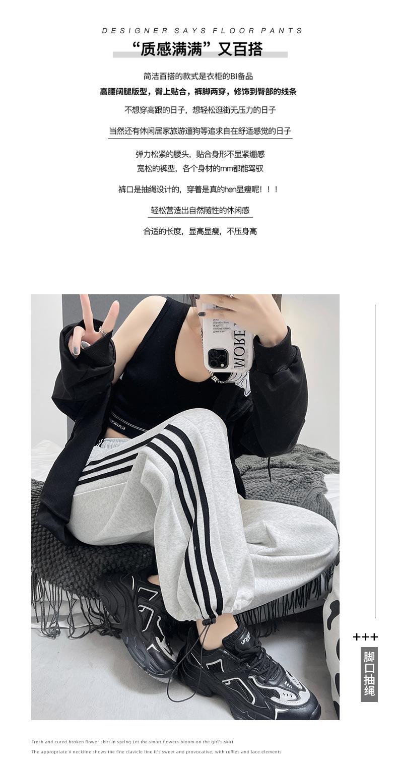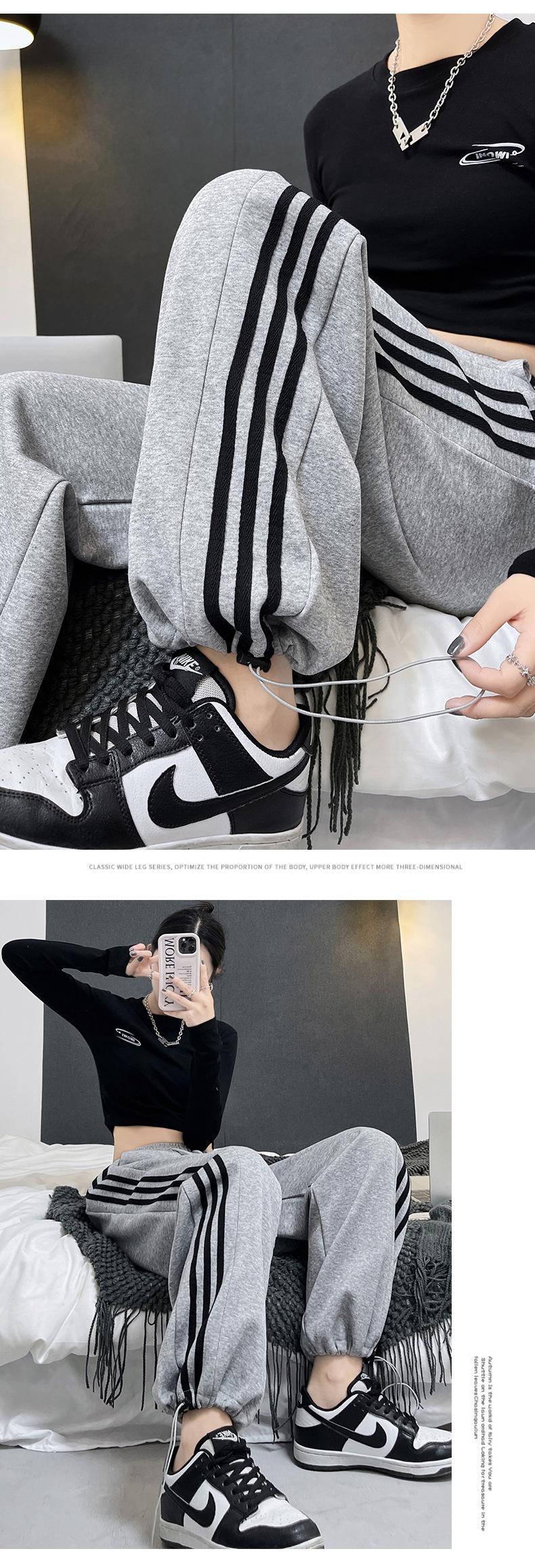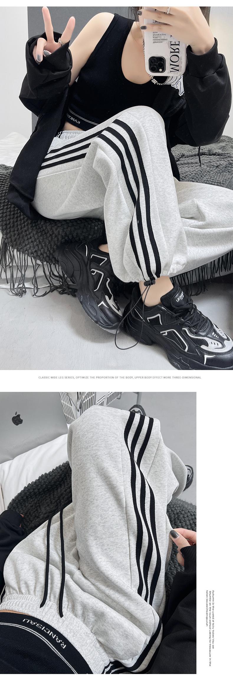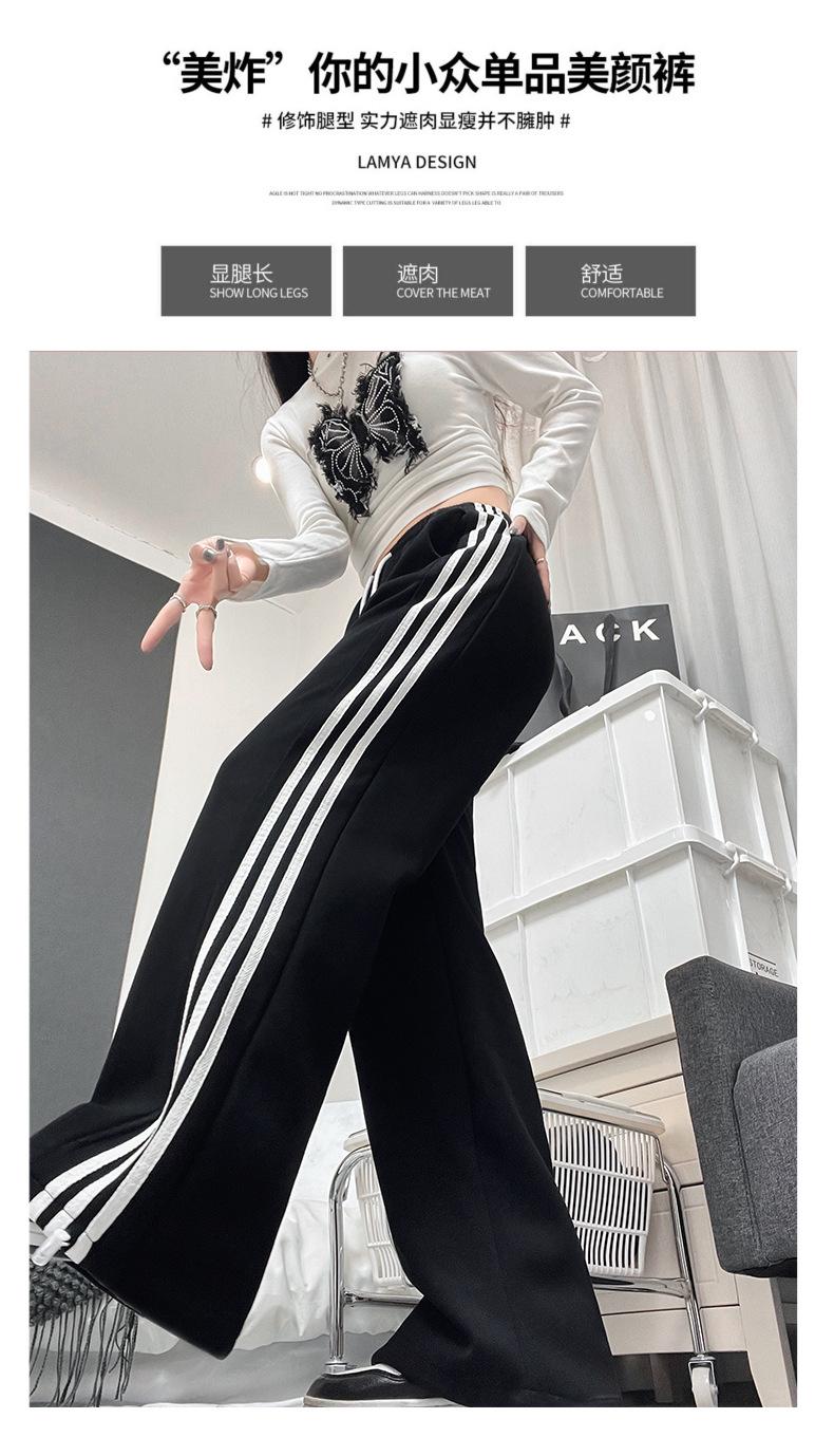 Pantalones deportivos a rayas, pantalones casuales para mujer, primavera y otoño, nuevos pantalones adelgazantes rectos de pierna ancha, pantalones deportivos casuales sueltos de tres barras