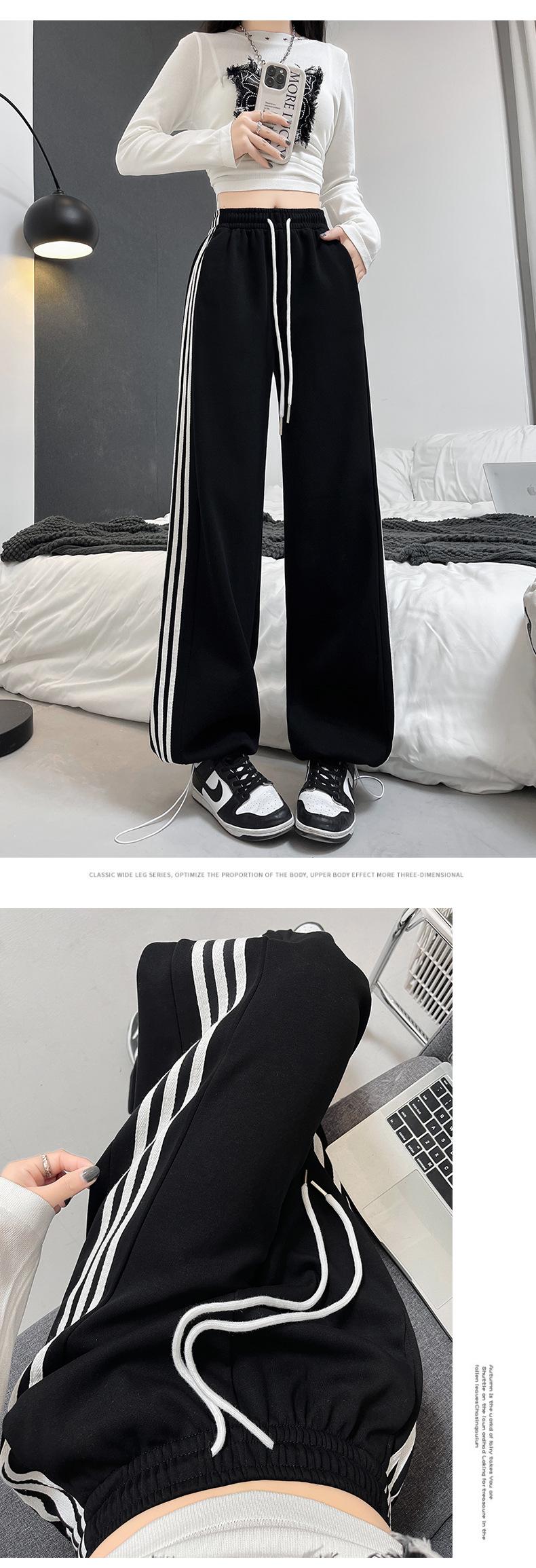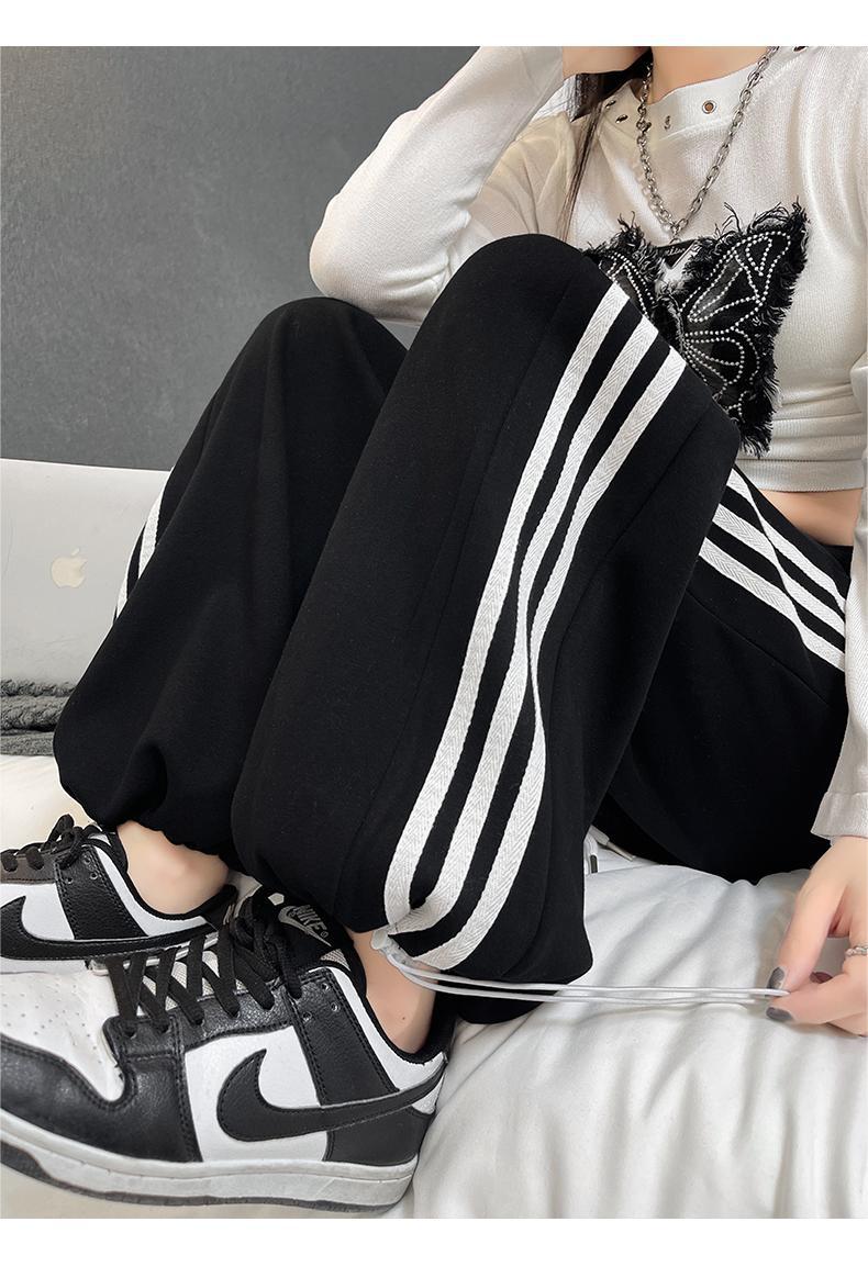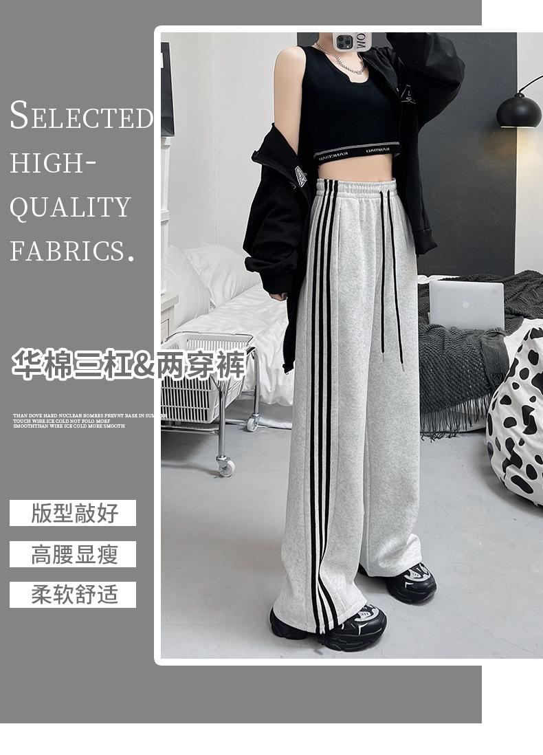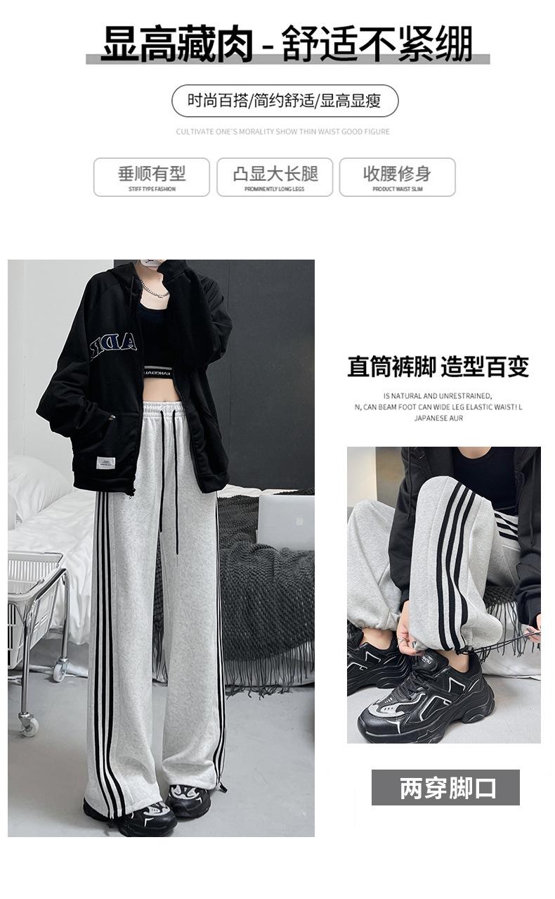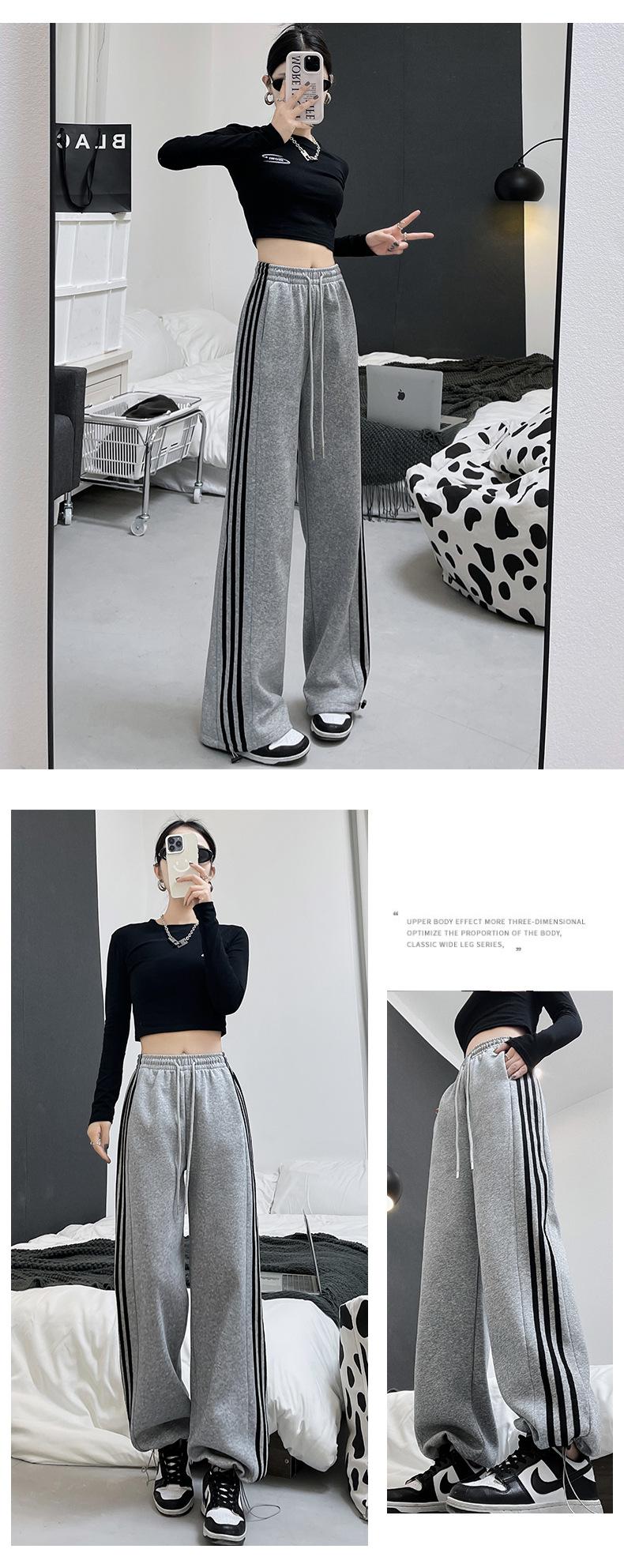 Pantalones deportivos a rayas, pantalones casuales para mujer, primavera y otoño, nuevos pantalones adelgazantes rectos de pierna ancha, pantalones deportivos casuales sueltos de tres barras