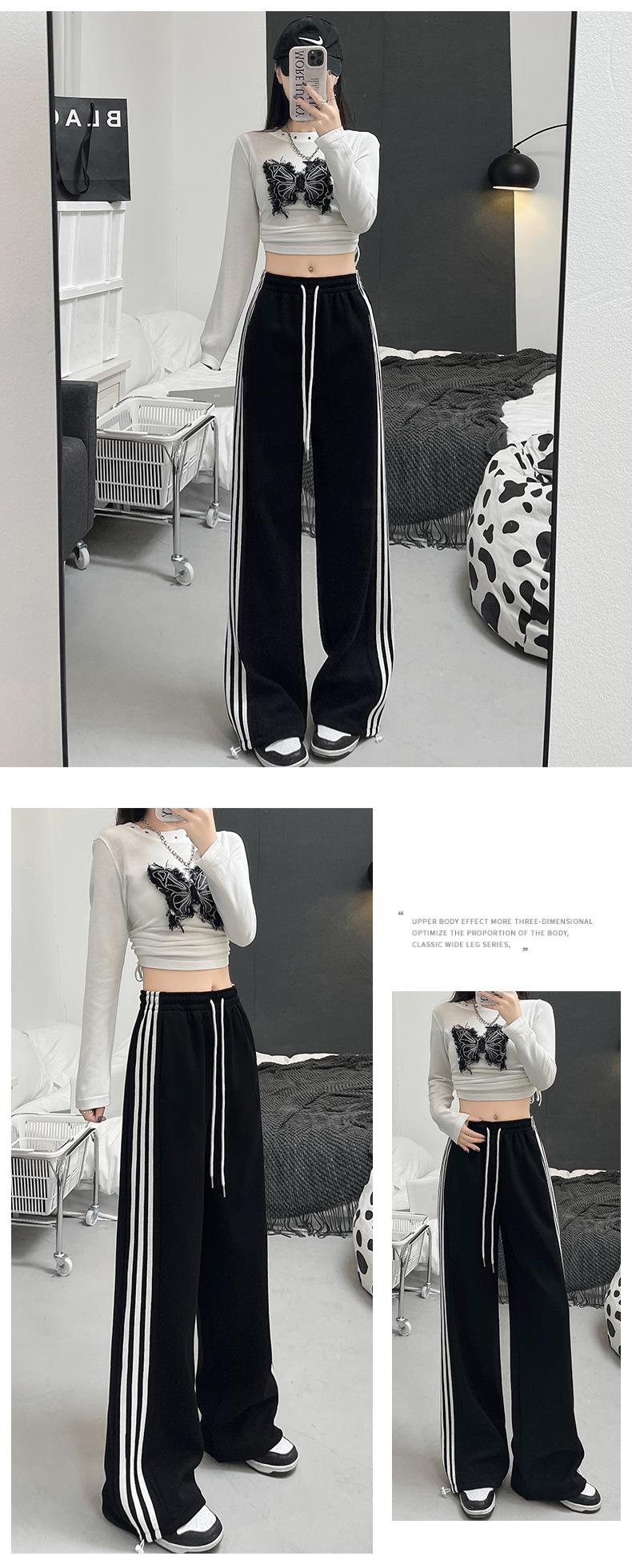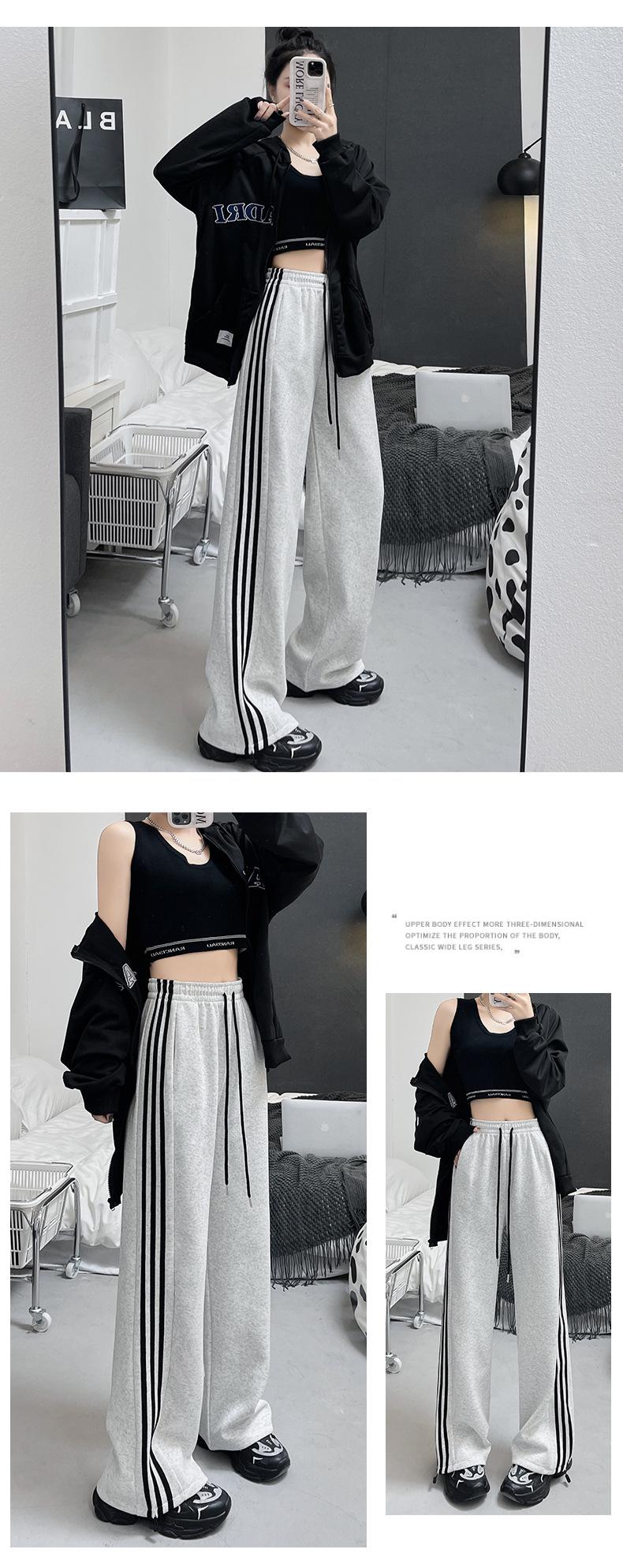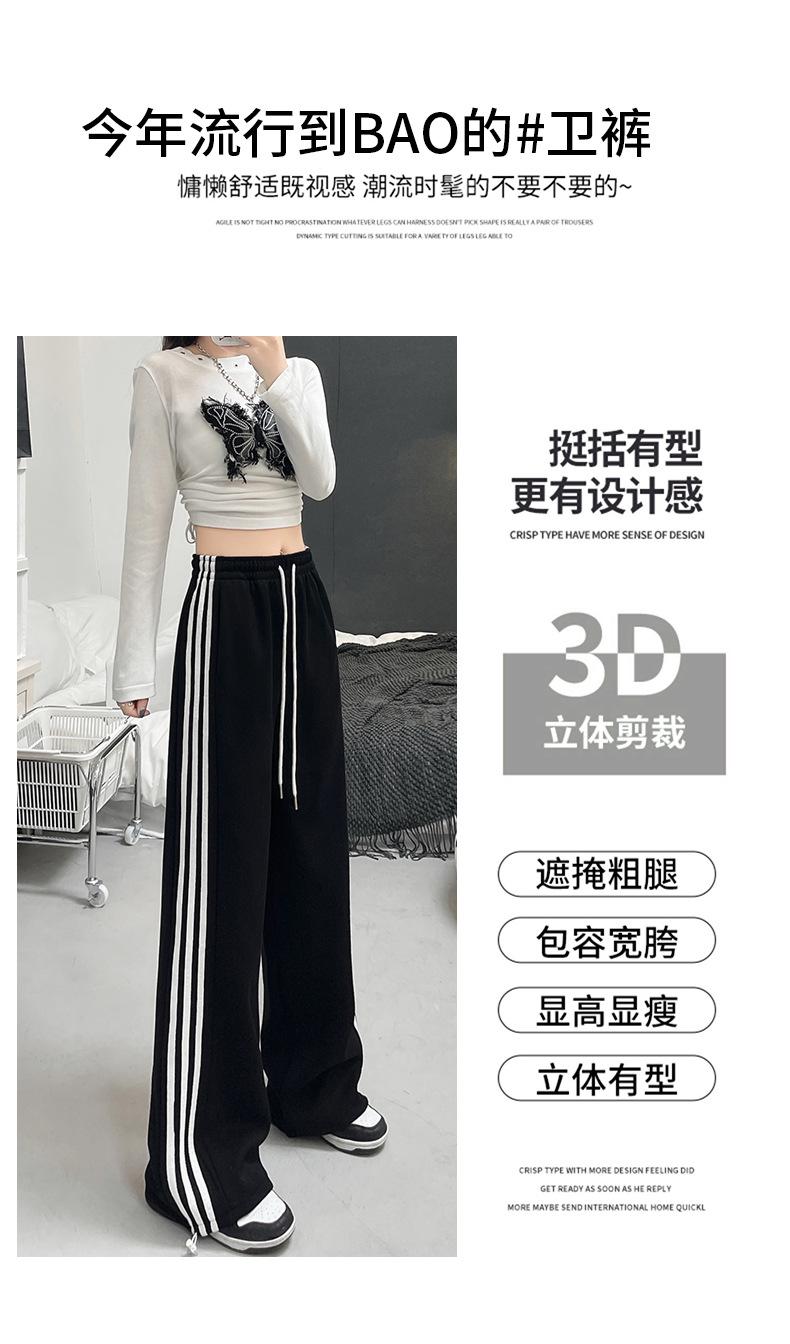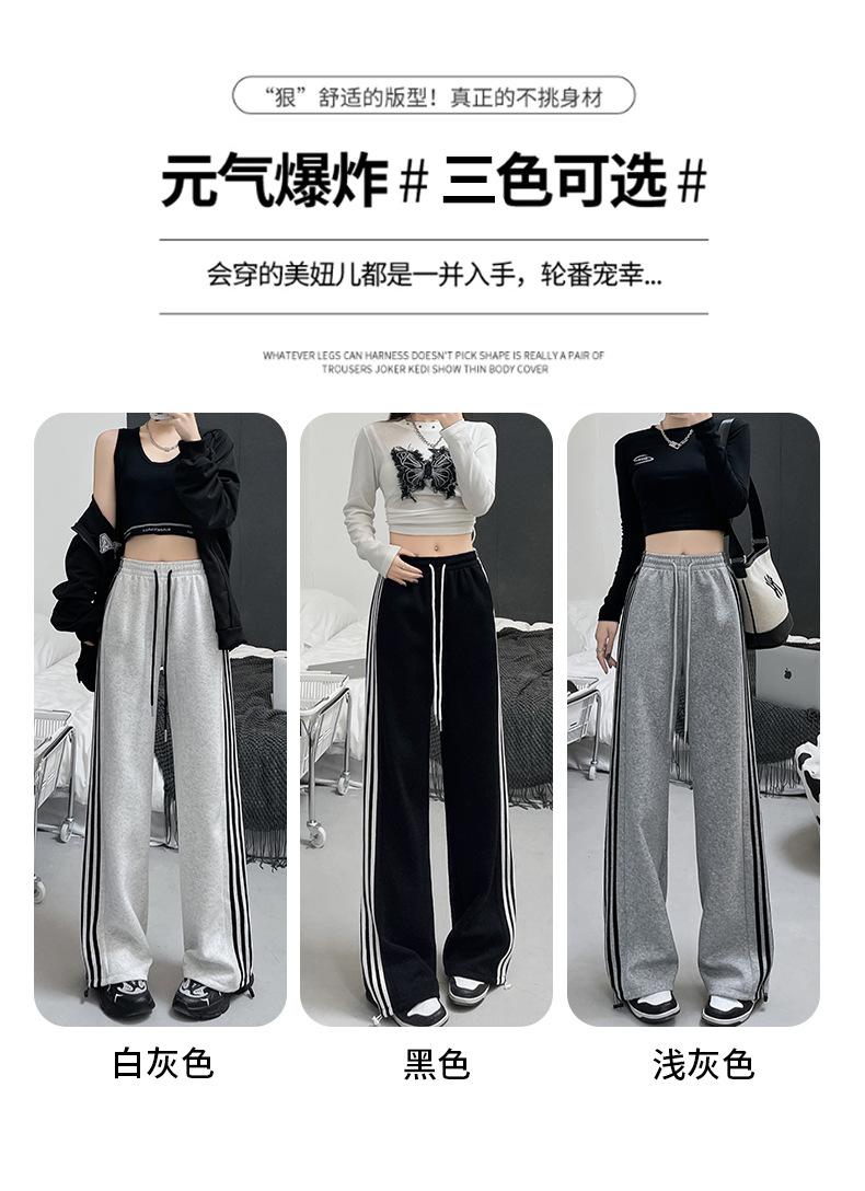 Pantalones deportivos a rayas, pantalones casuales para mujer, primavera y otoño, nuevos pantalones adelgazantes rectos de pierna ancha, pantalones deportivos casuales sueltos de tres barras