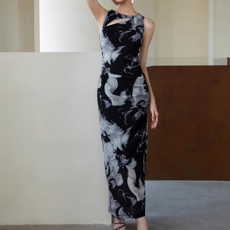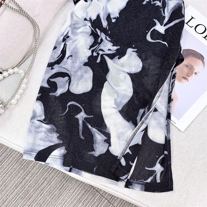 Conjunto de Dos Piezas de Vestido Estampado y Teñido con Hilo Elástico Tejido Spot Wan Especial | Vestido Estampado con Pliegues Divididos y Chaleco para Mujer 20