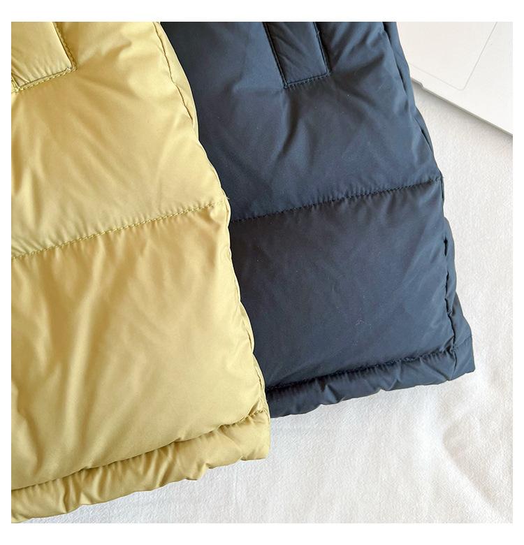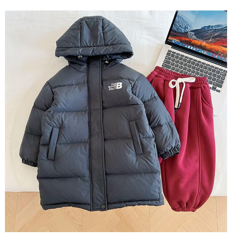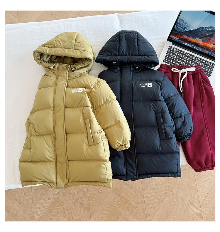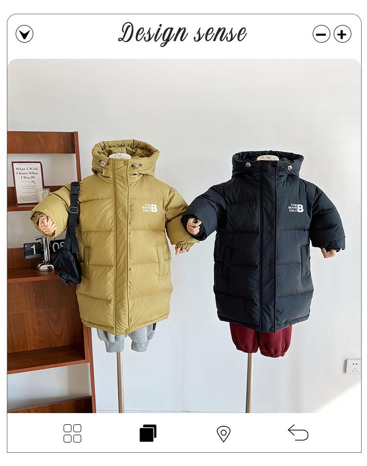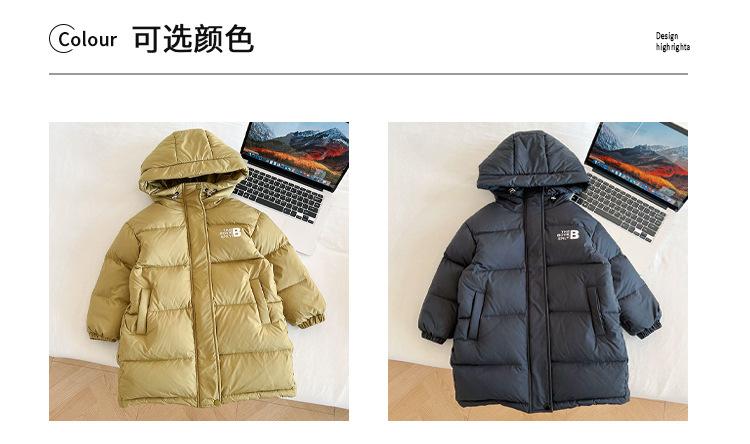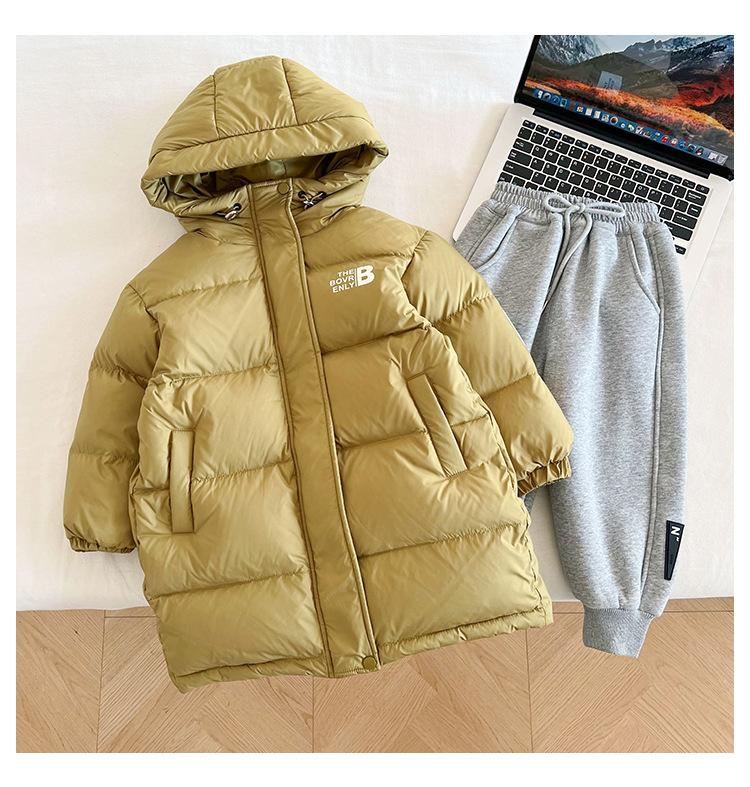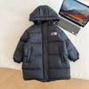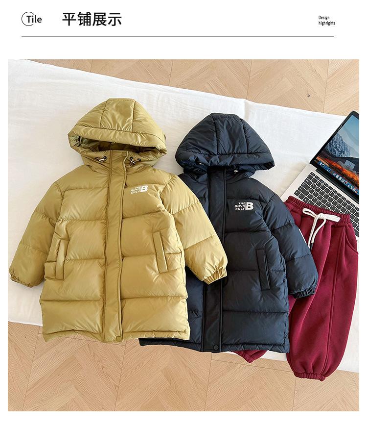 Fengzhigu 2023 Invierno nuevo ropa para niños estilo coreano chaqueta de plumón con capucha de longitud media para niños etiquetado combinable