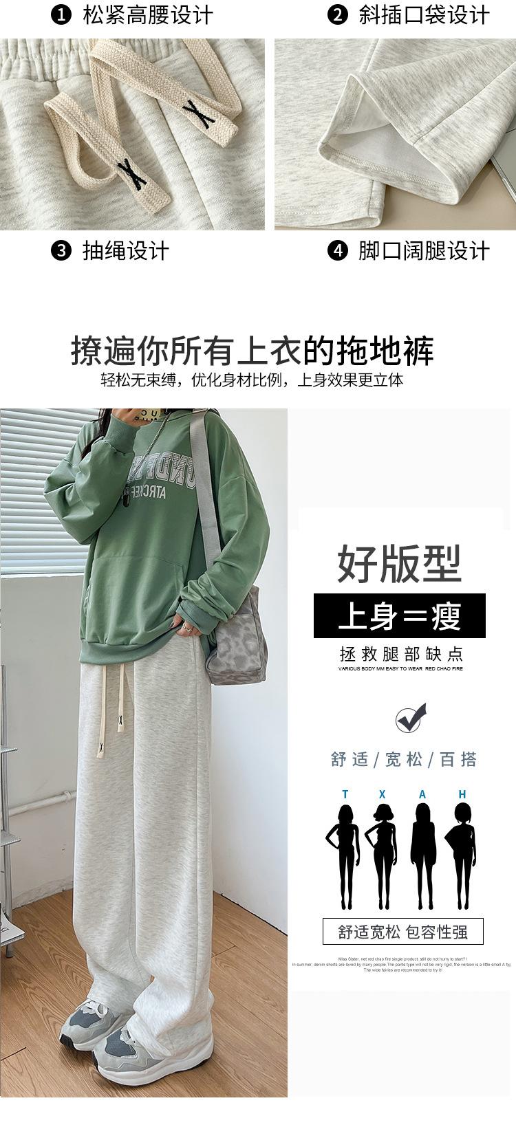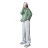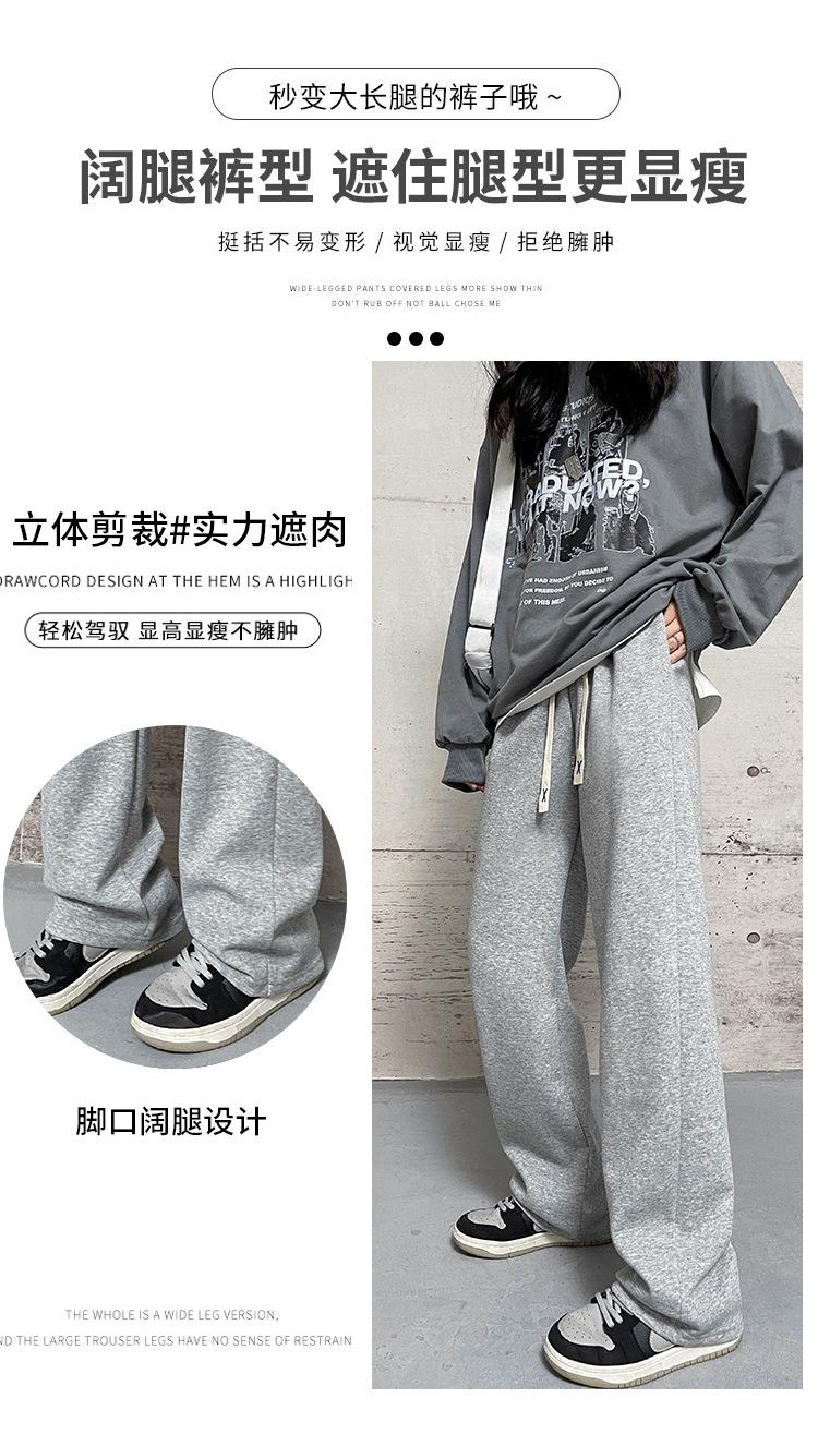 Pantalones Blancos Grises de Pierna Ancha Pantalones Drapeados Pantalones Casuales de Primavera y Otoño para Mujer Pantalones Rectos Adelgazantes Pantalones Deportivos Holgados Pequeños Pantalones de Mujer